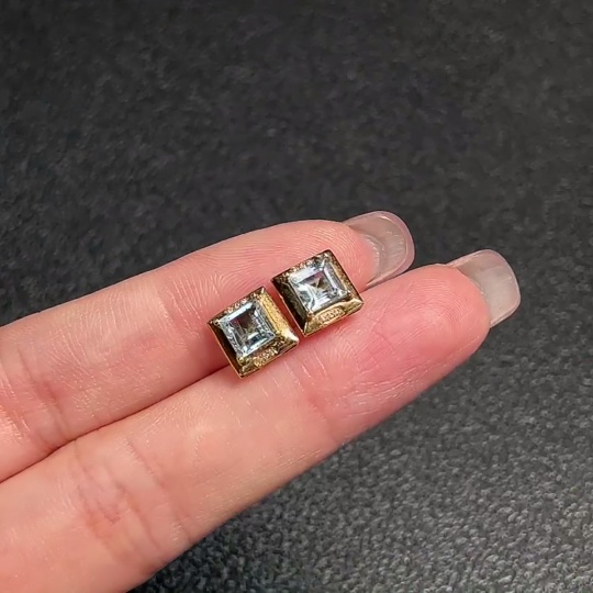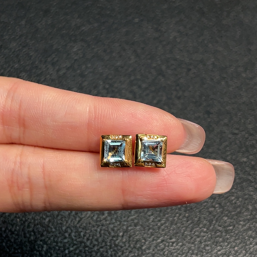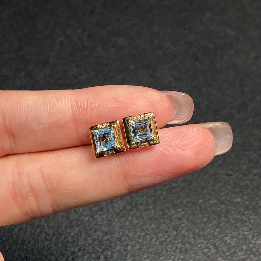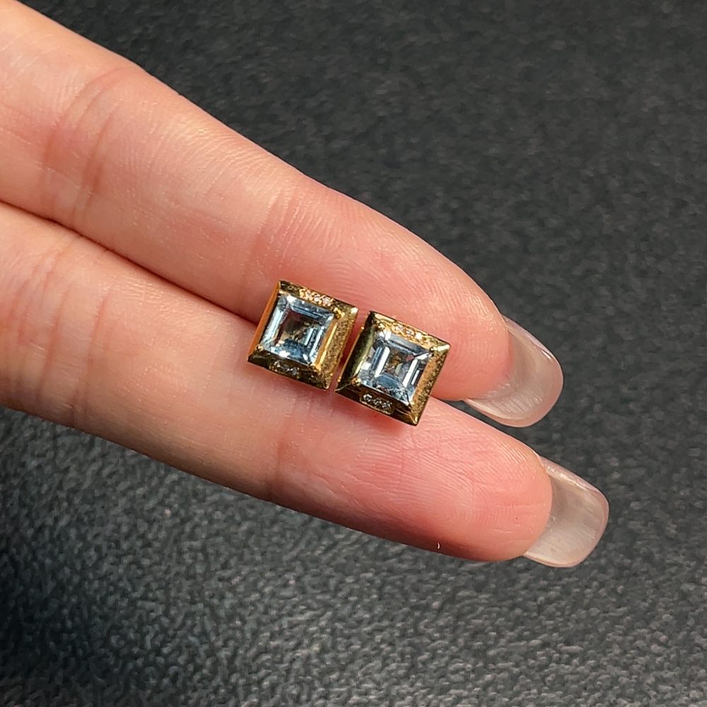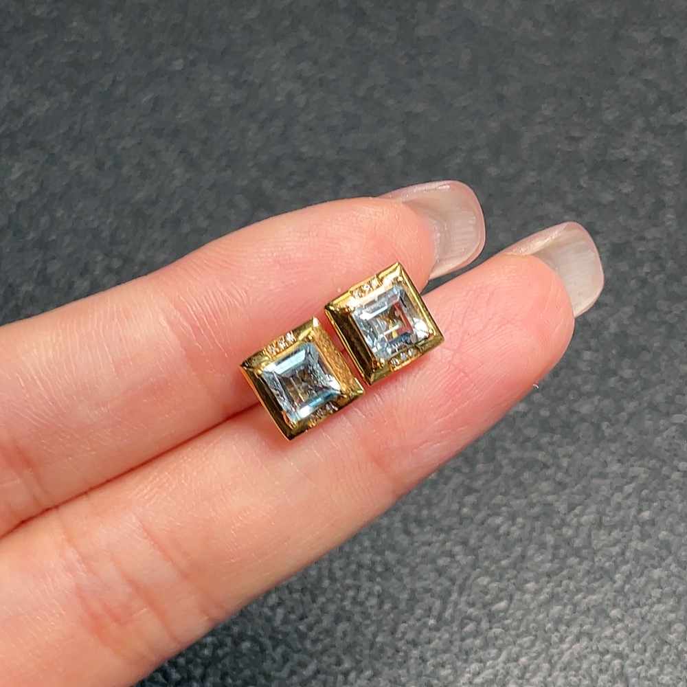 Aquamarine earrings with diamond accents, 18K gold, total weight approximately 1.40 grams