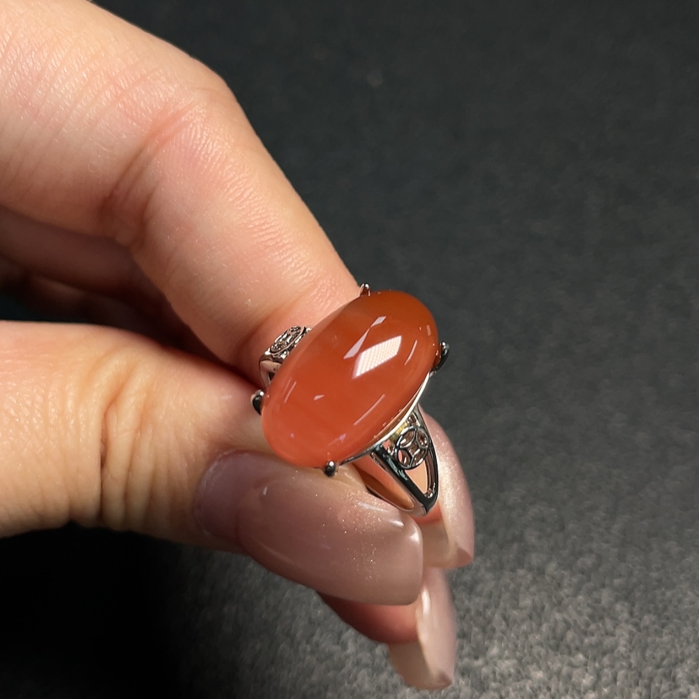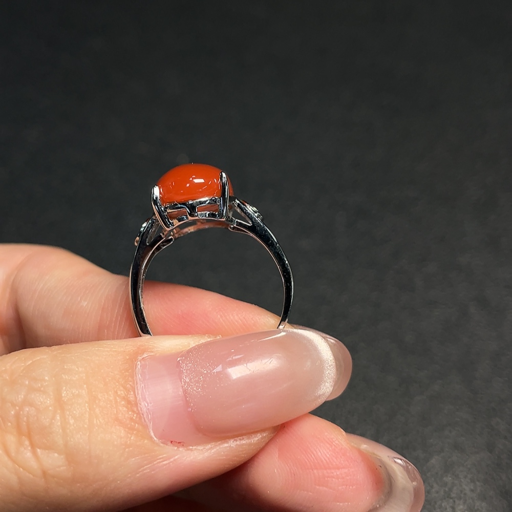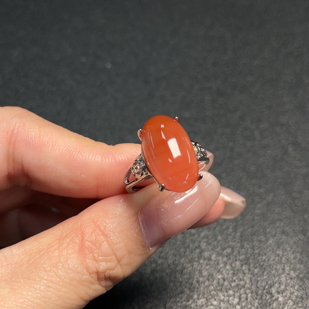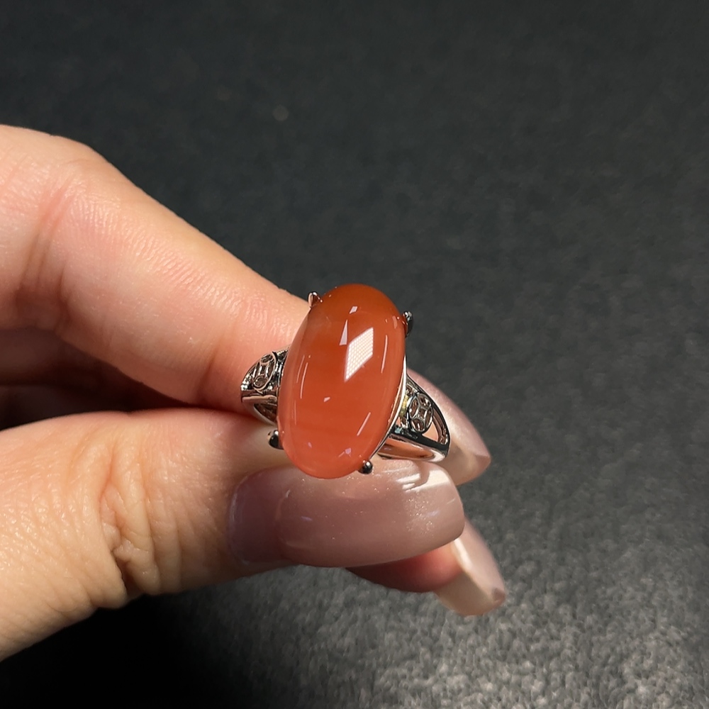 South Red Agate Ring, Non-Gold, Adjustable, Total Weight Approx. 2.8g