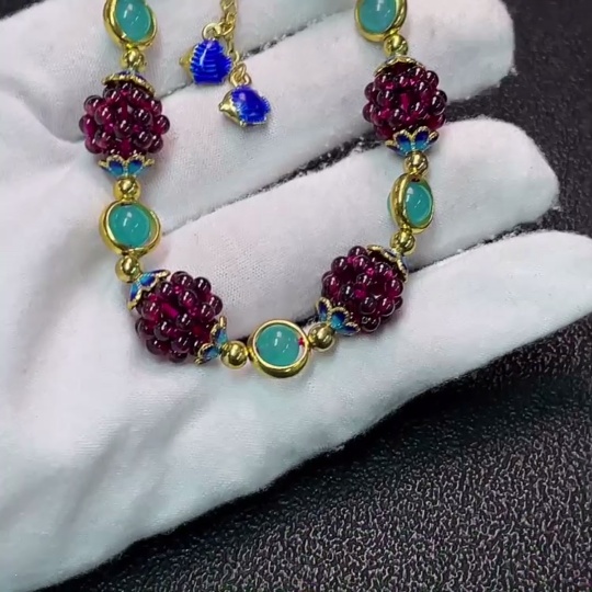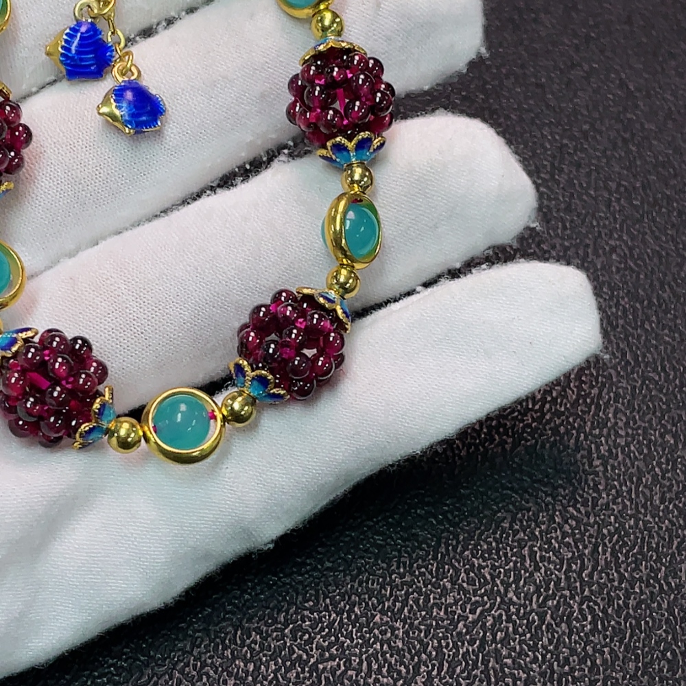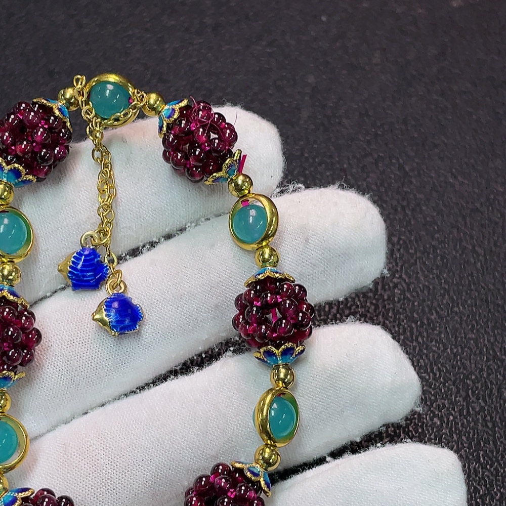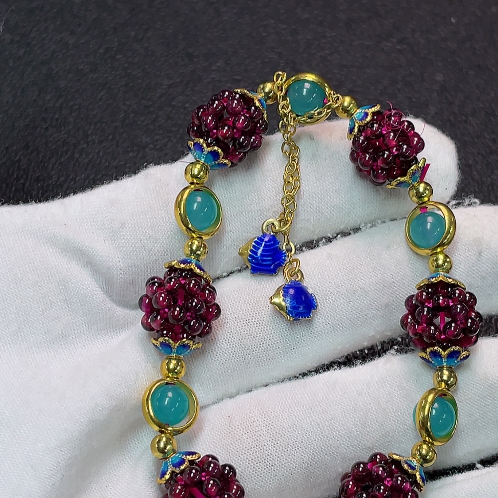 Garnet bracelet with non-natural/non-gold accent stones, total weight approx. 18.52g, stone size ~2.7mm