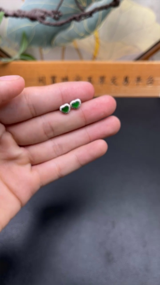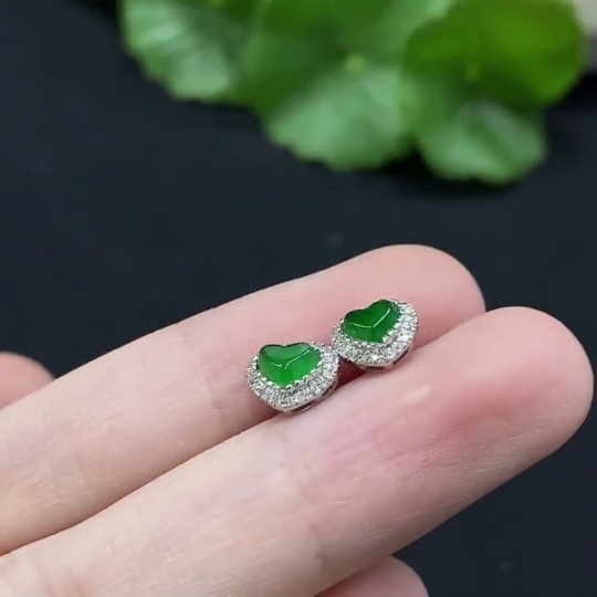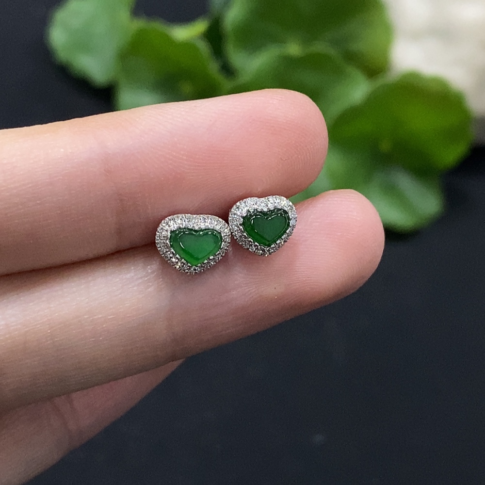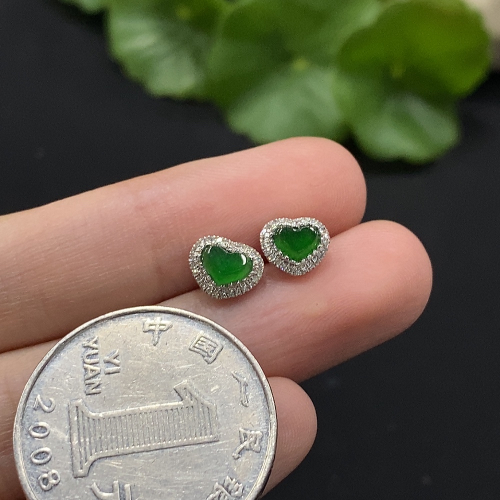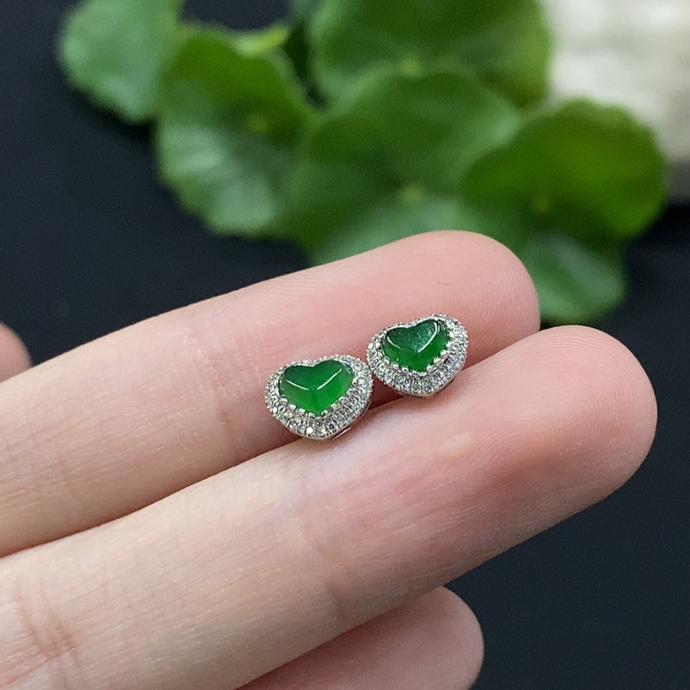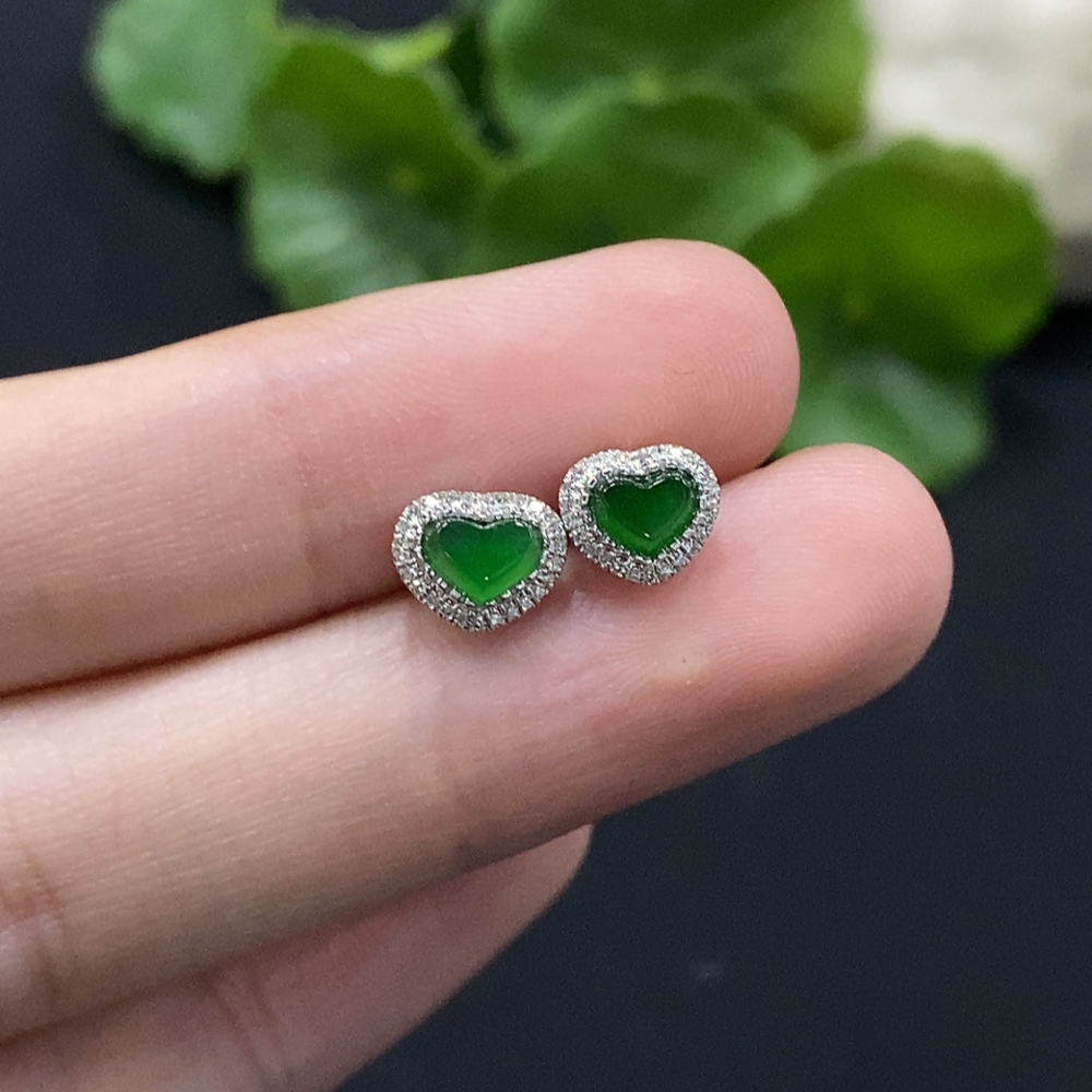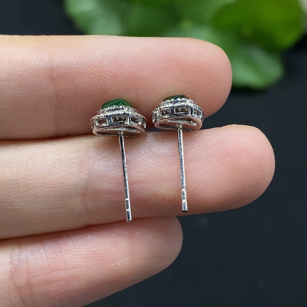 Jadeite Earrings 18K Gold with Diamond Accents Total Weight Approx. 1g