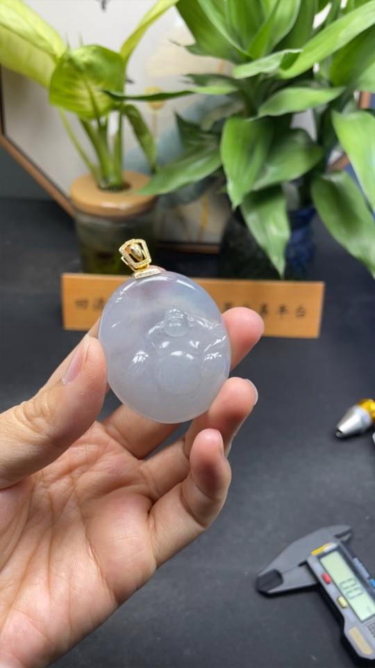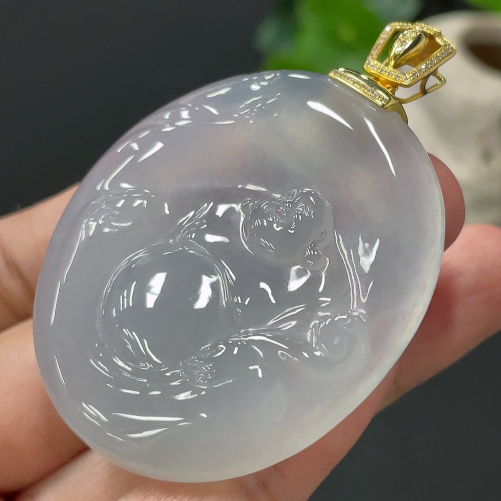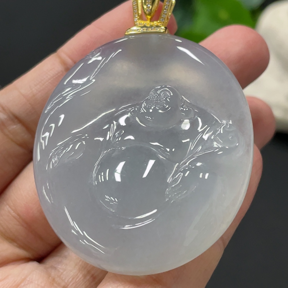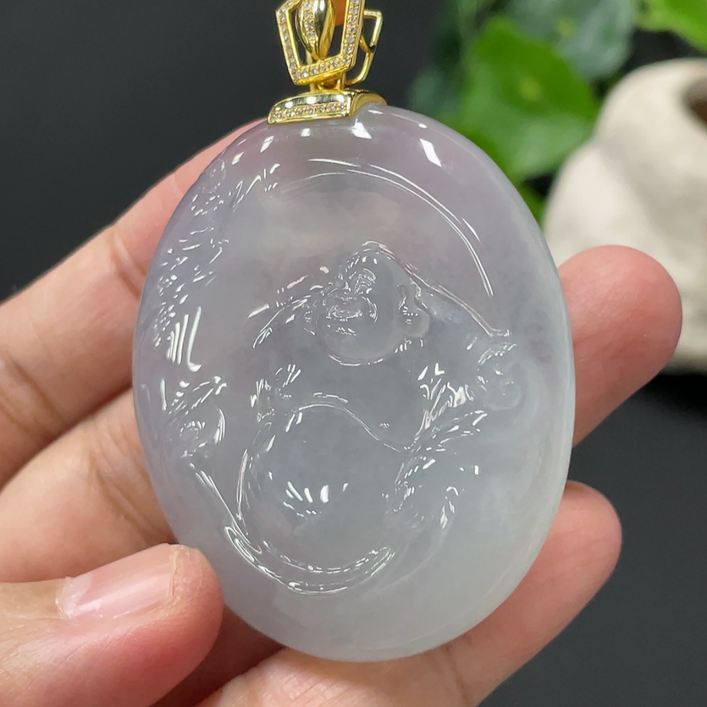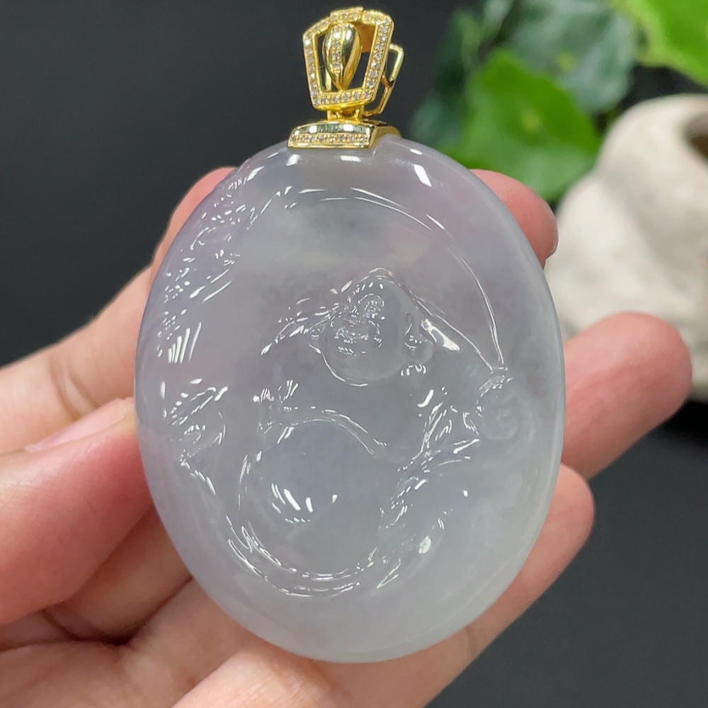 Jadeite Buddha Pendant Total Weight Approx.34.4g 18K Gold Clasp with Diamond Accents