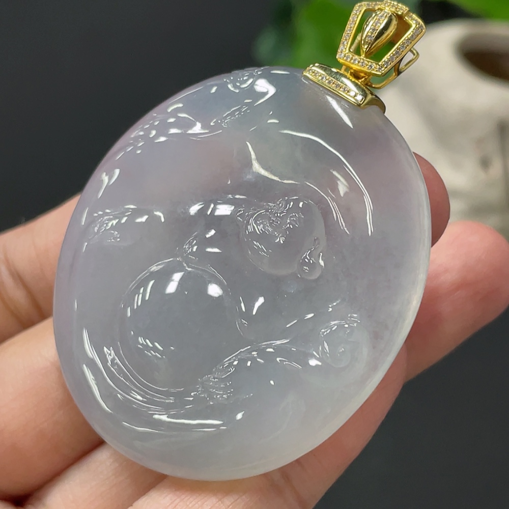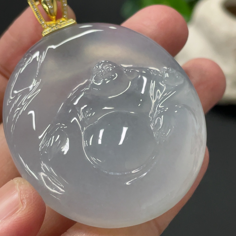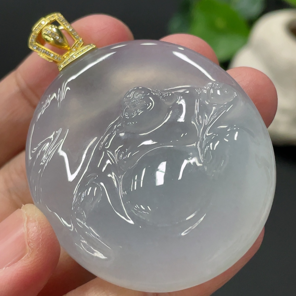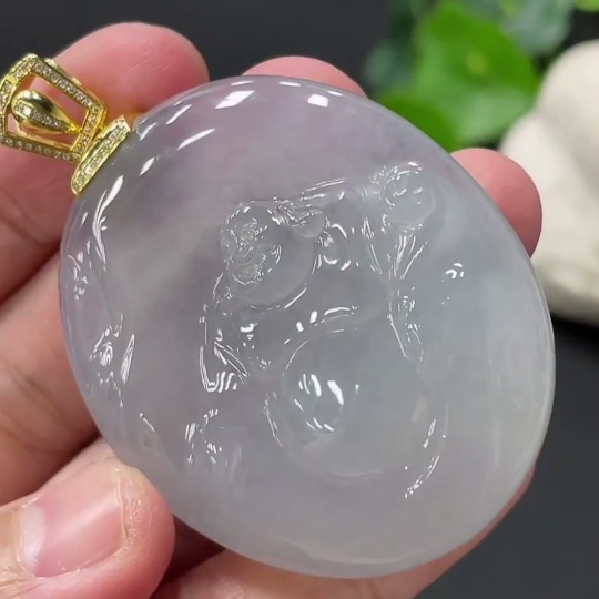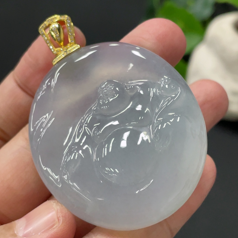 Jadeite Buddha Pendant Total Weight Approx.34.4g 18K Gold Clasp with Diamond Accents
