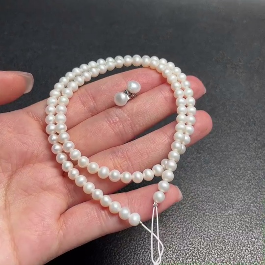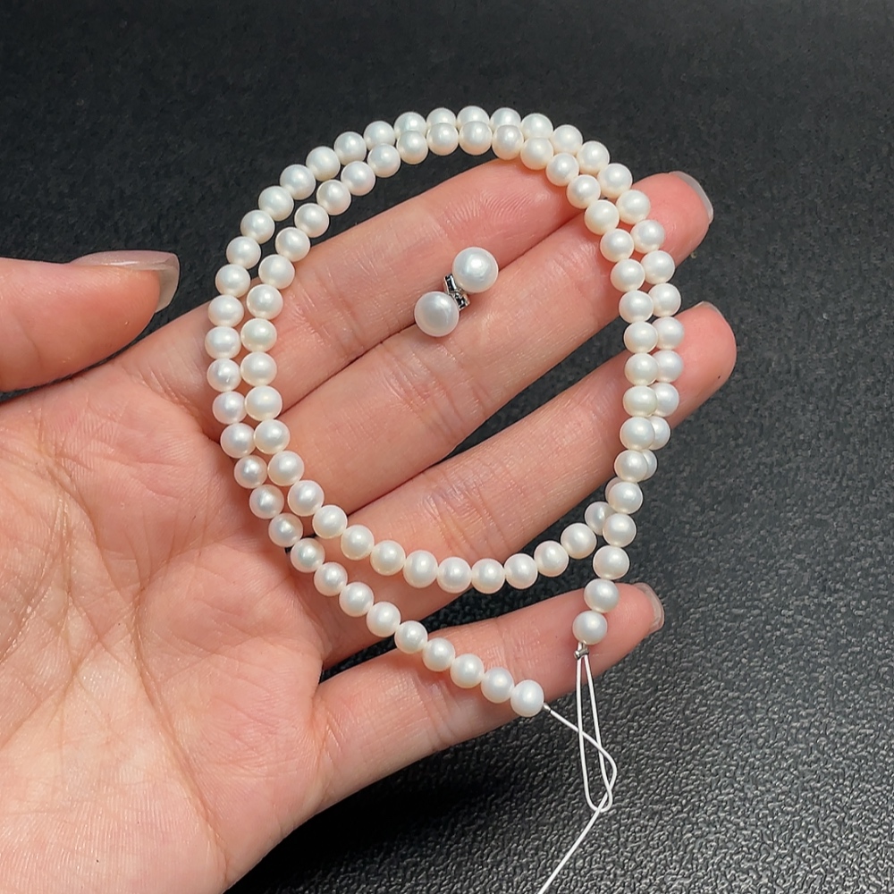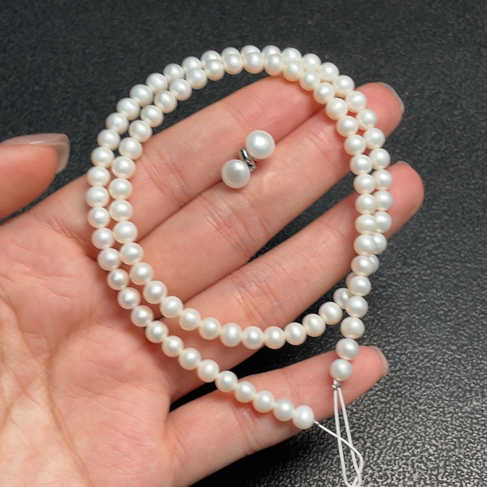Pearl Beaded Necklace + Earrings Non-Gold Total Weight Approx. 12.92g Sell as a Lot
