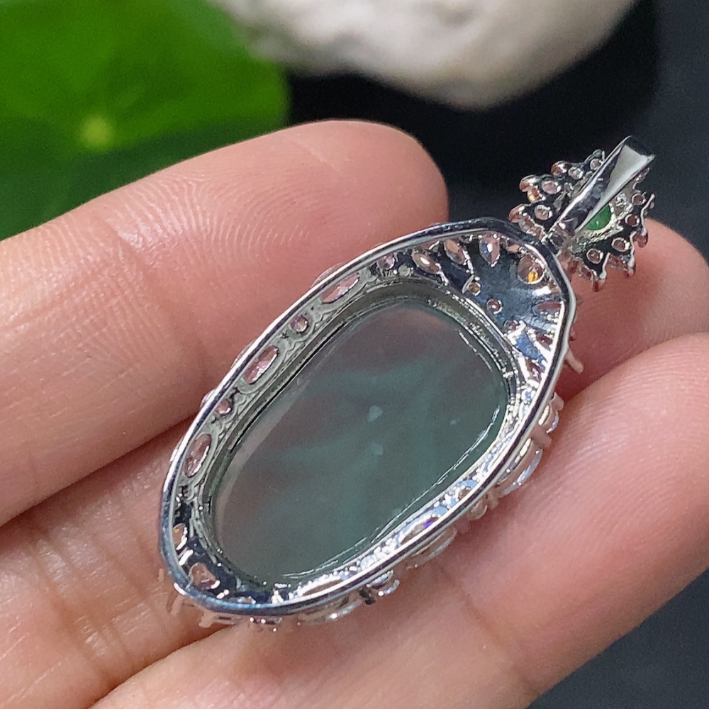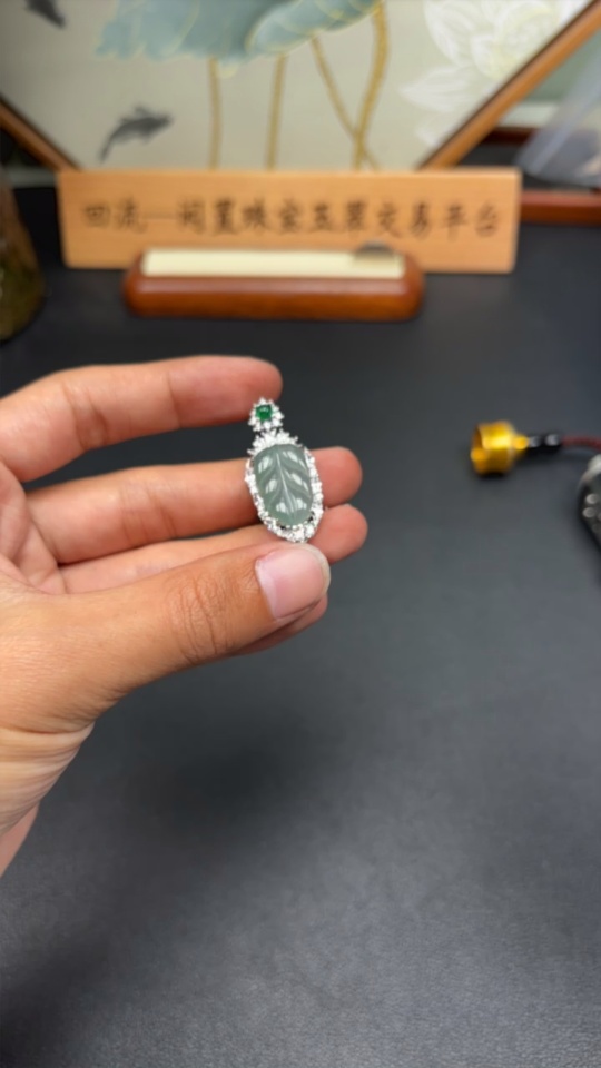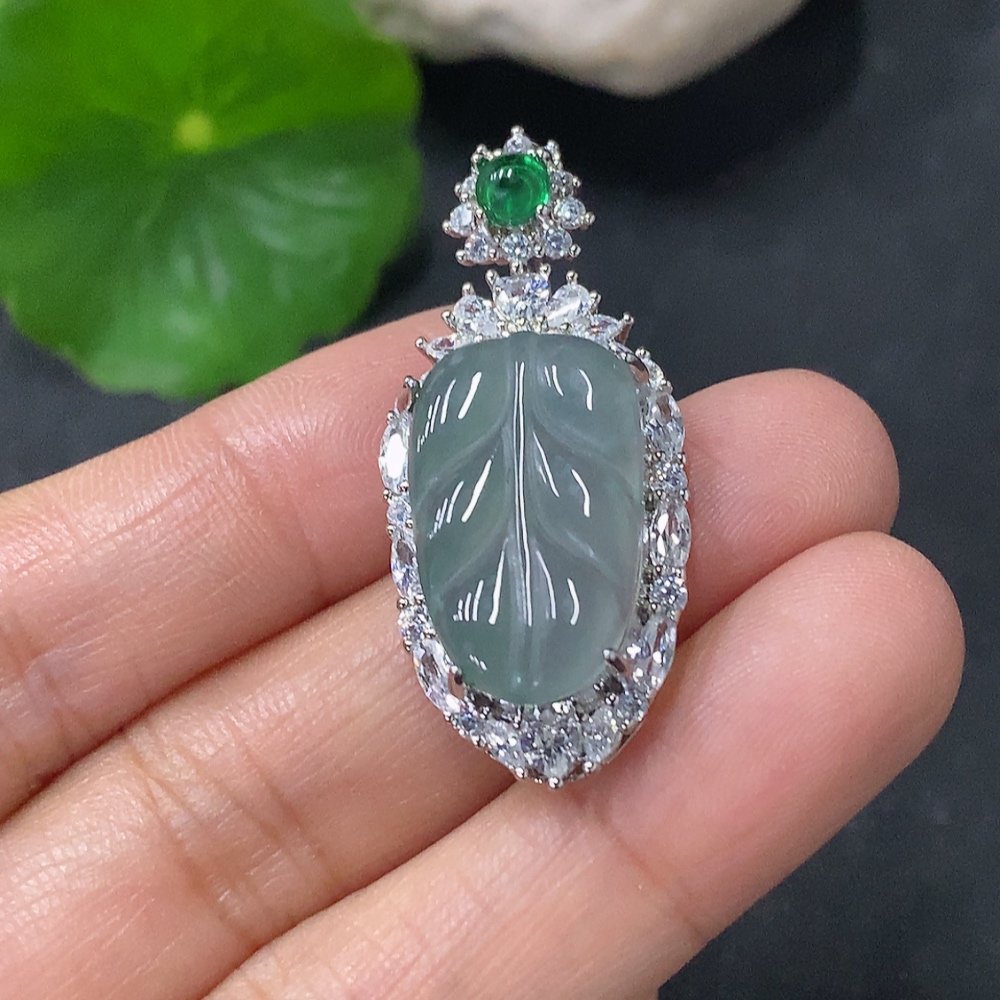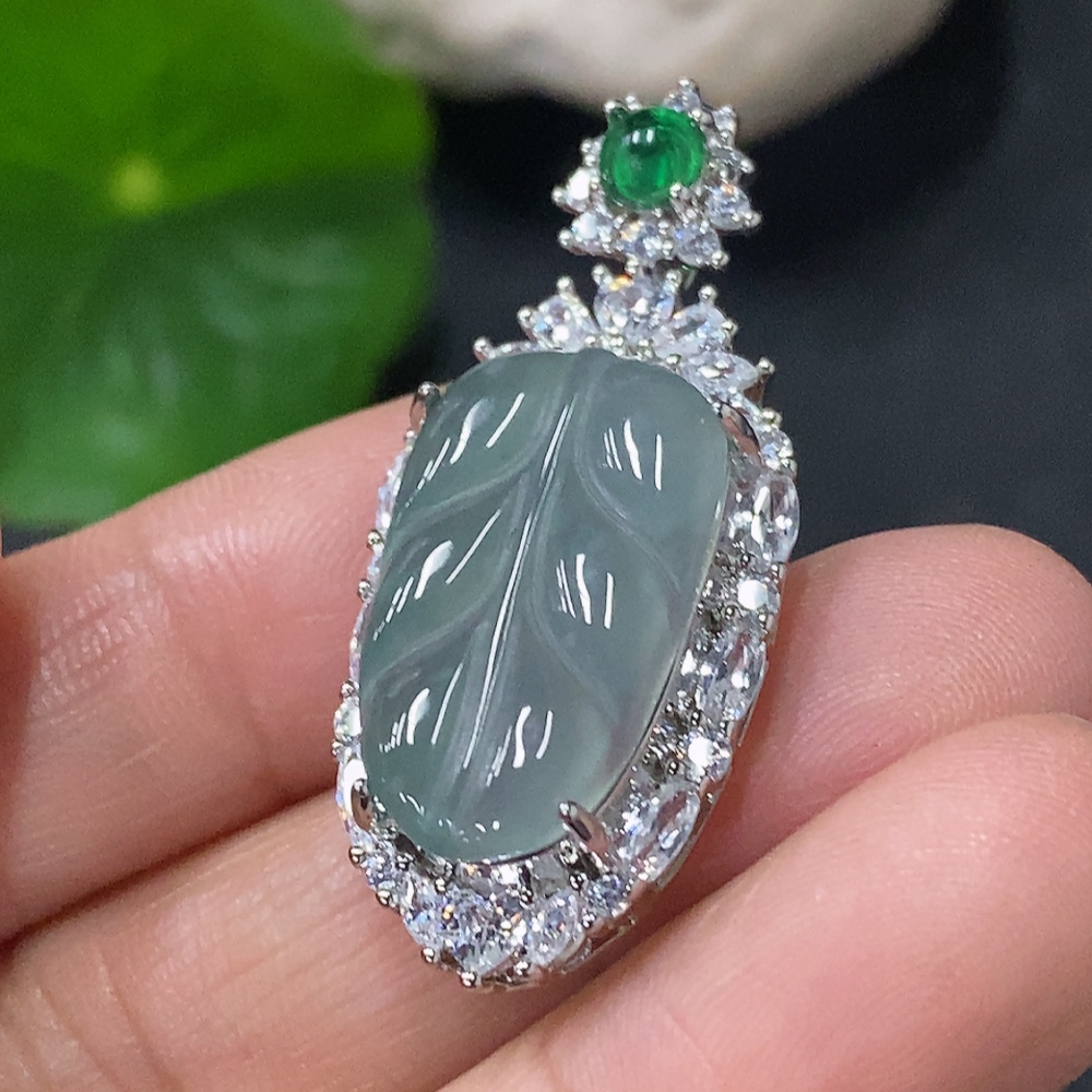 Jadeite leaf inlaid pendant, non-gold inlaid, total weight approx. 4.4g, non-A grade accessory stones