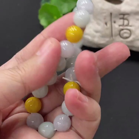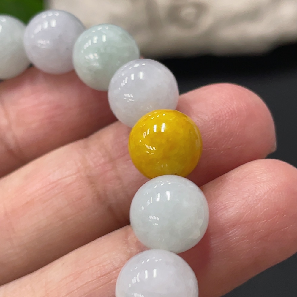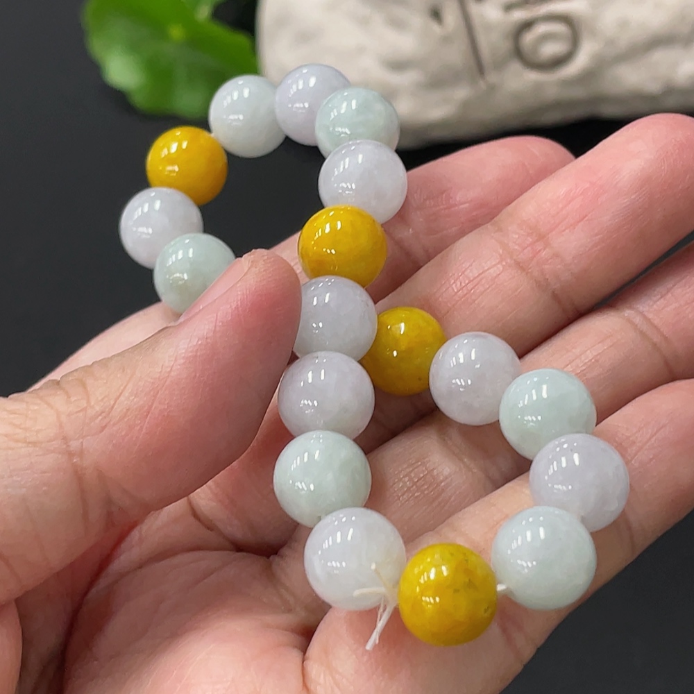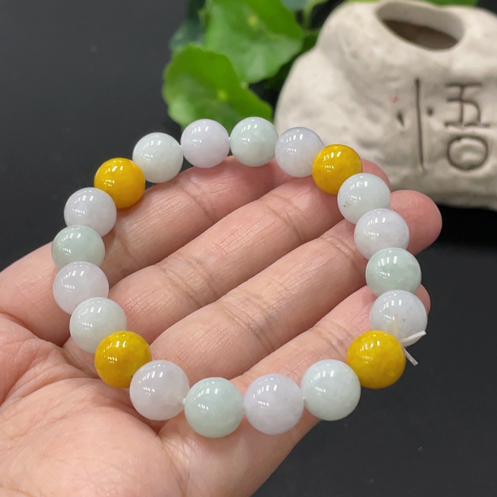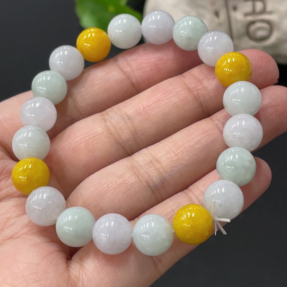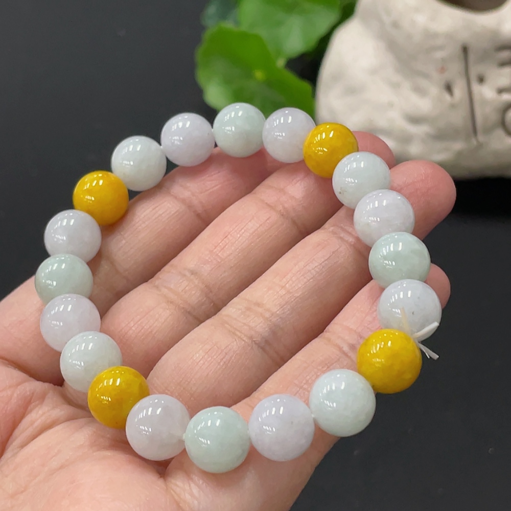 Jadeite Bracelet Approx. 9.5mm Total Weight About 28.5g Yellow Beads Non-A
