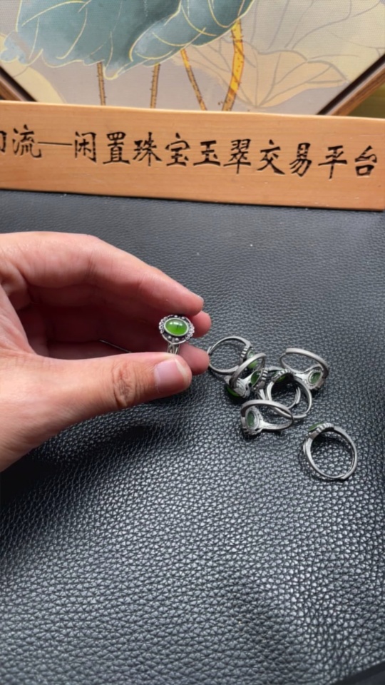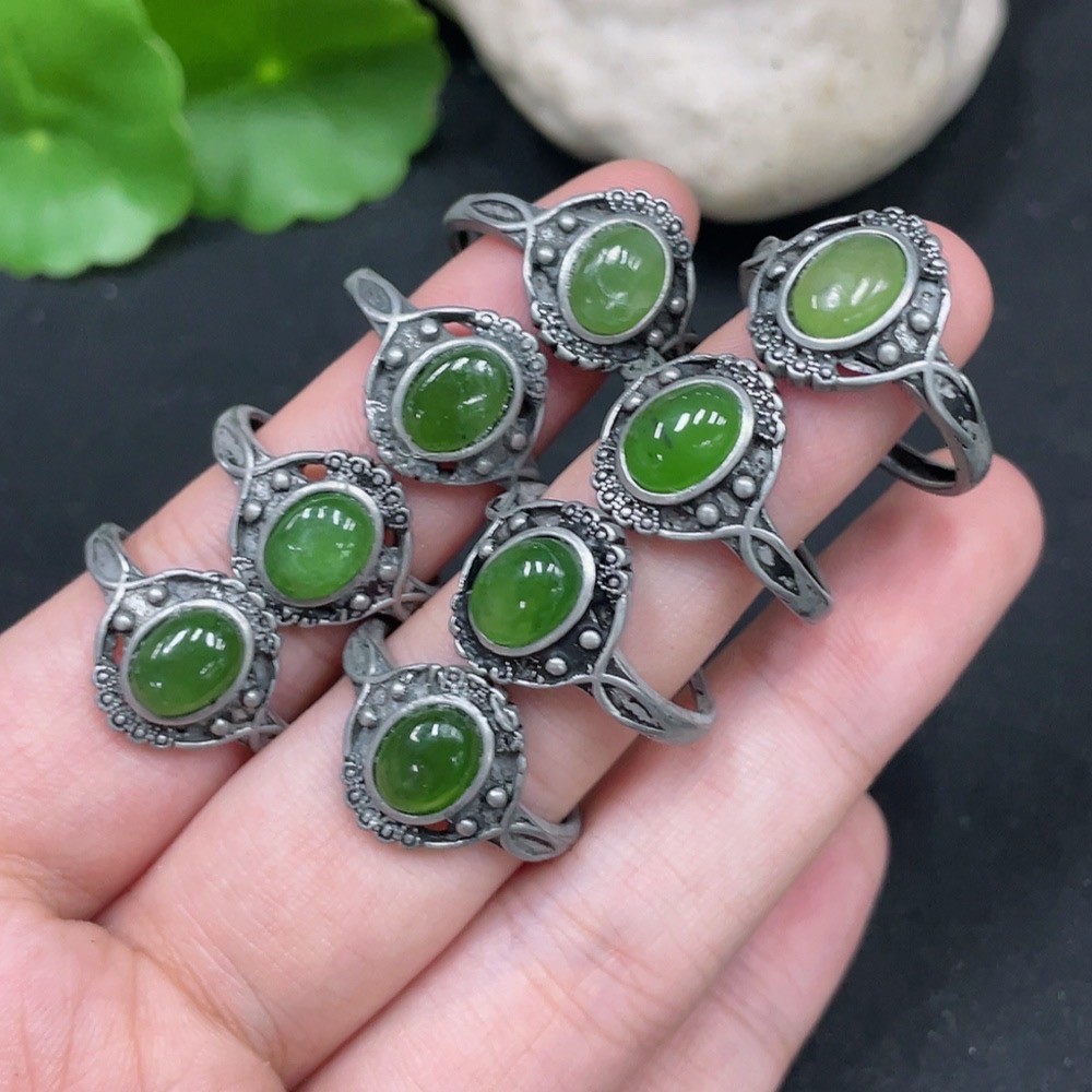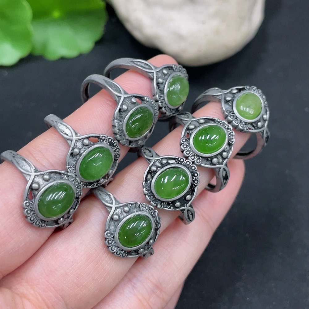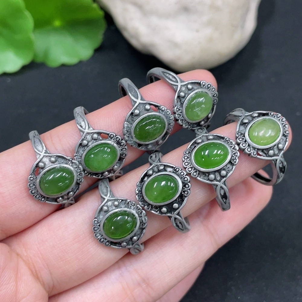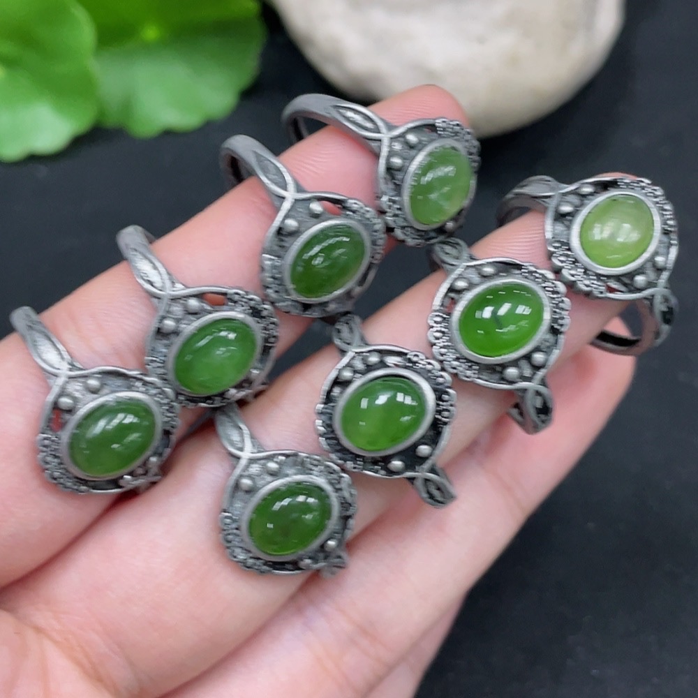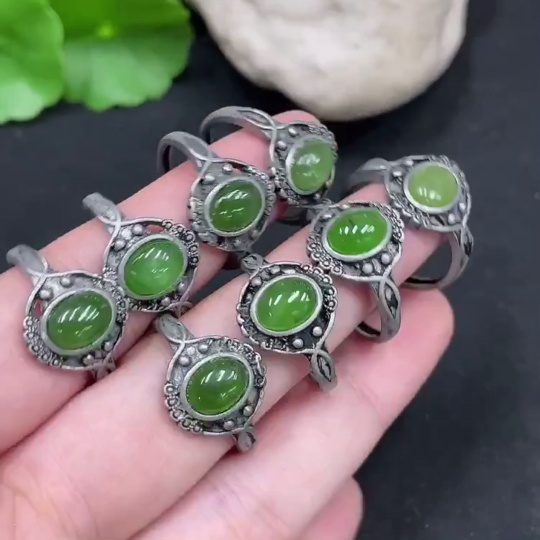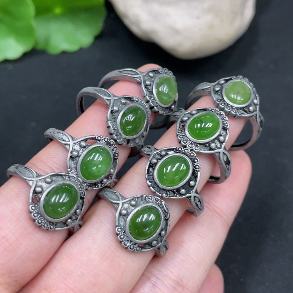 Hetian Jade Inlaid Adjustable Ring Non-Gold Total Weight Approx. 20g