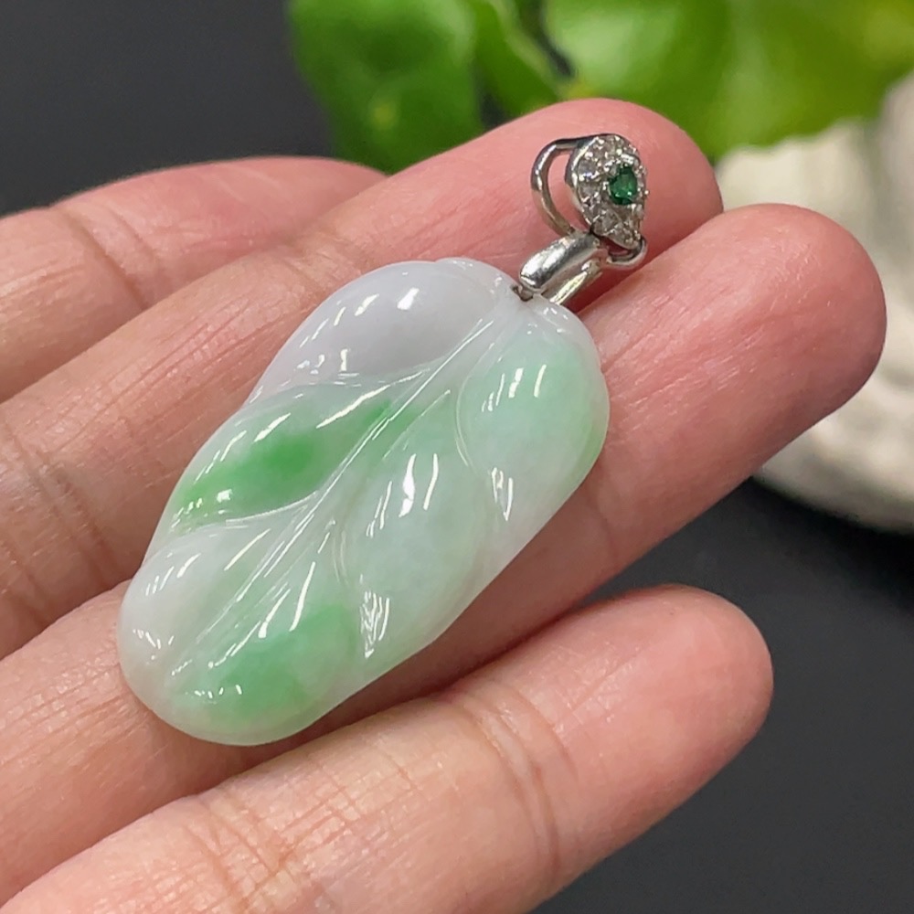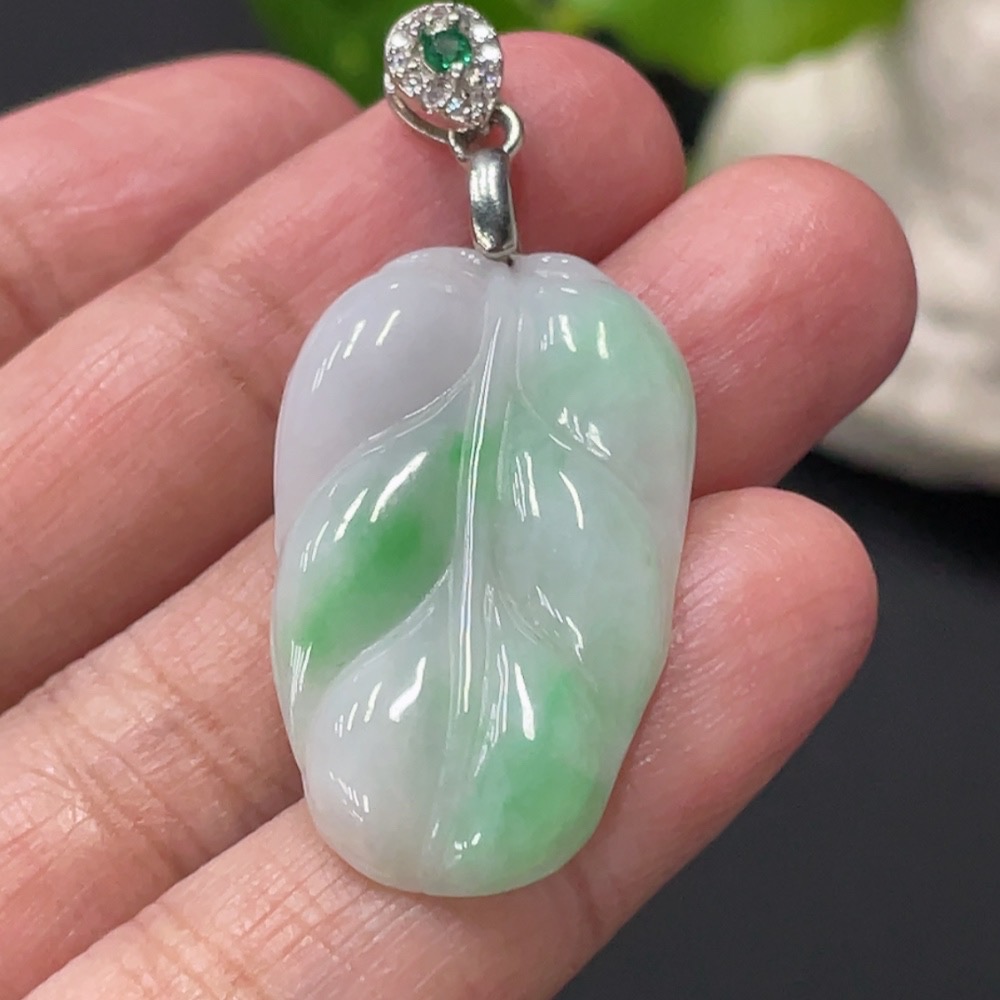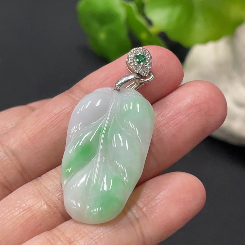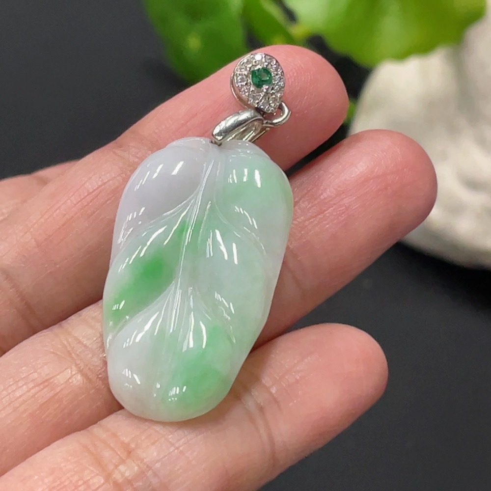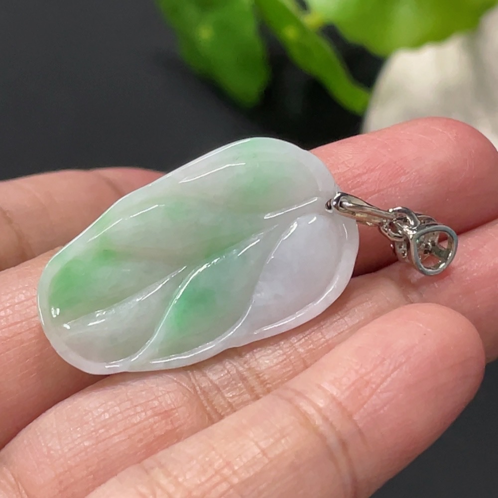 Jadeite Leaf Pendant Total Weight Approx. 5.2g Non-Gold Clasp