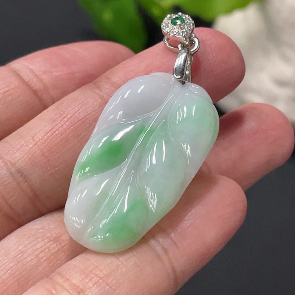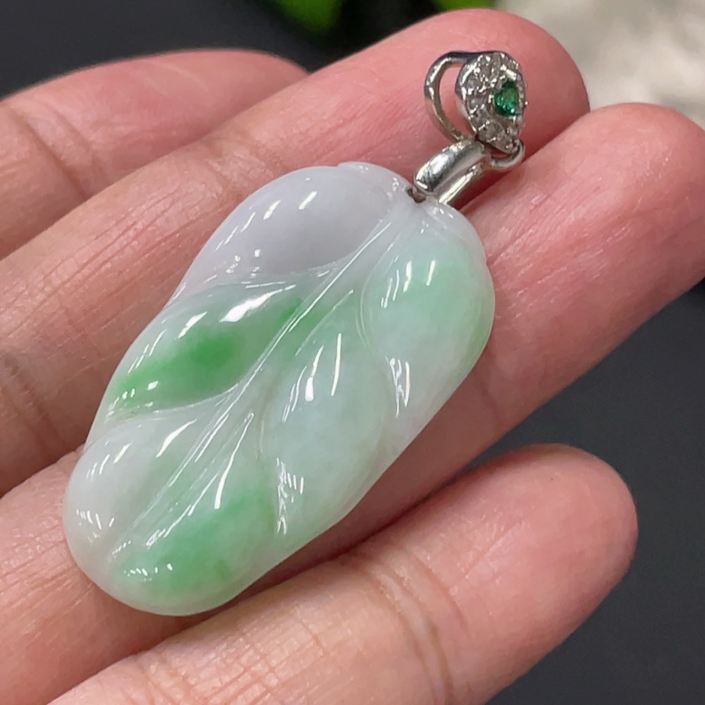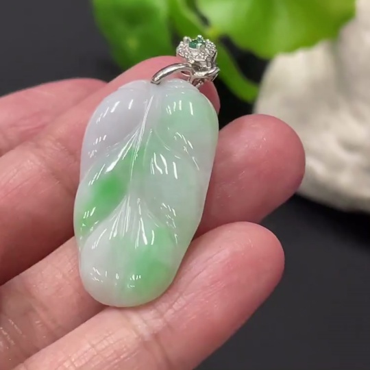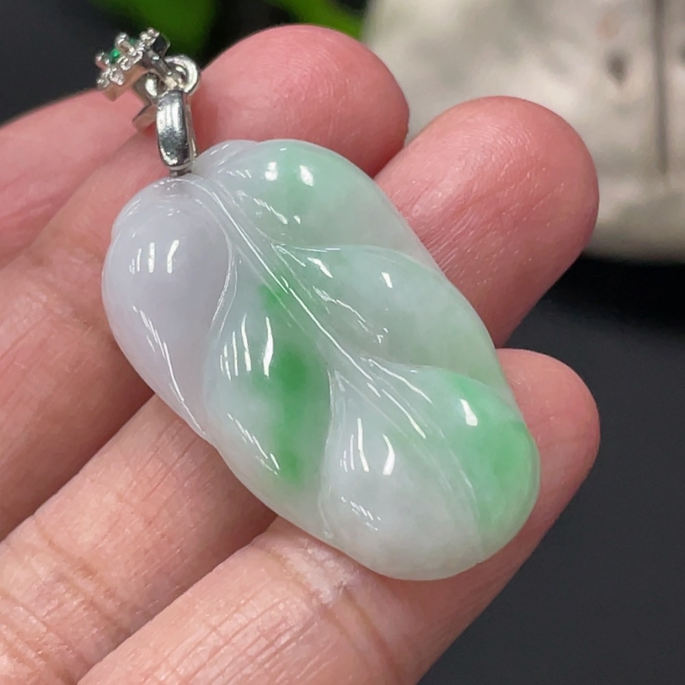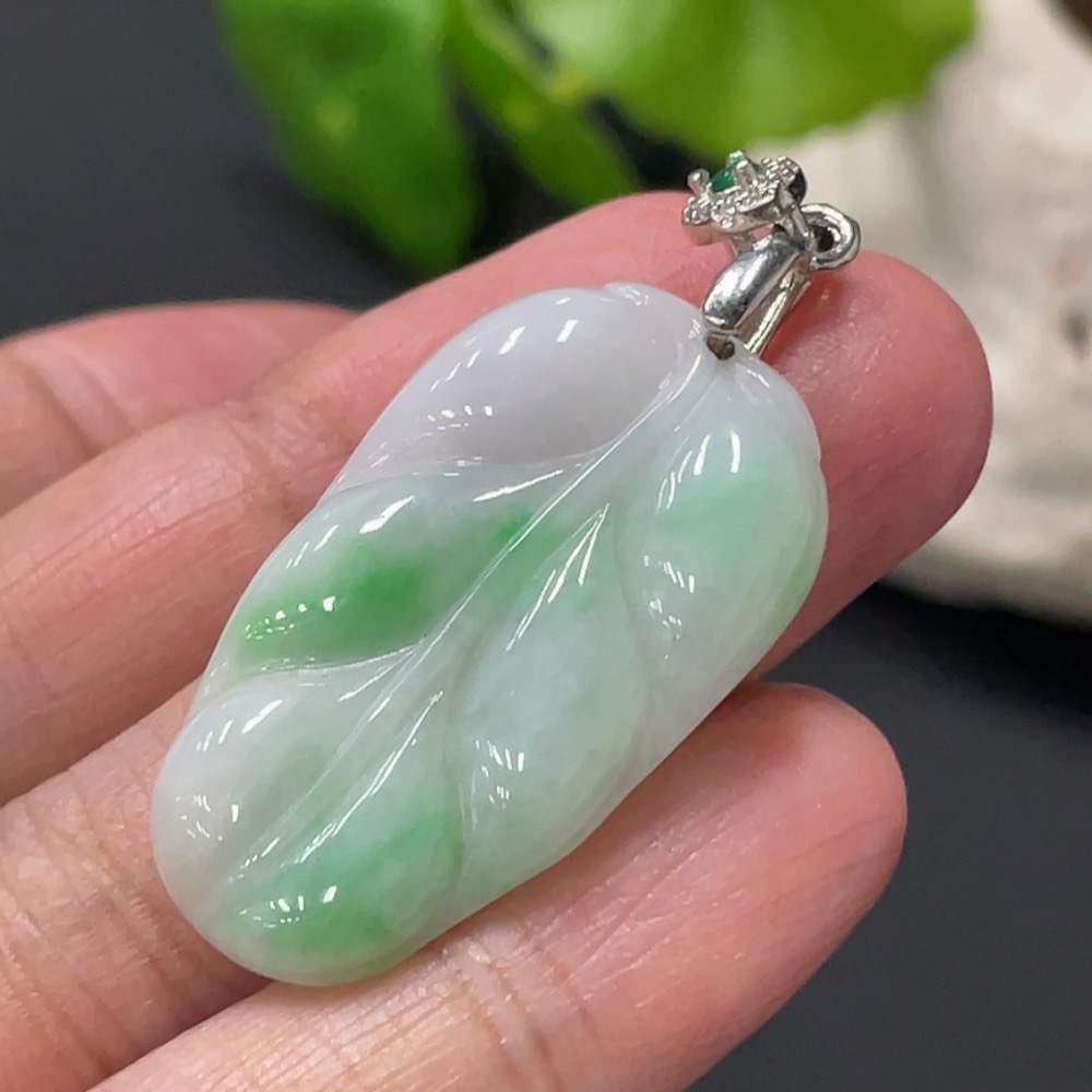 Jadeite Leaf Pendant Total Weight Approx. 5.2g Non-Gold Clasp