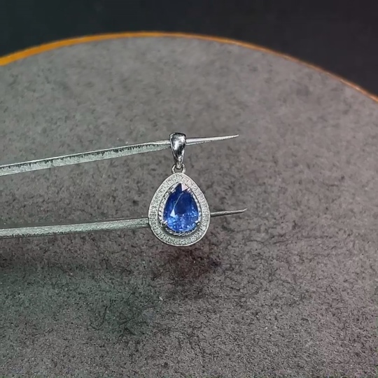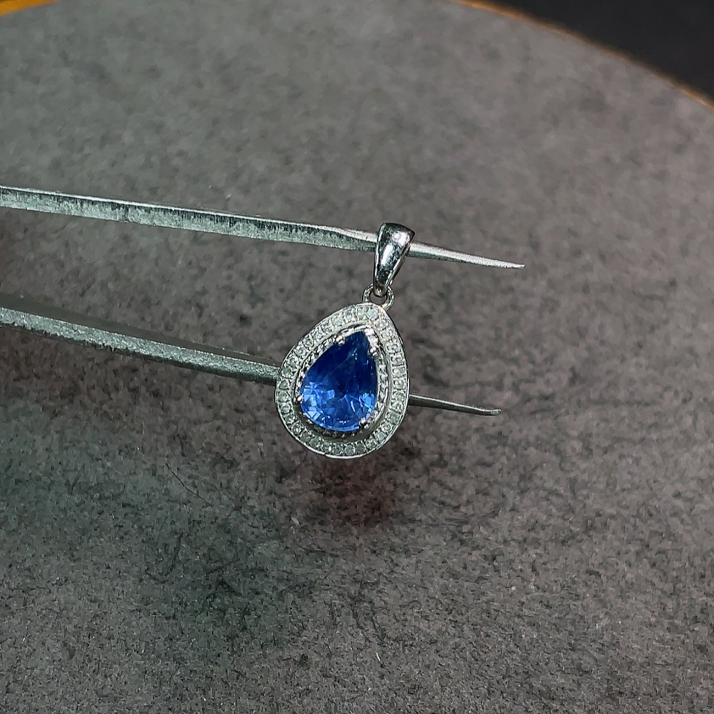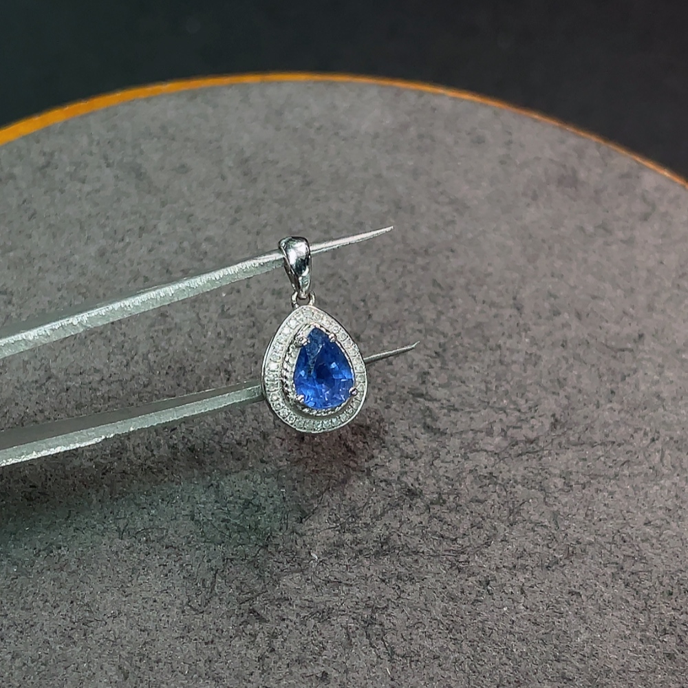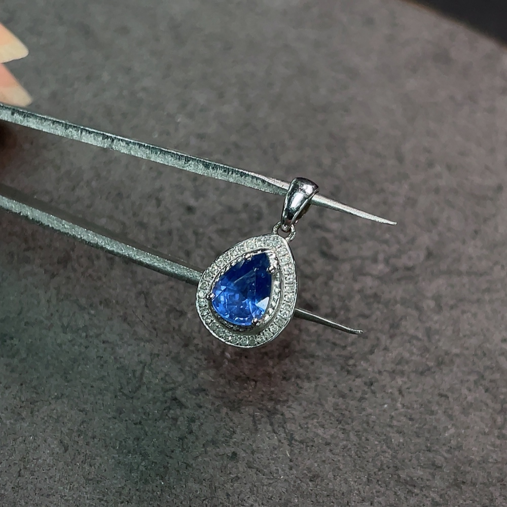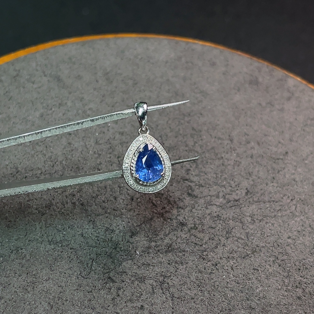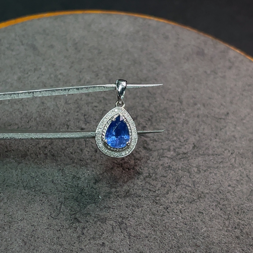 Sapphire Pendant 18K Gold with Diamond Accents Total Weight Approx. 1.22g