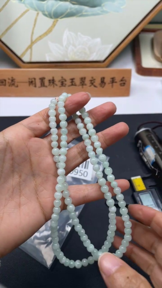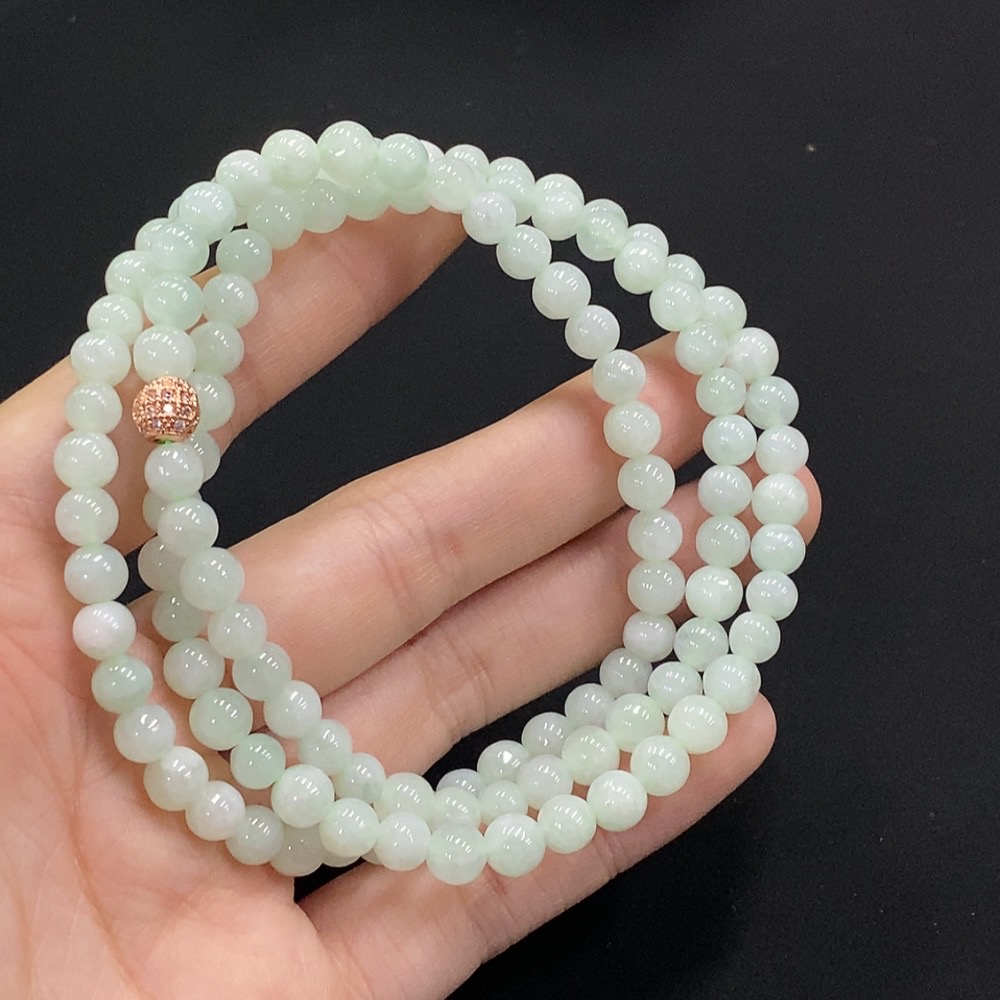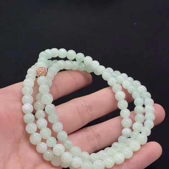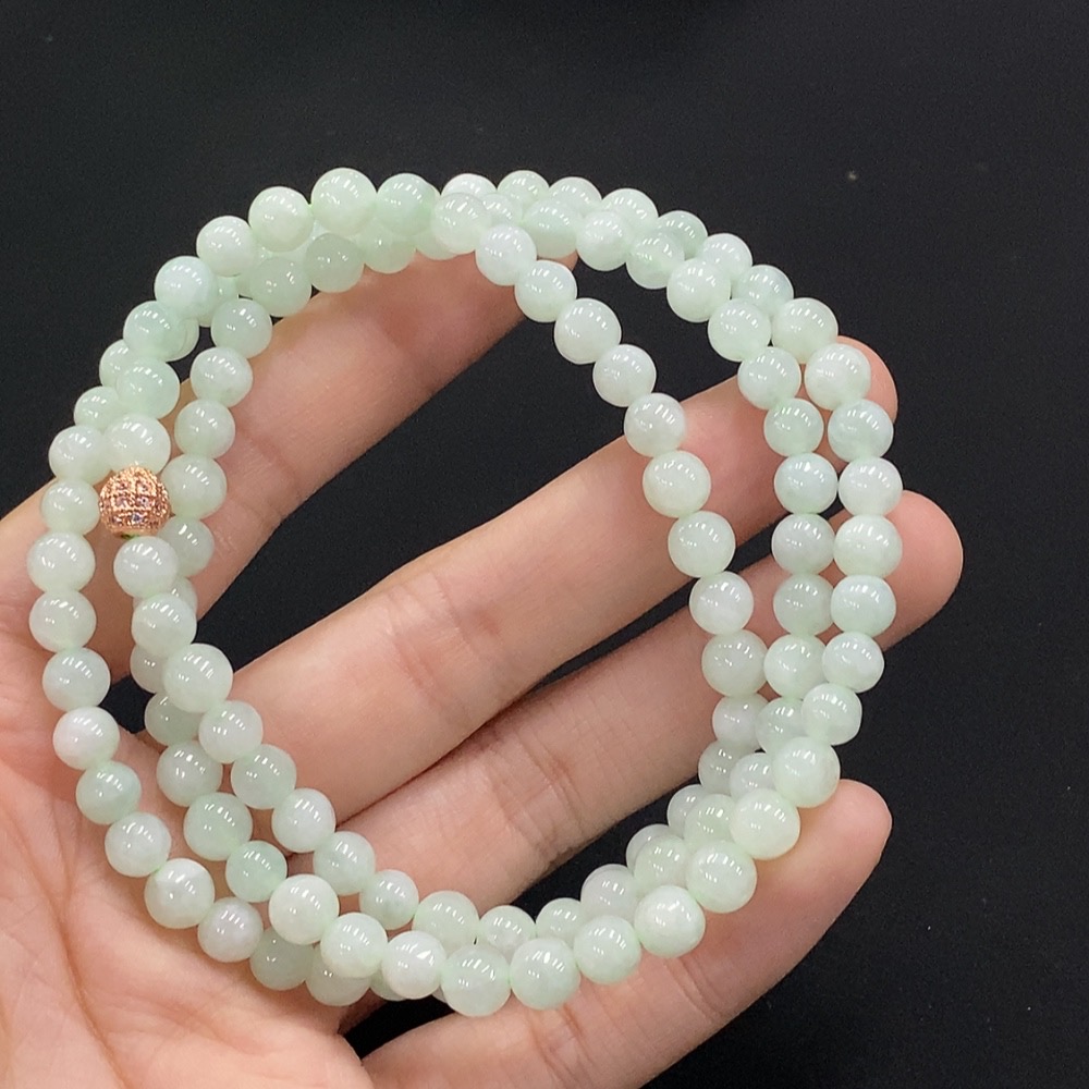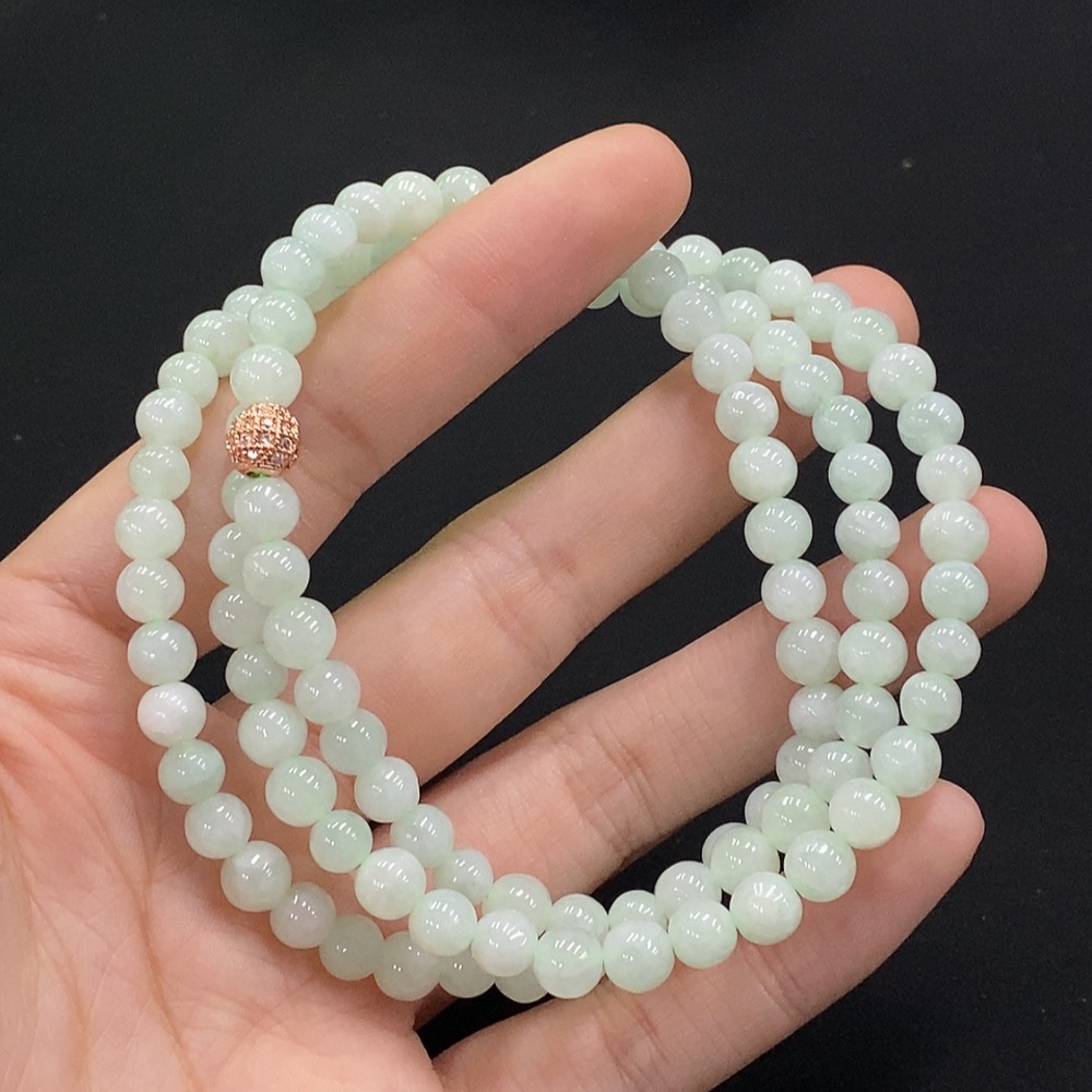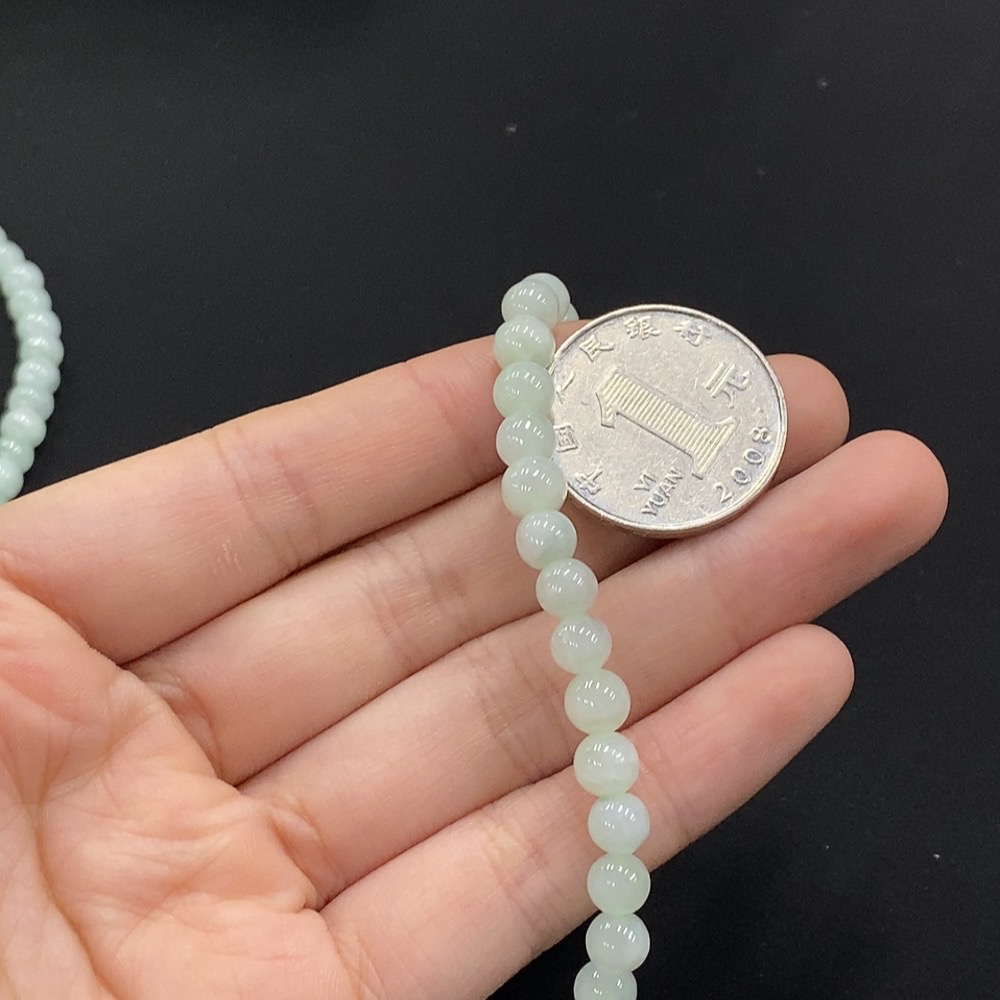 Jadeite Bead Necklace Approx. 6.1mm Non-Gold-Inlaid Total Weight Approx. 38.63g