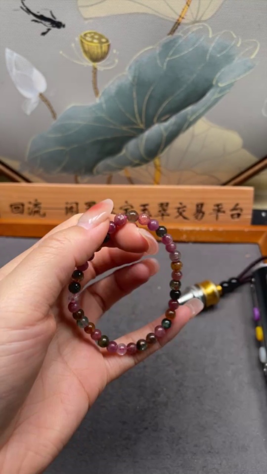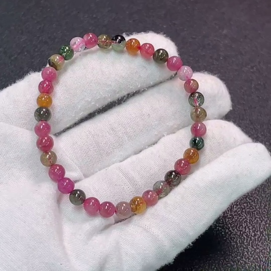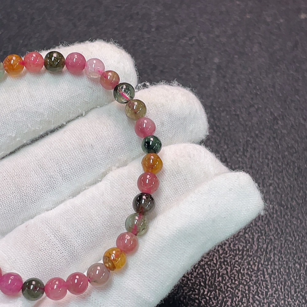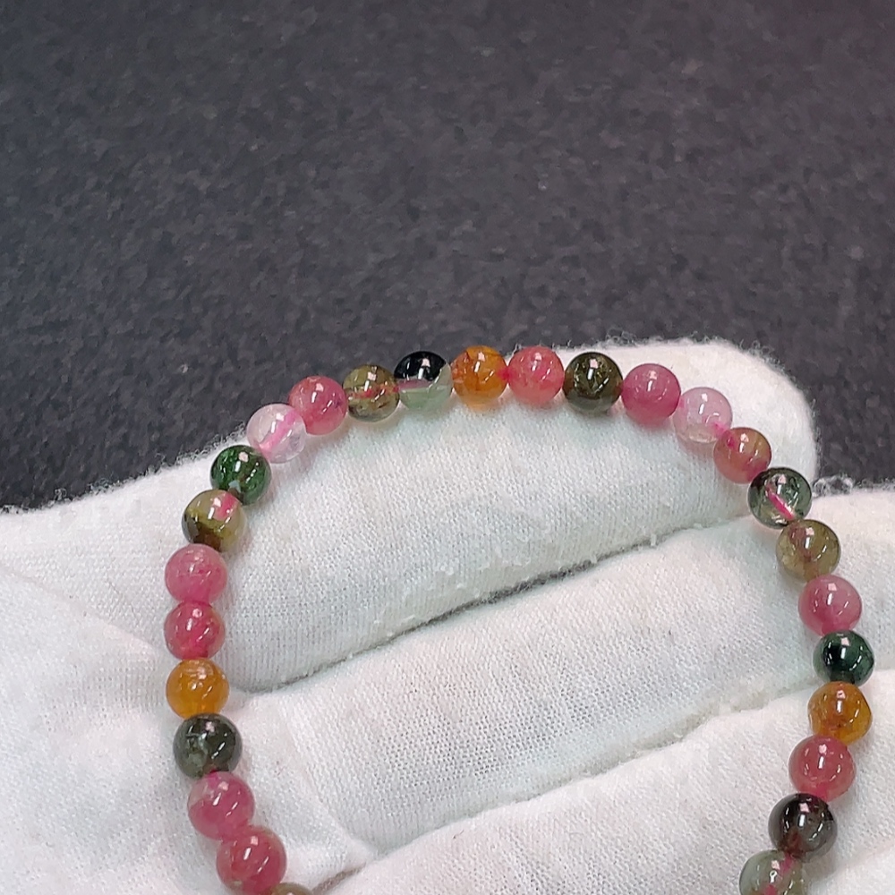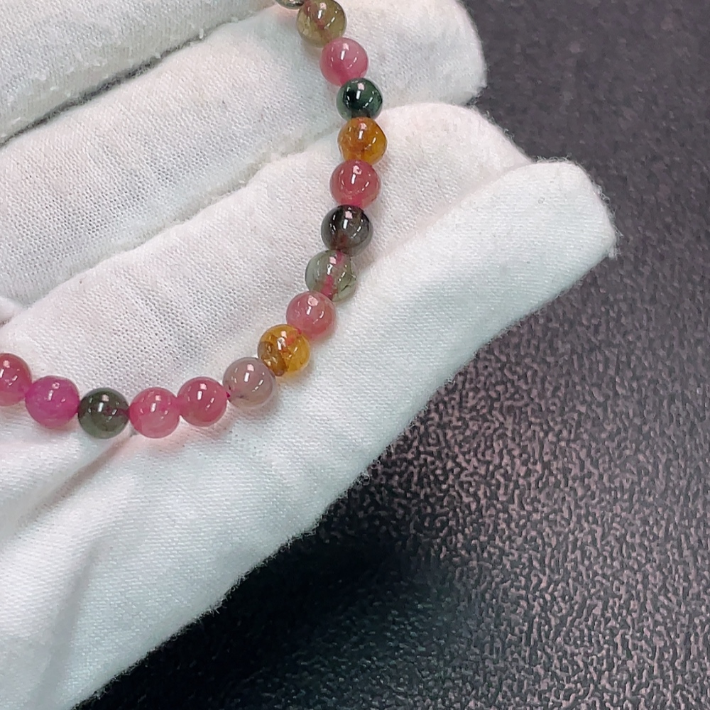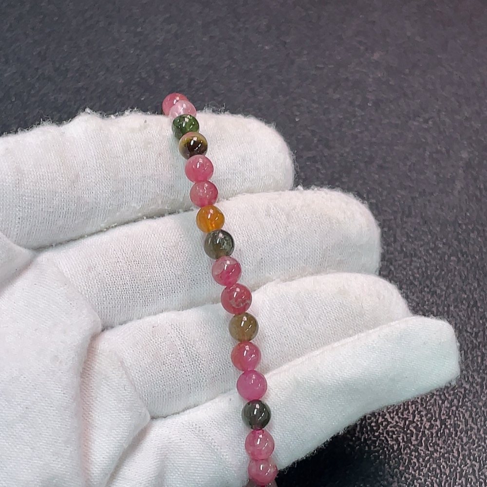 Tourmaline Bracelet with Visible Organic Matter and Other Mineral Components, Total Weight Approximately 7.32g, Size About 5mm