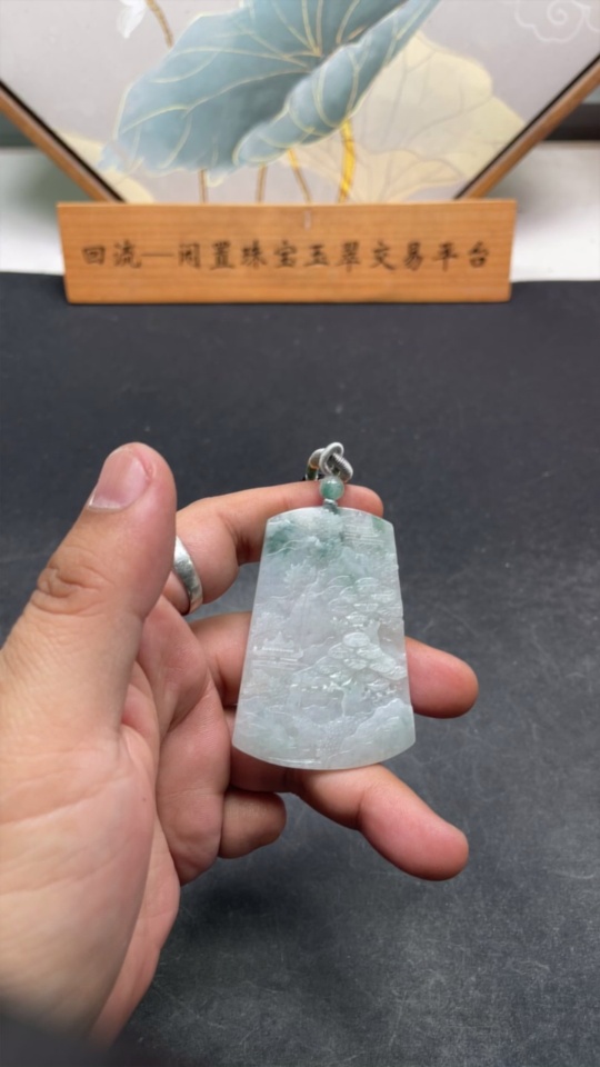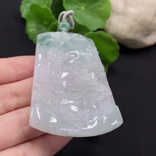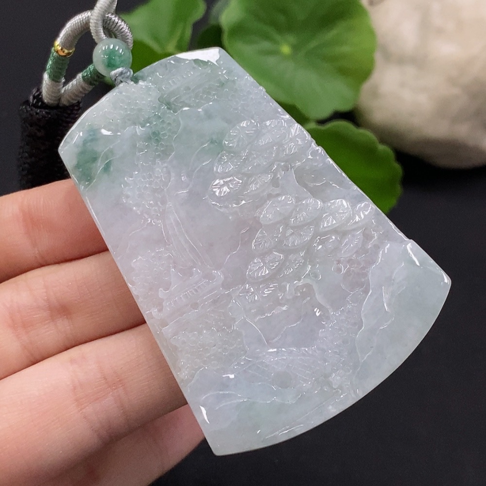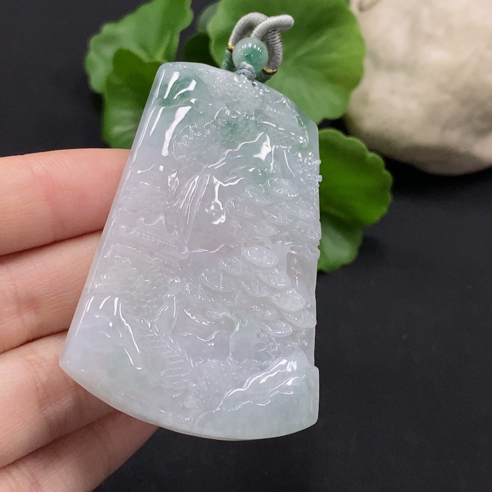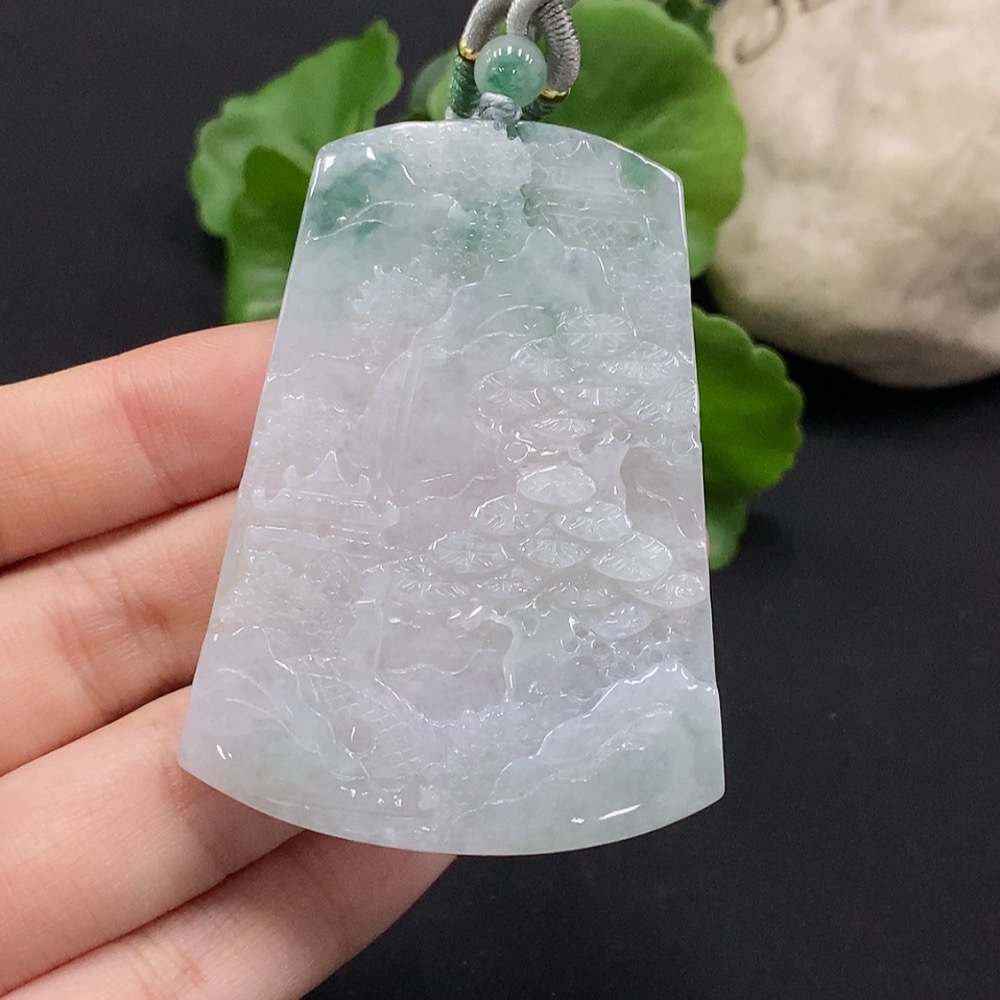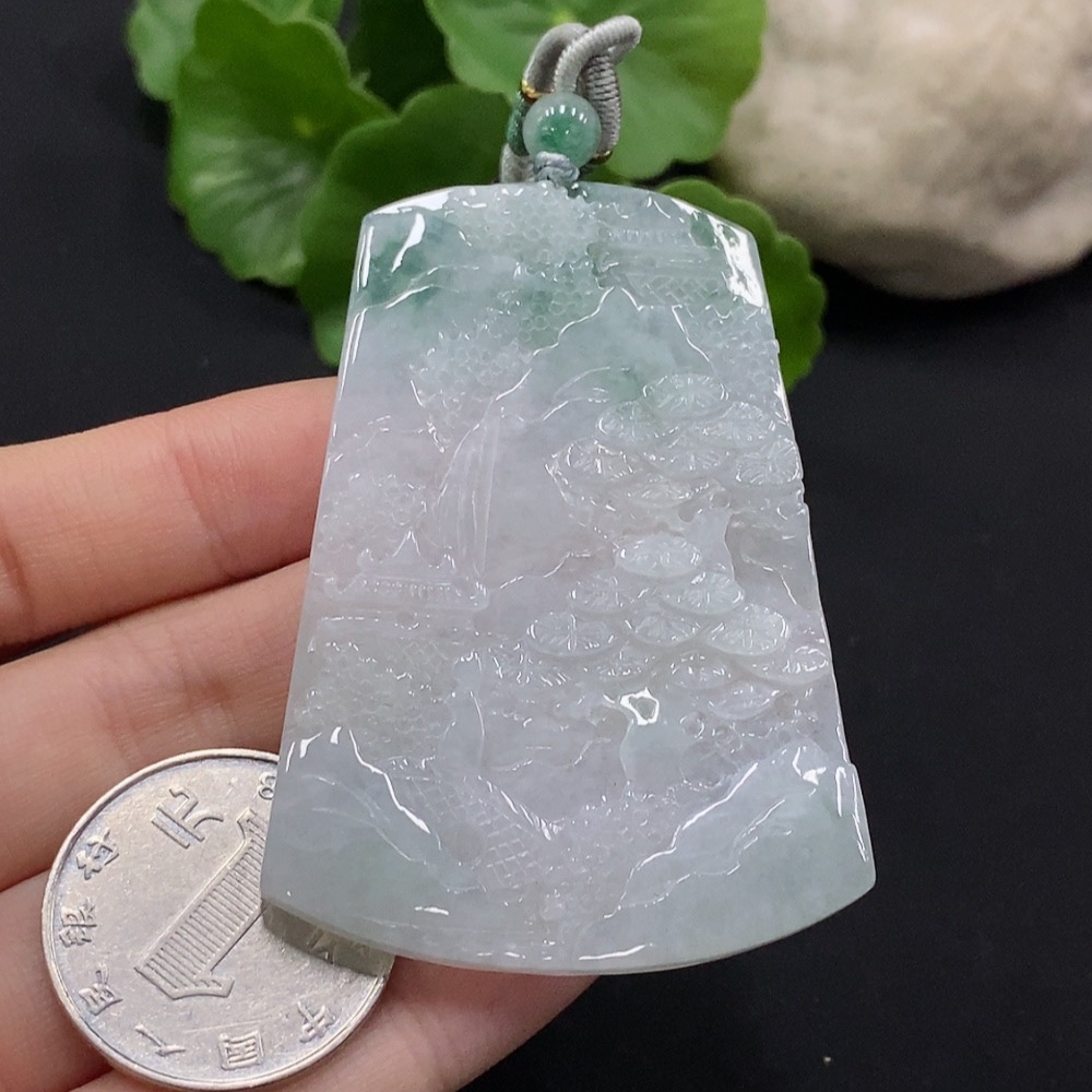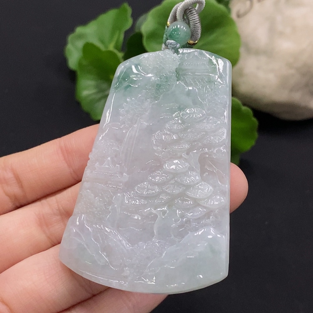 Jadeite Landscape Pendant with Non-Grade A Beads Total Weight Approx. 30.96g