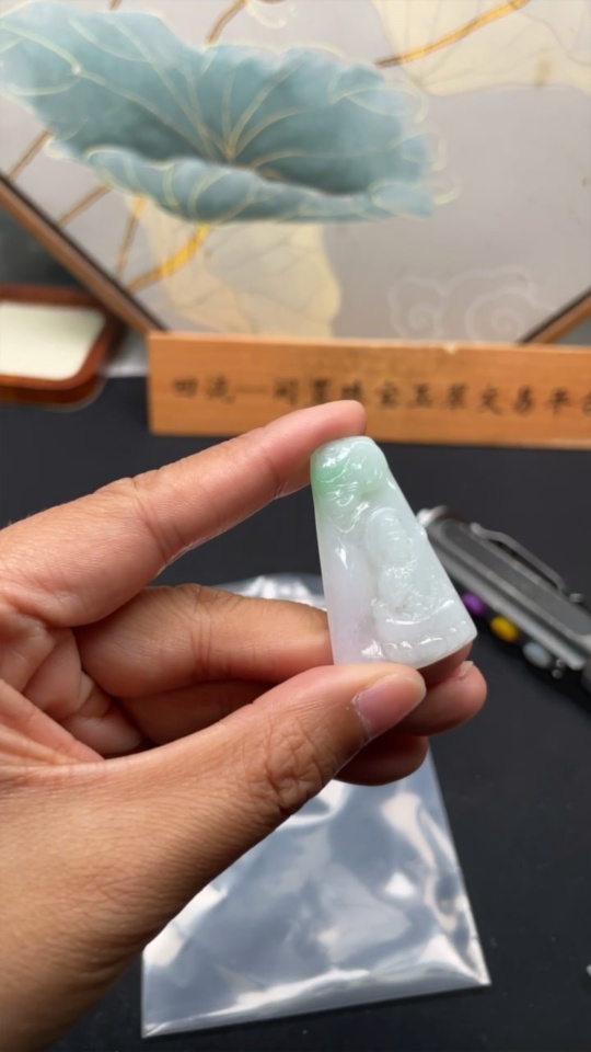 Jadeite Samantabhadra Bodhisattva Pendant, Total Weight Approximately 9.8g