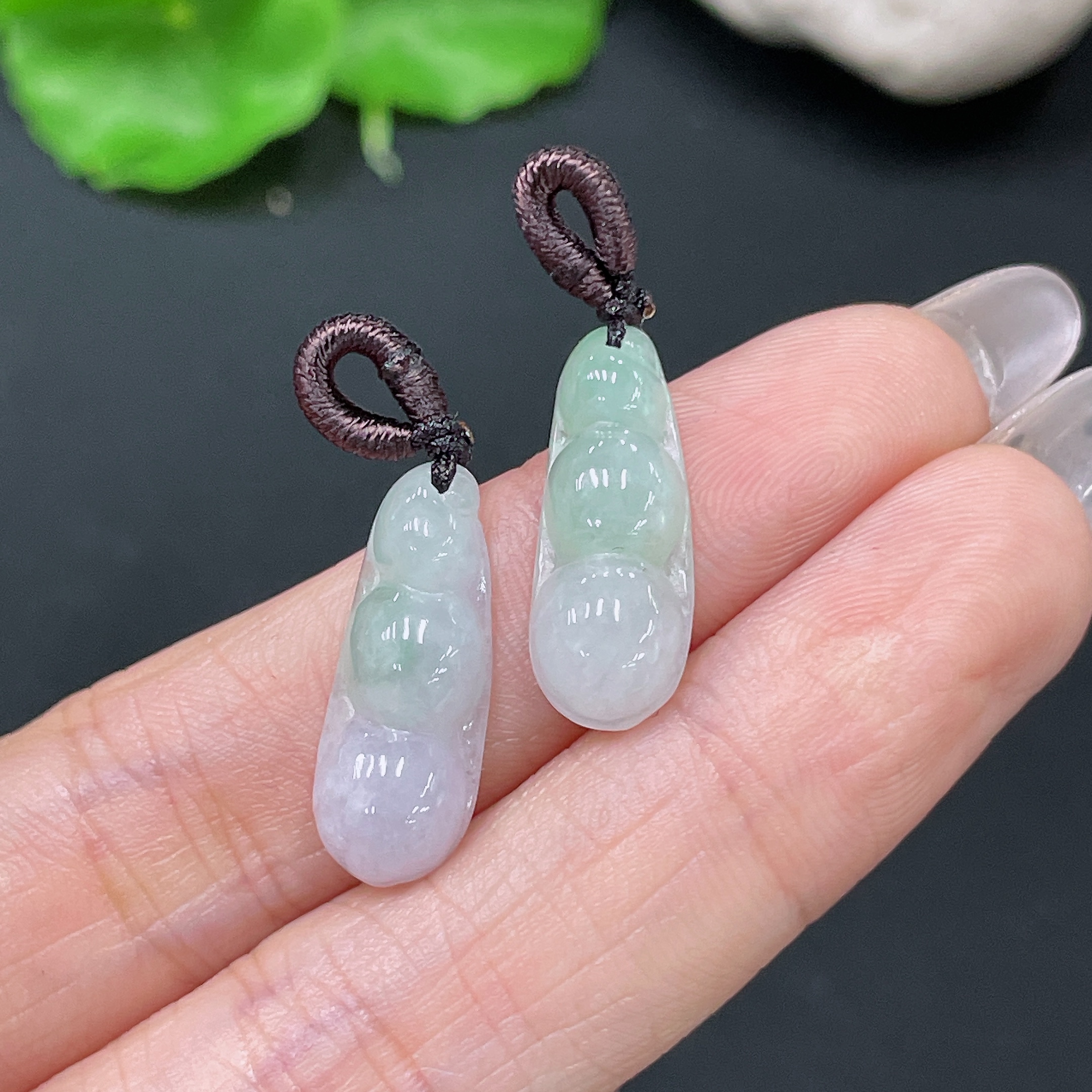 Jadeite Lucky Bean Pendants Sell as a Lot