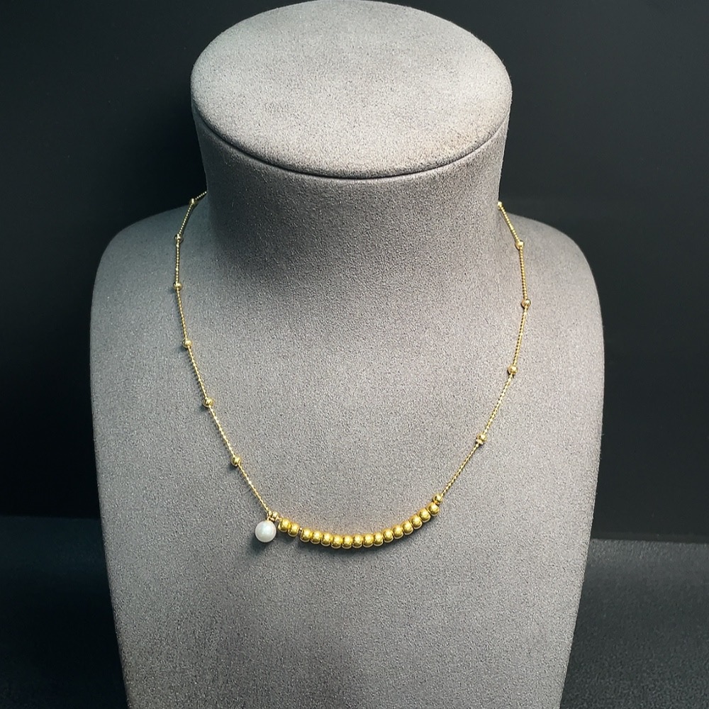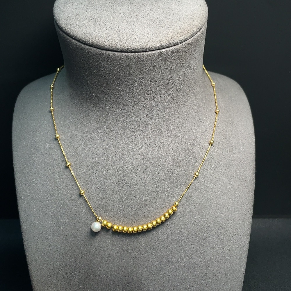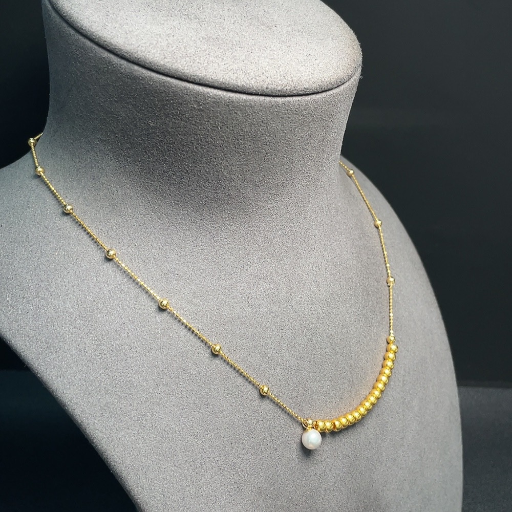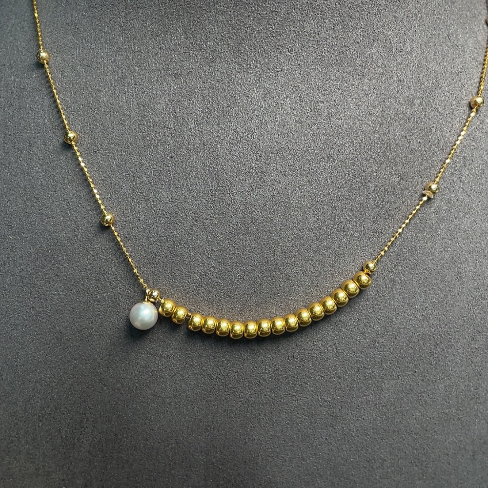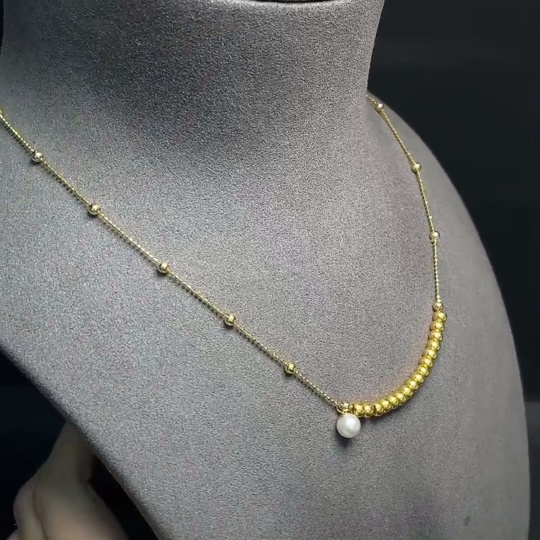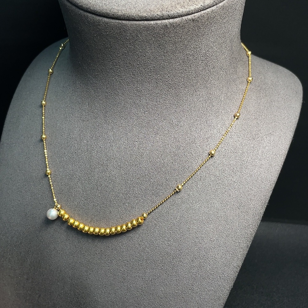 Seawater Pearl Necklace with Undetermined Color Origin, Pendant Contains 73% Gold, Large Bead Contains 99% Gold, Remainder 18K Gold, Total Weight Approximately 3.39g, Size Around 6mm