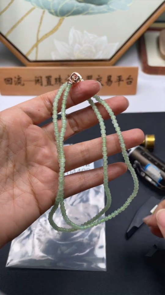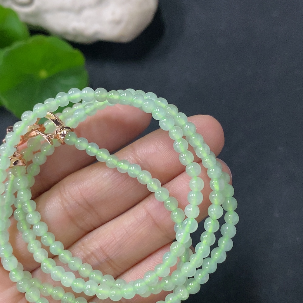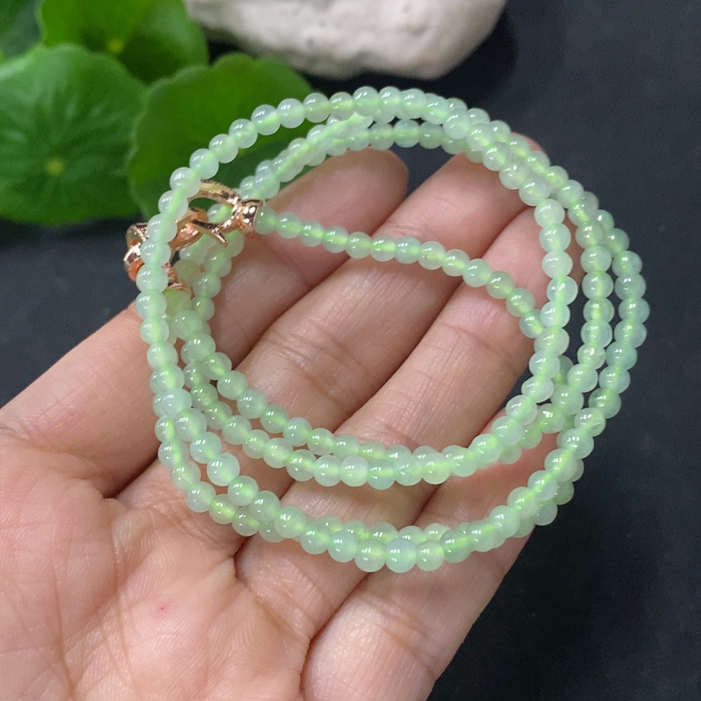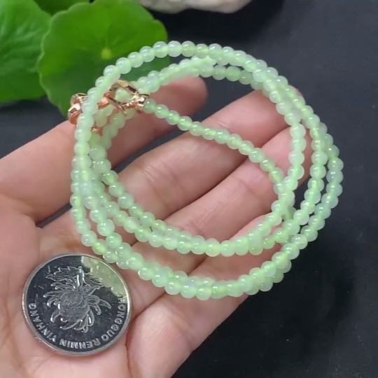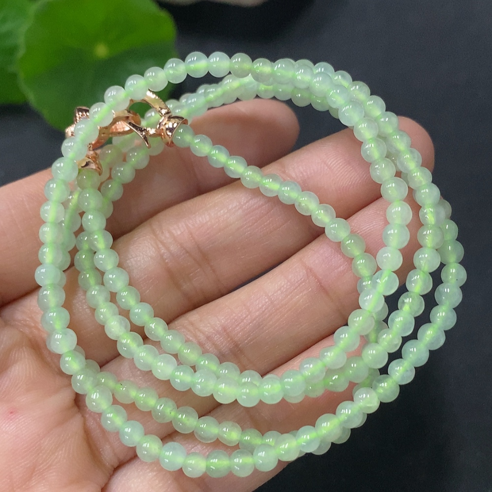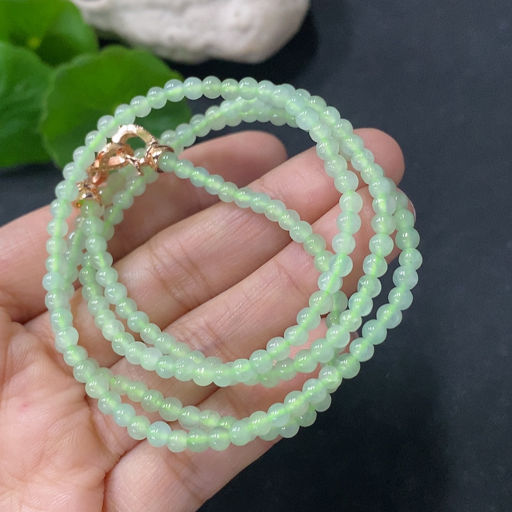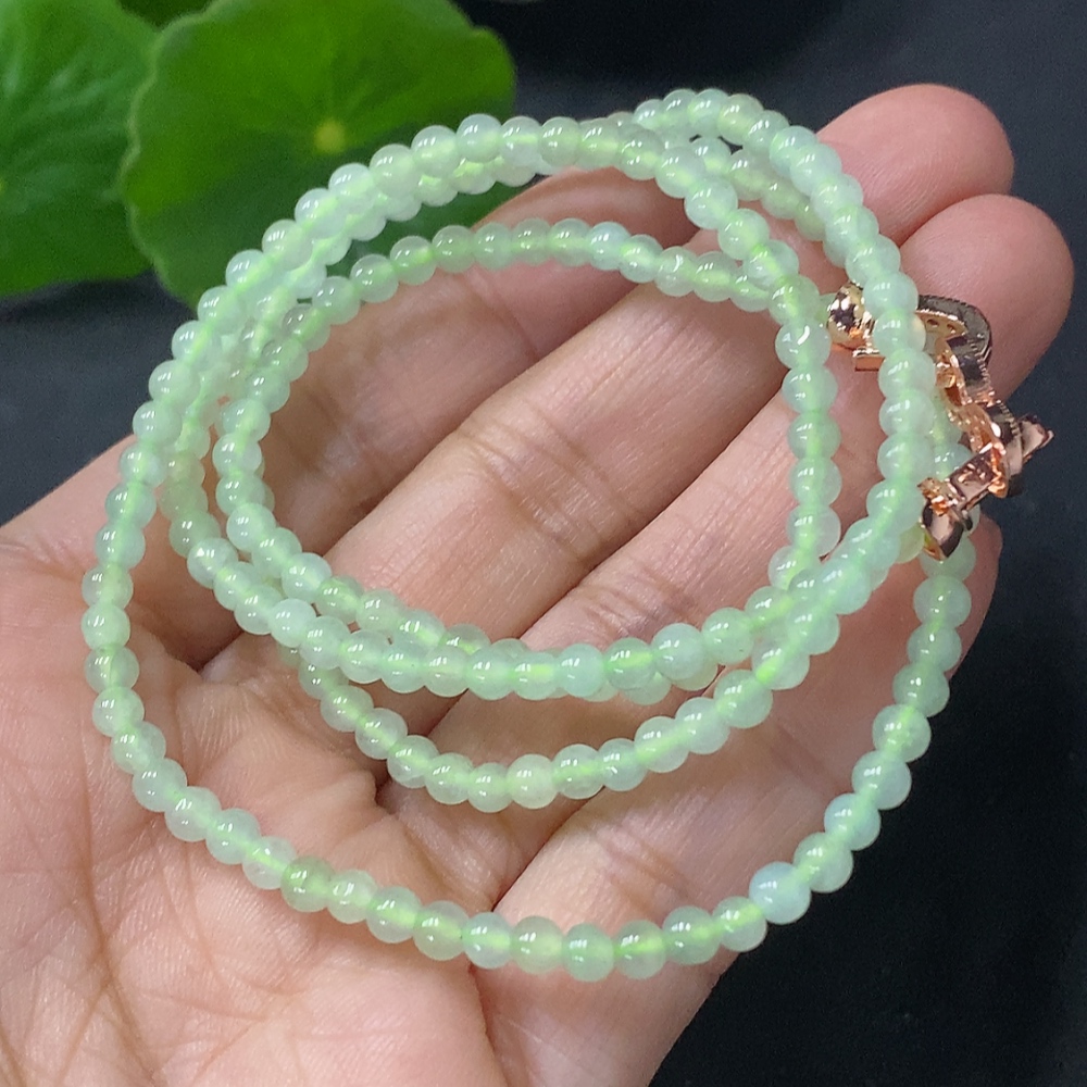 Jadeite Beaded Necklace Approx. 3.5mm Non-Gold Total Weight Approx. 13.65g