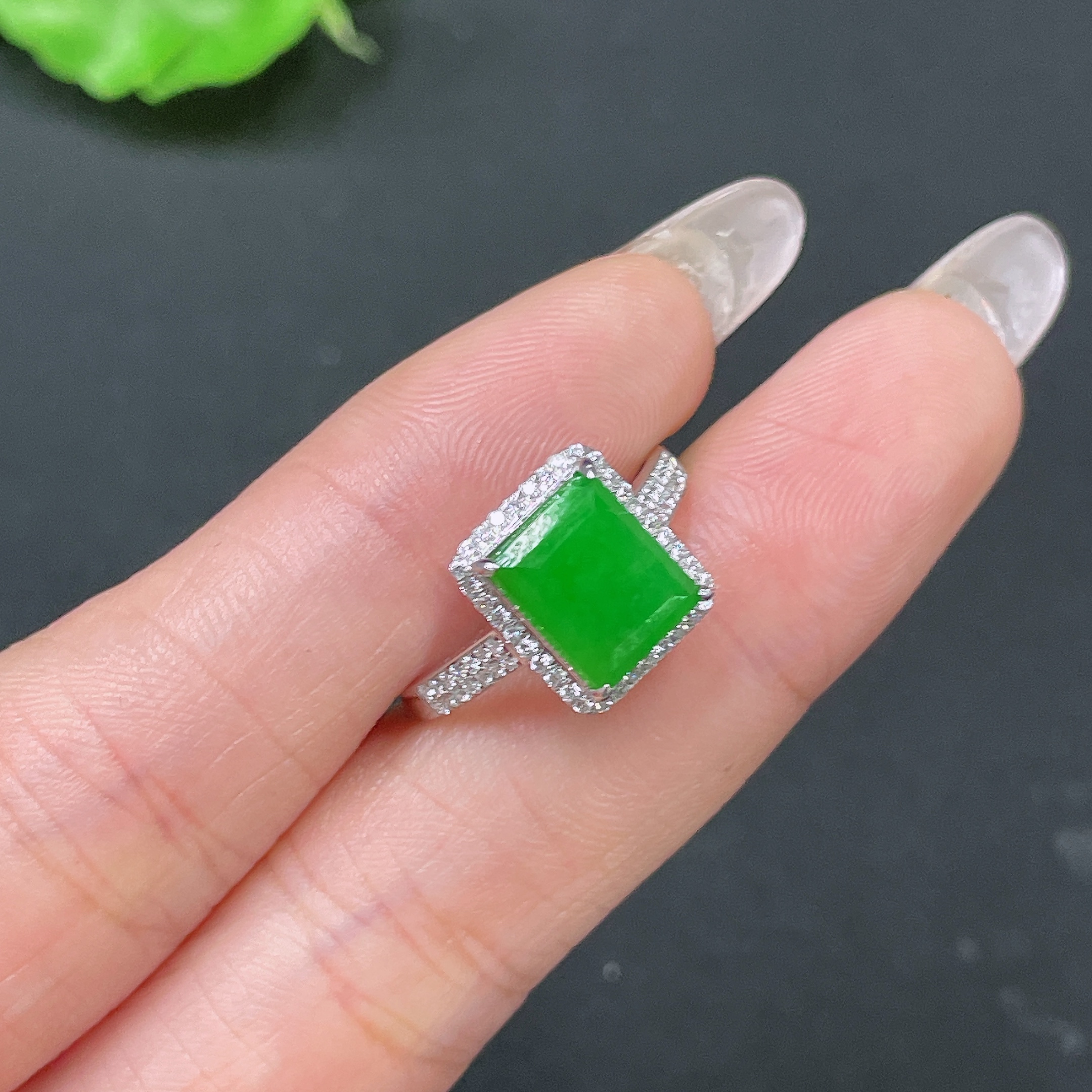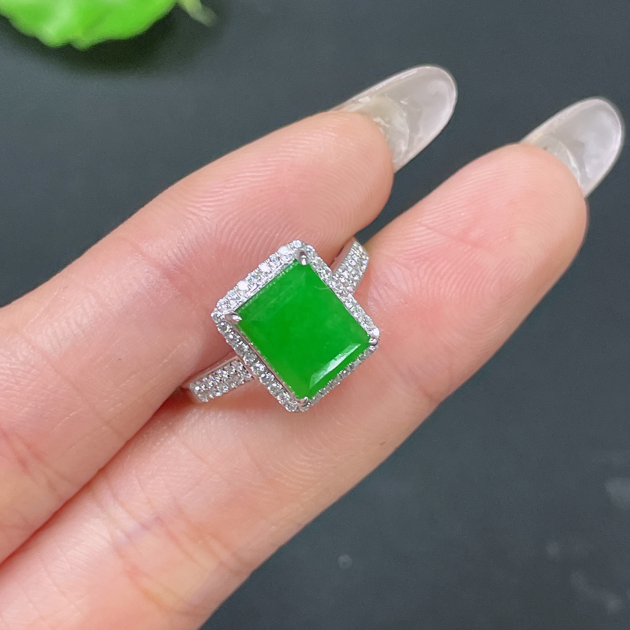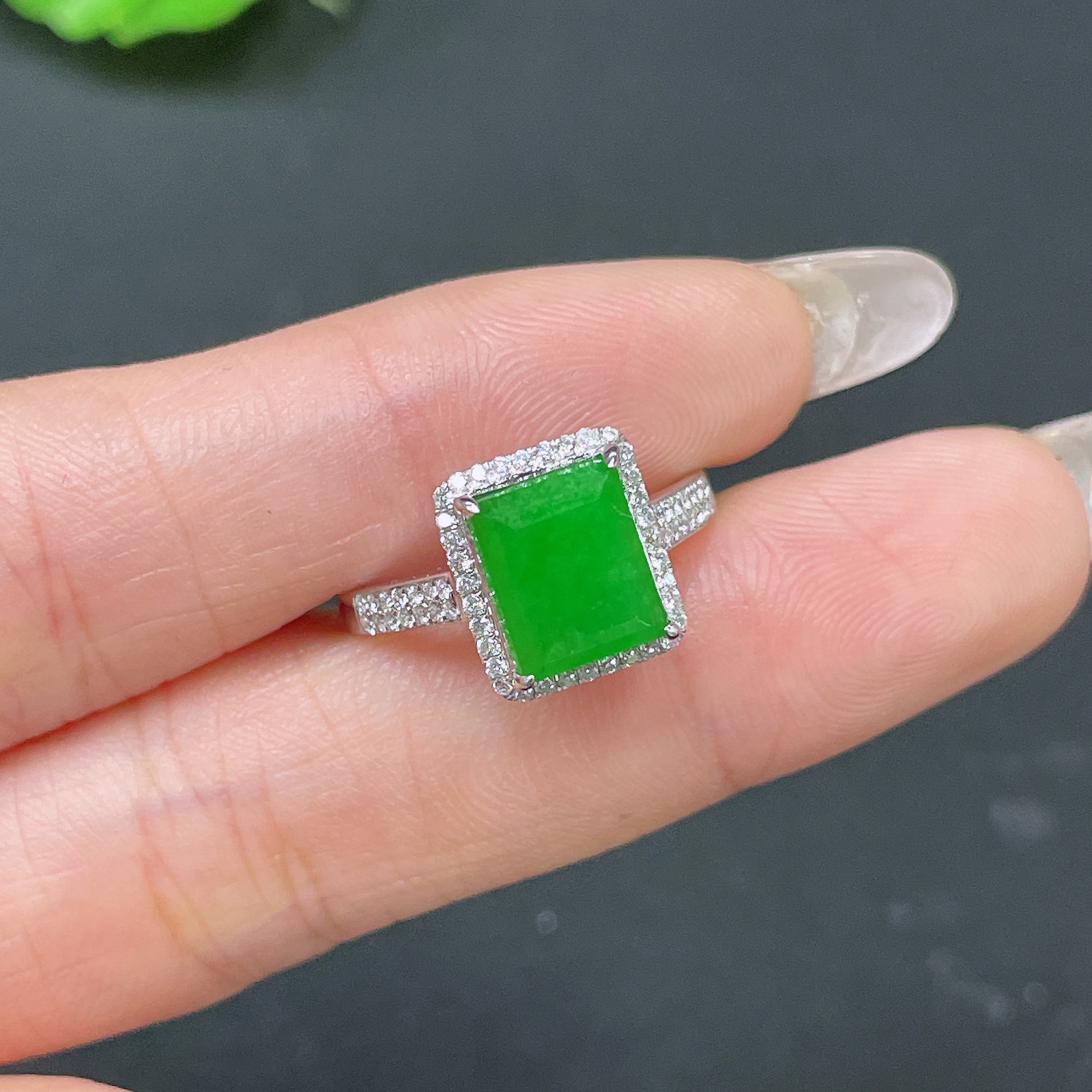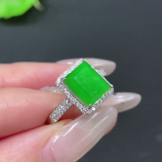 Jadeite ring 18k gold inlaid with 1 non-diamond stone, total weight approximately 3.24g, size 15