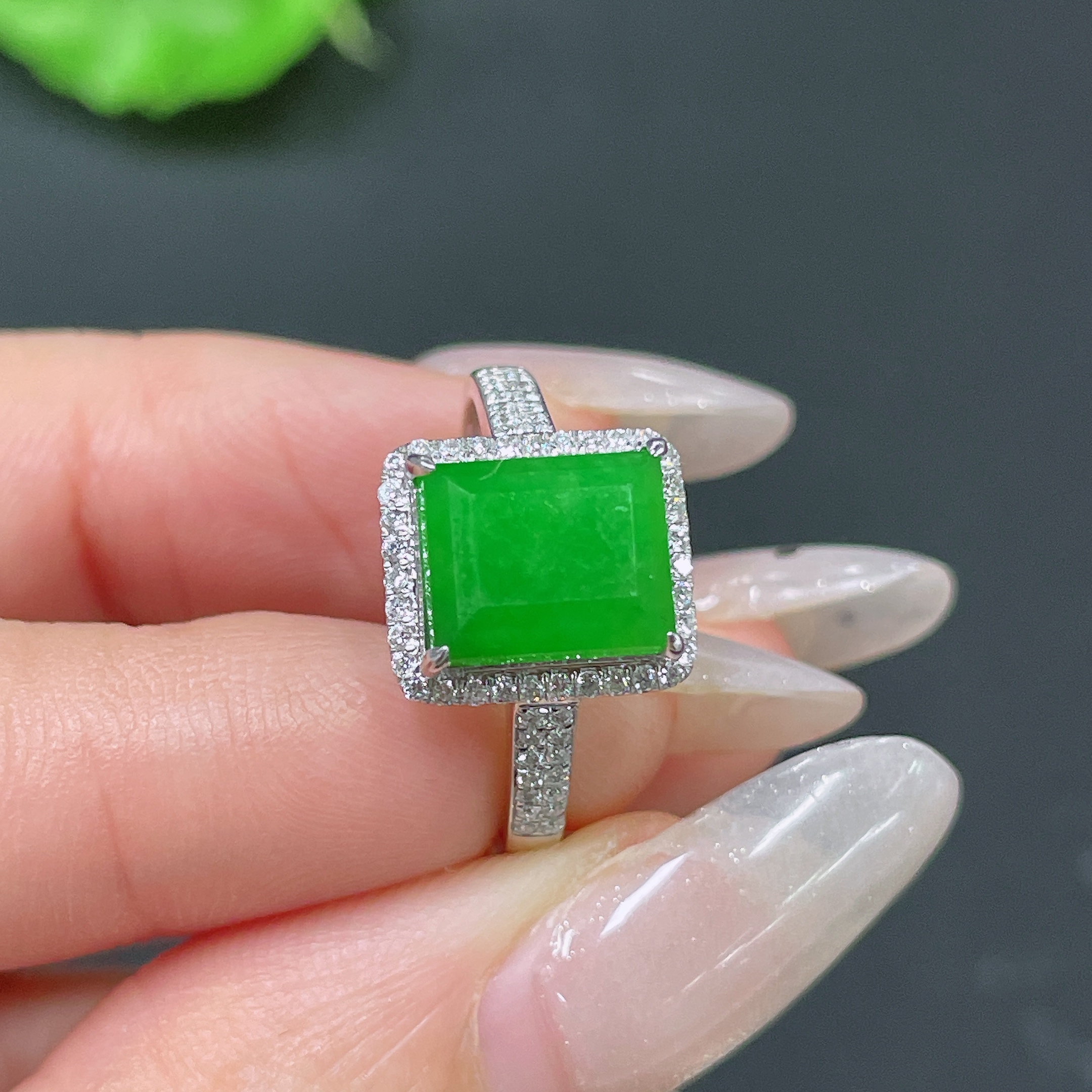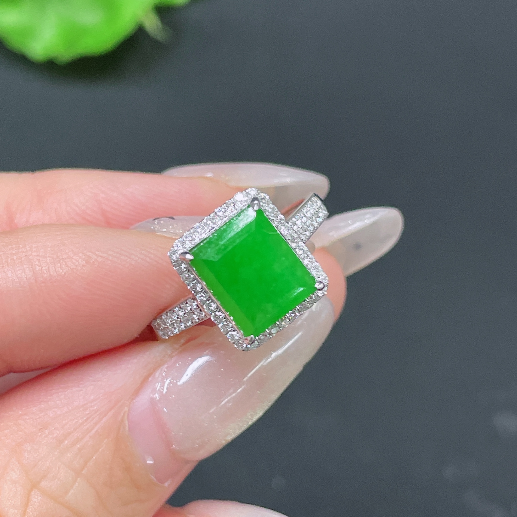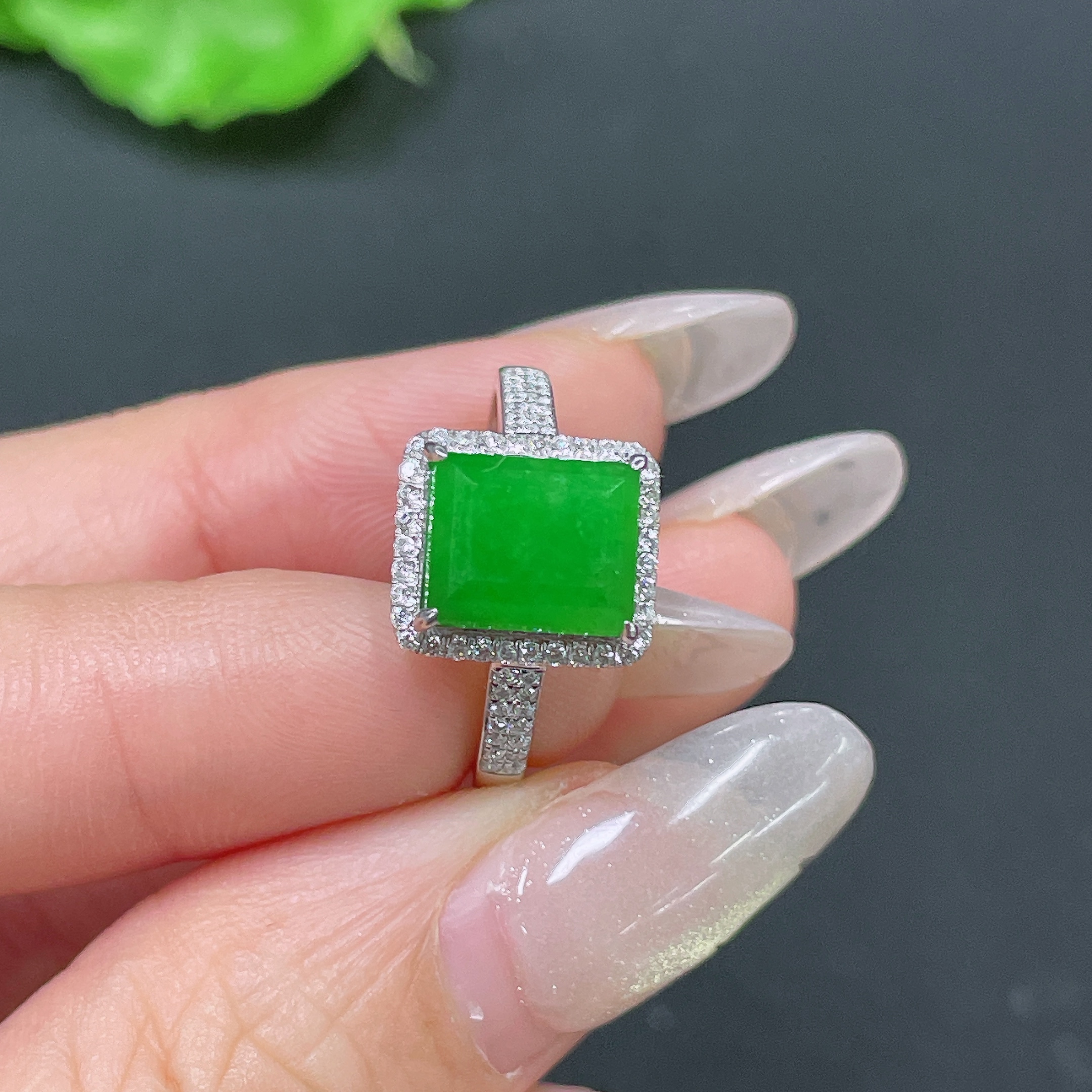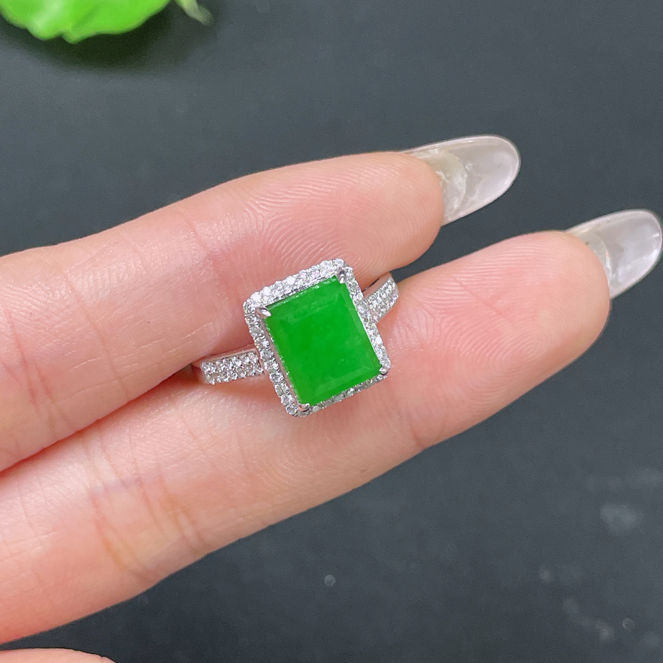 Jadeite ring 18k gold inlaid with 1 non-diamond stone, total weight approximately 3.24g, size 15