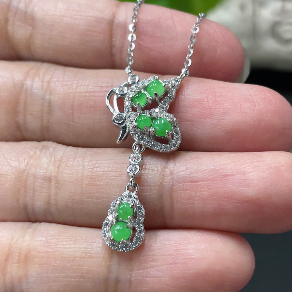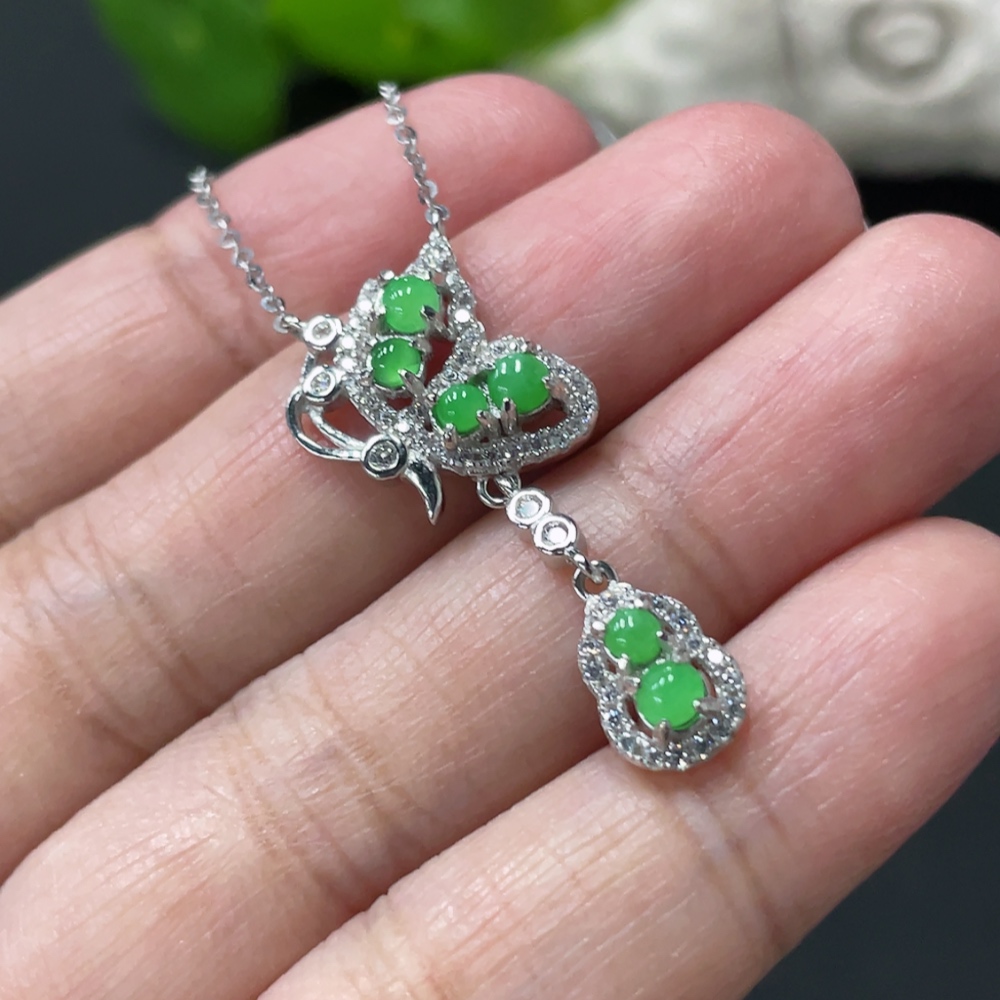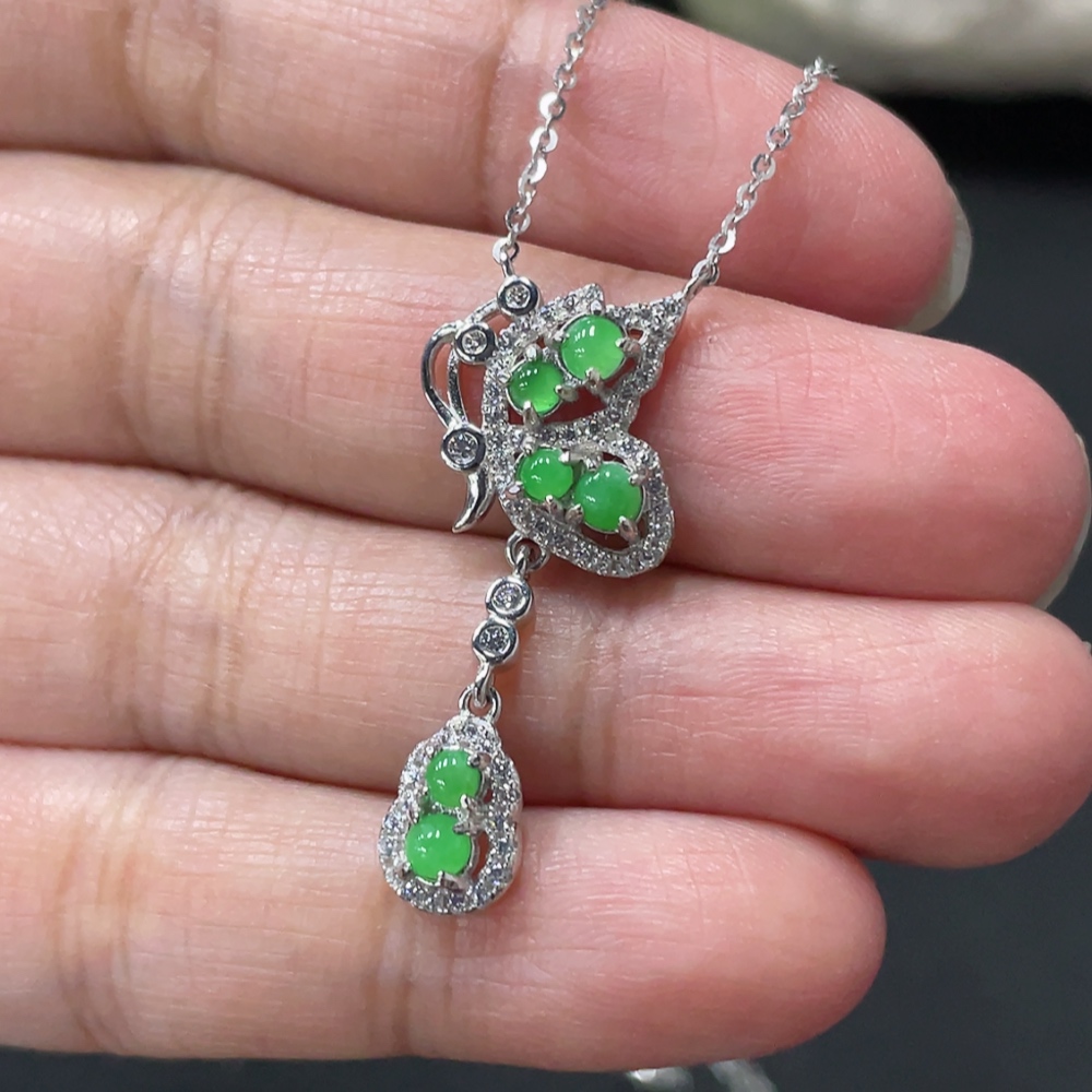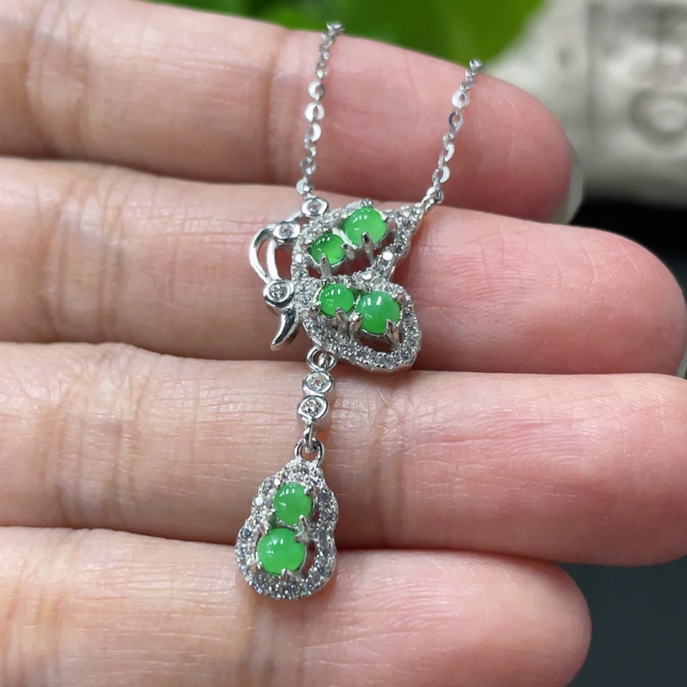 Jadeite Cabochon Pendant Necklace Non-Gold Setting Total Weight Approx. 3.59g