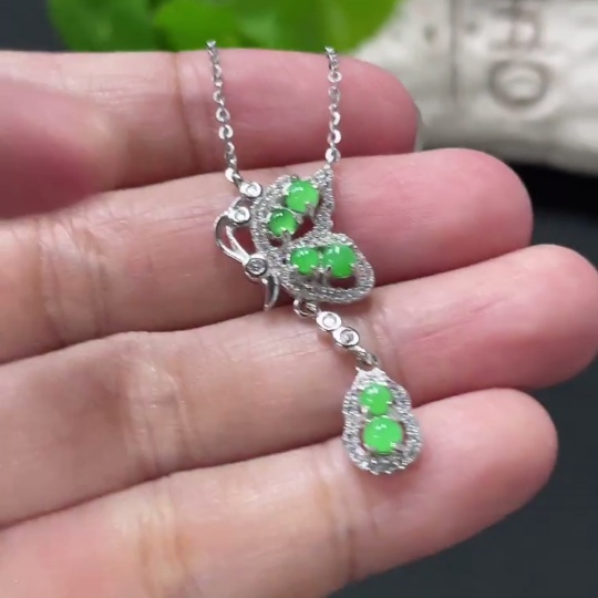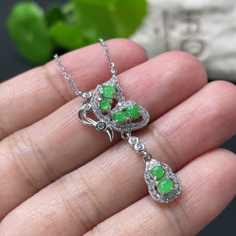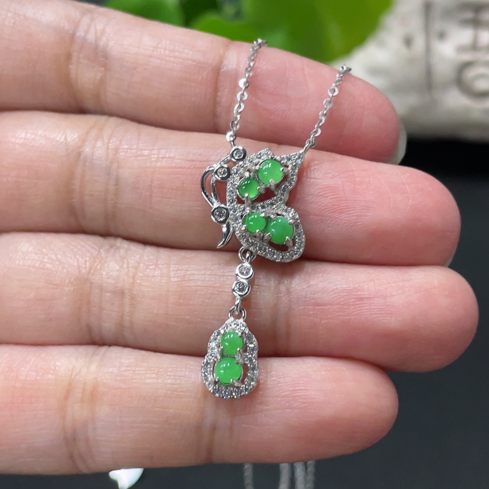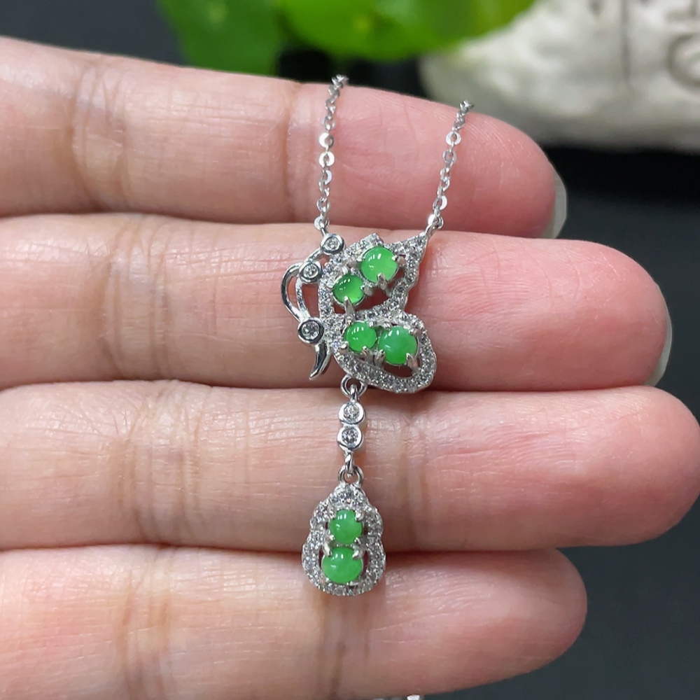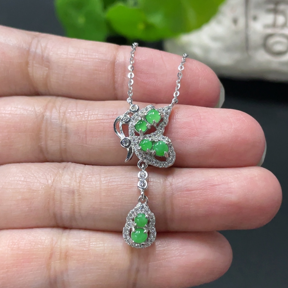Jadeite Cabochon Pendant Necklace Non-Gold Setting Total Weight Approx. 3.59g