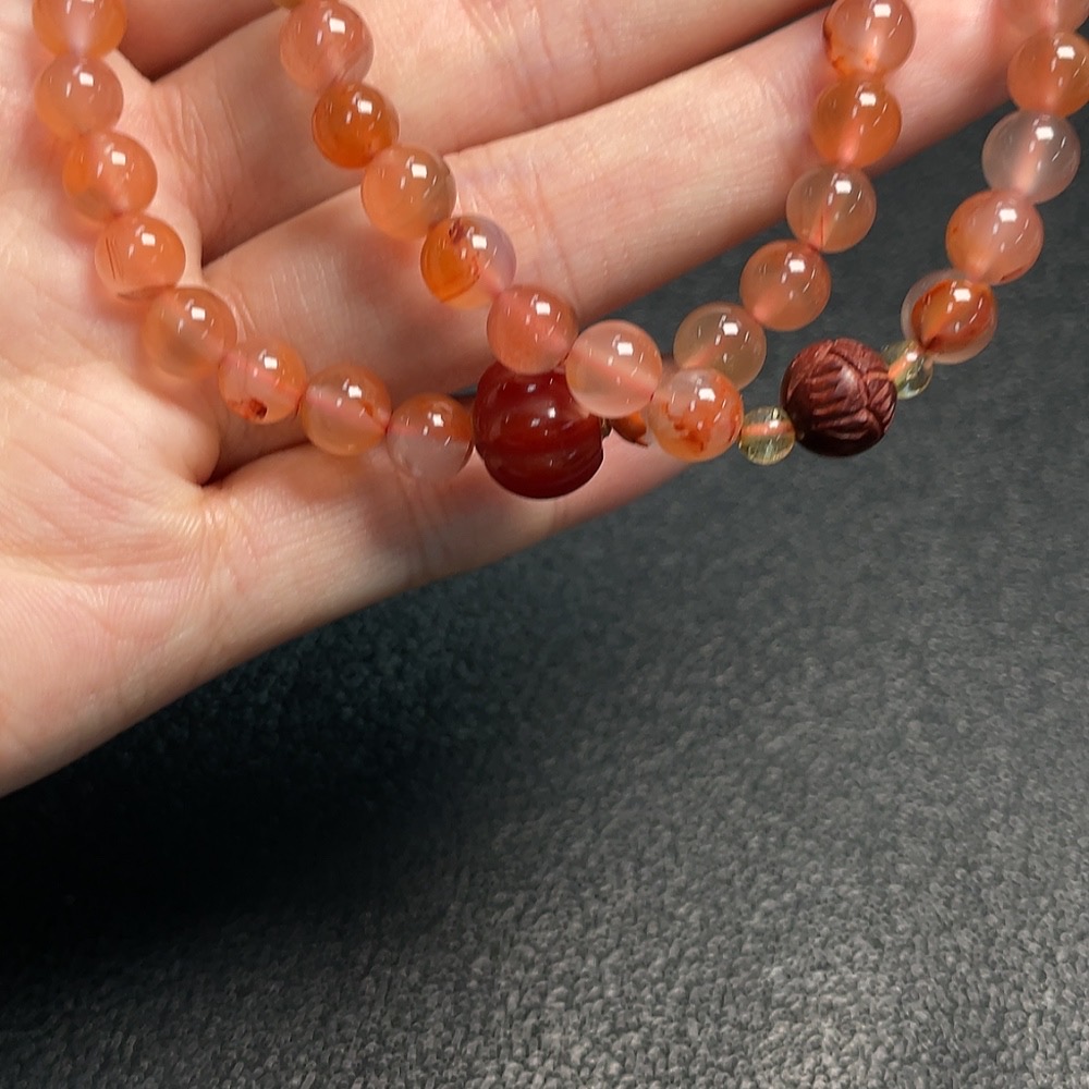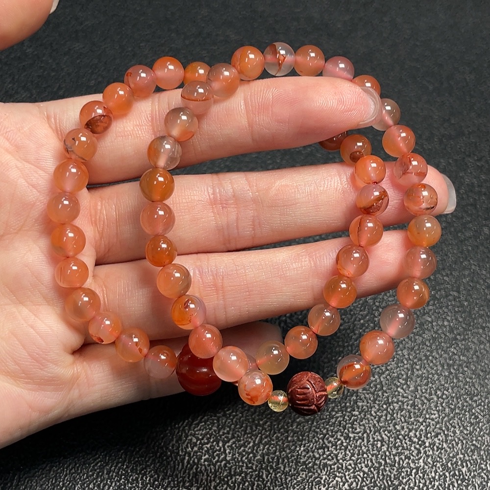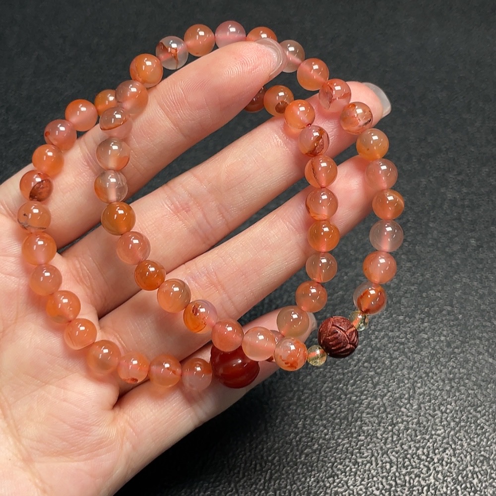 Red Agate Bracelet with Visible Organic Matter, Non-Gold, Total Weight Approx. 25.6g, Sell as a Lot