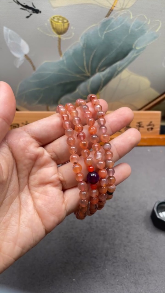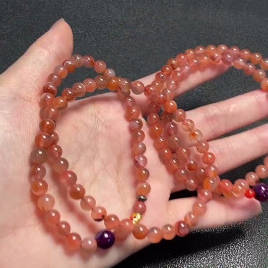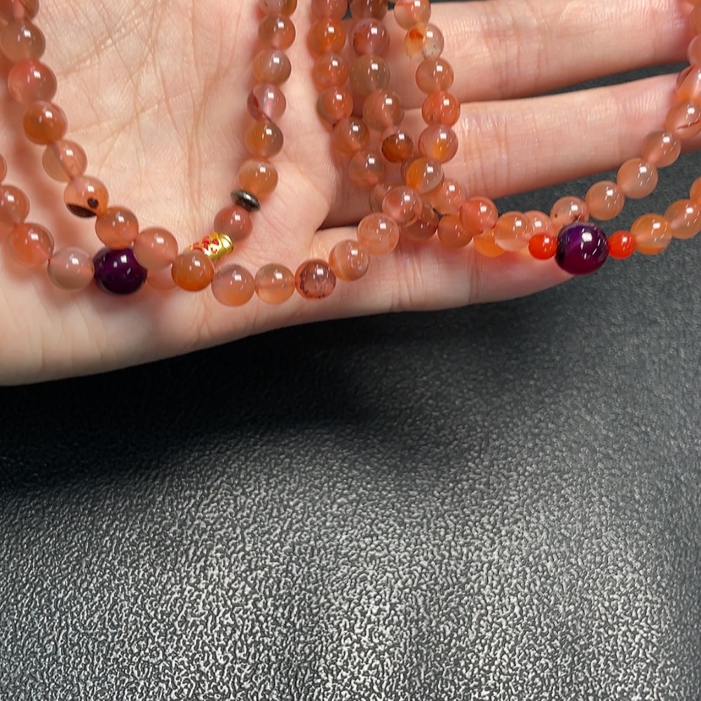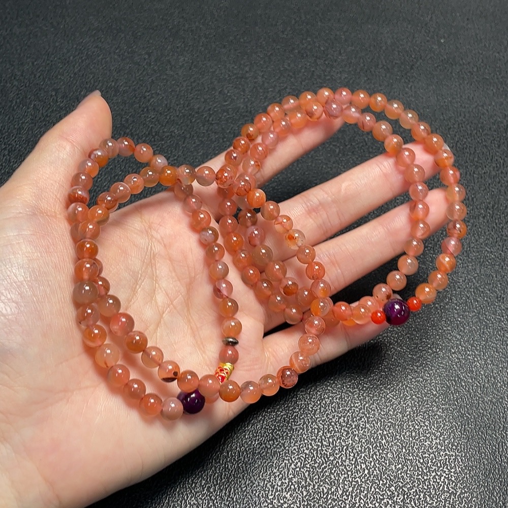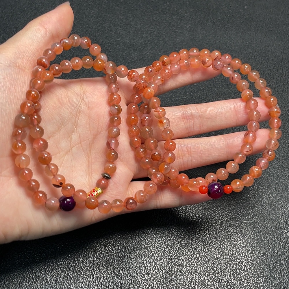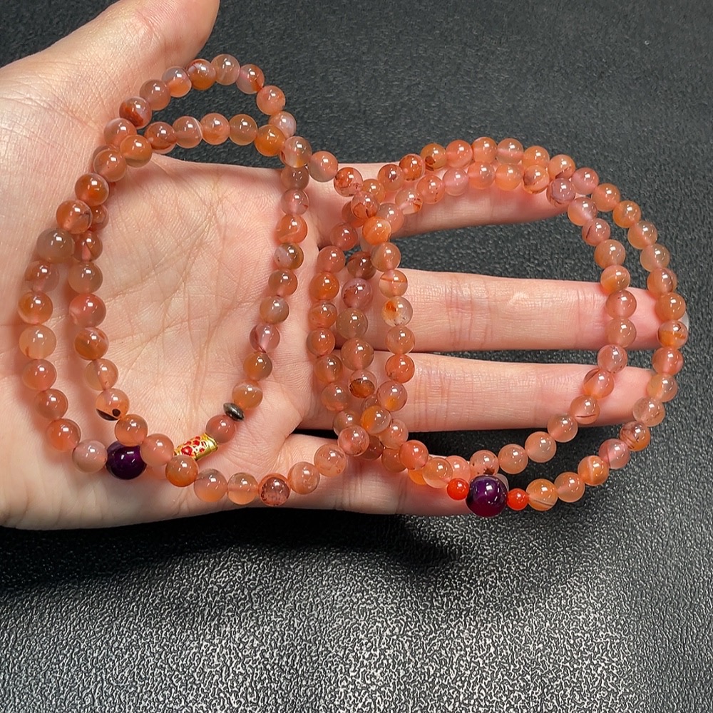 Red Agate Bead Necklace with Visible Organic Matter, Non-Natural Accent Stones, Non-Gold, Total Weight Approximately 45.3g, Sell as a Lot