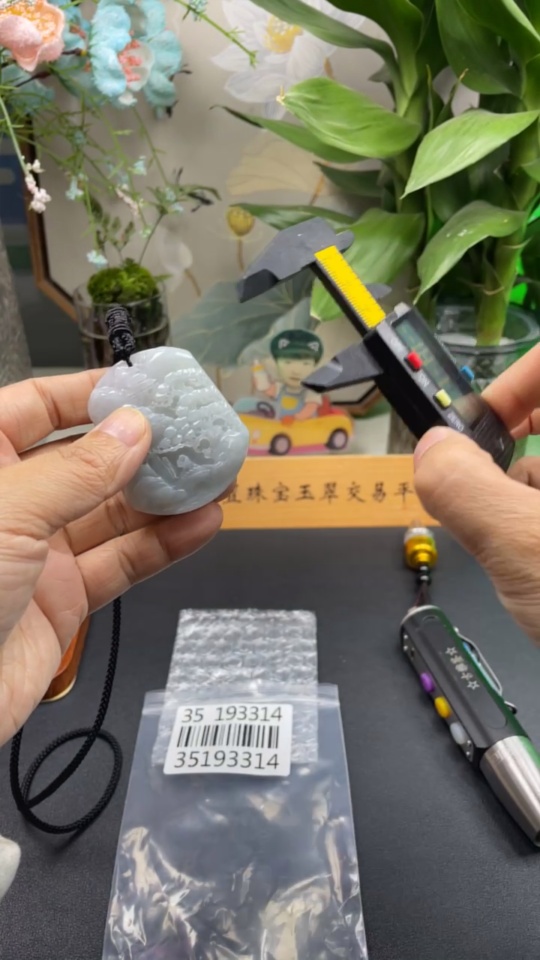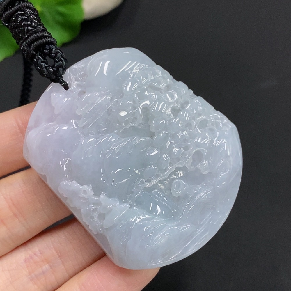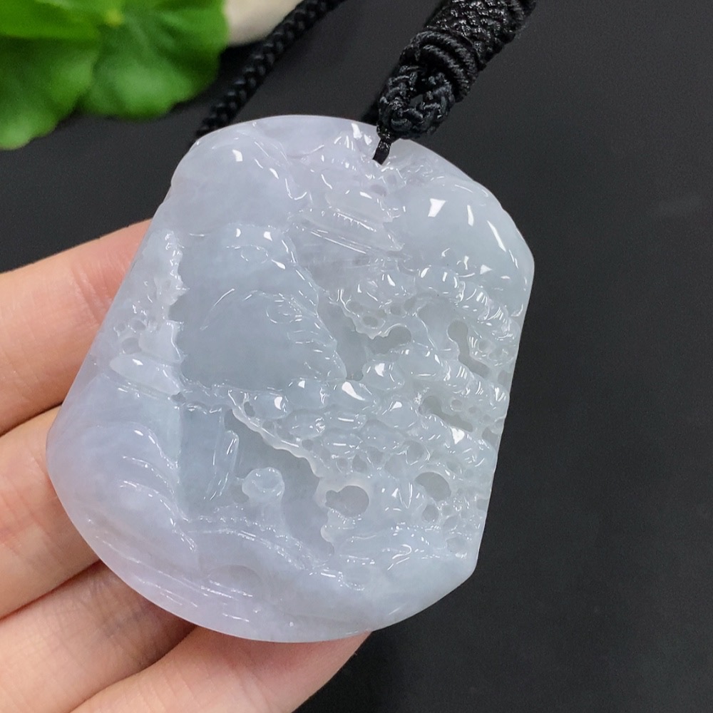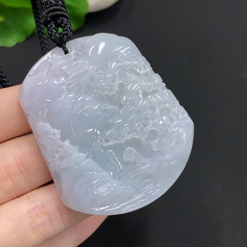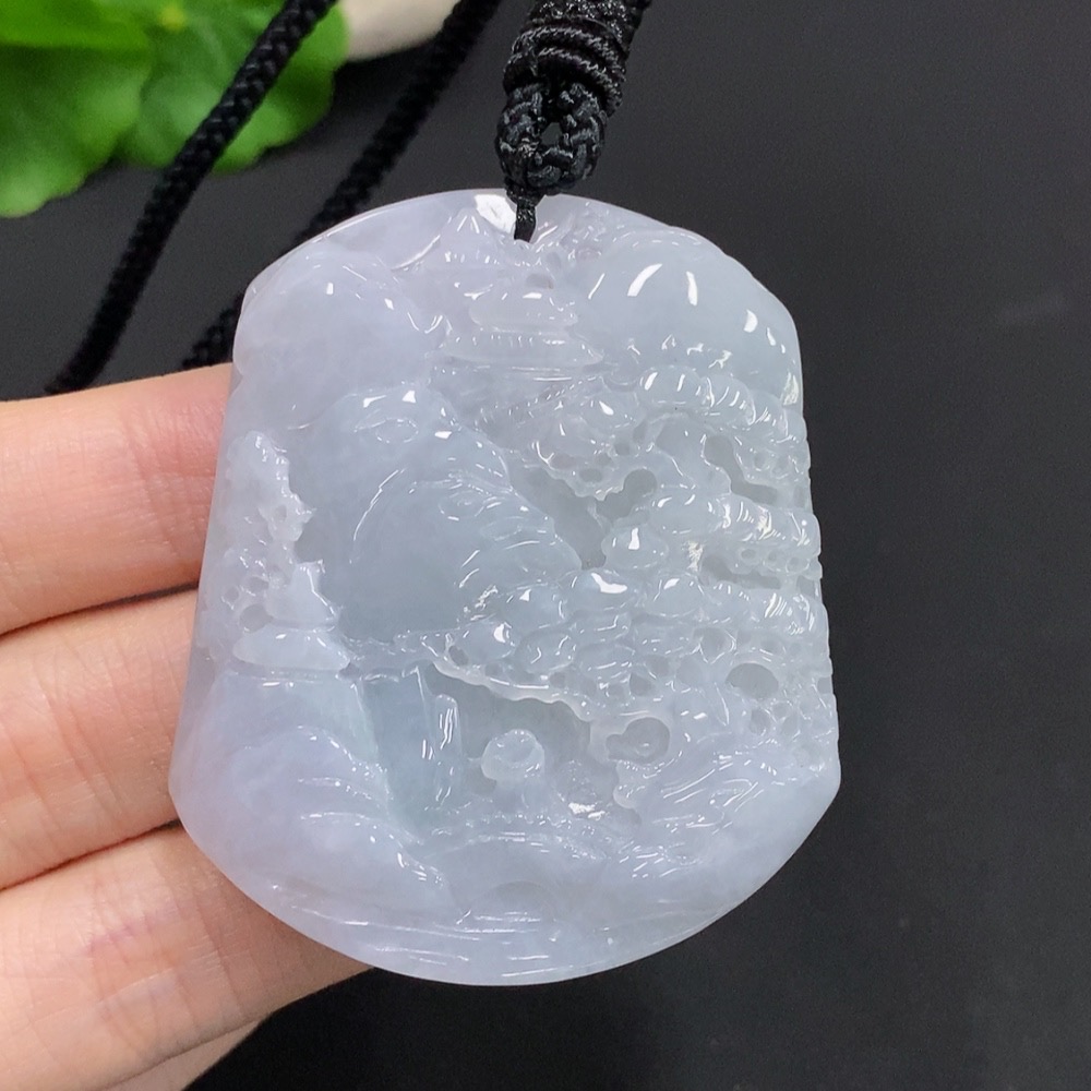 Jadeite Landscape Pendant Total Weight Approx. 67.3g (including rope weight)