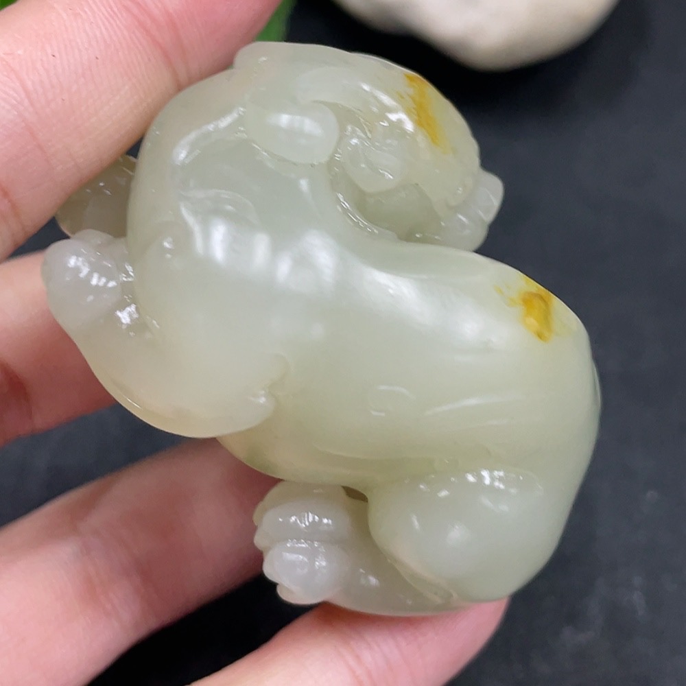 Trezaar - Hetian Jade Handheld Piece Pi Xiu Undetermined Skin Color Origin Total Weight Approx. 95.7g