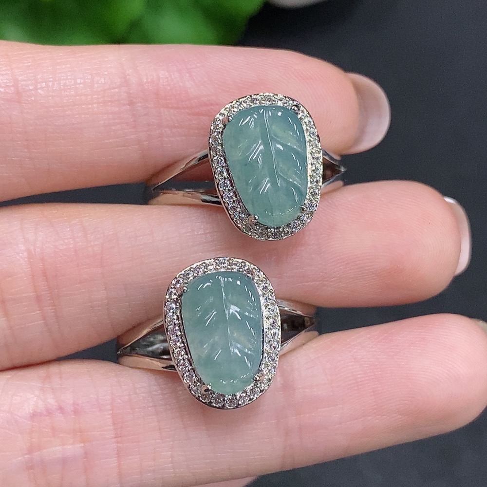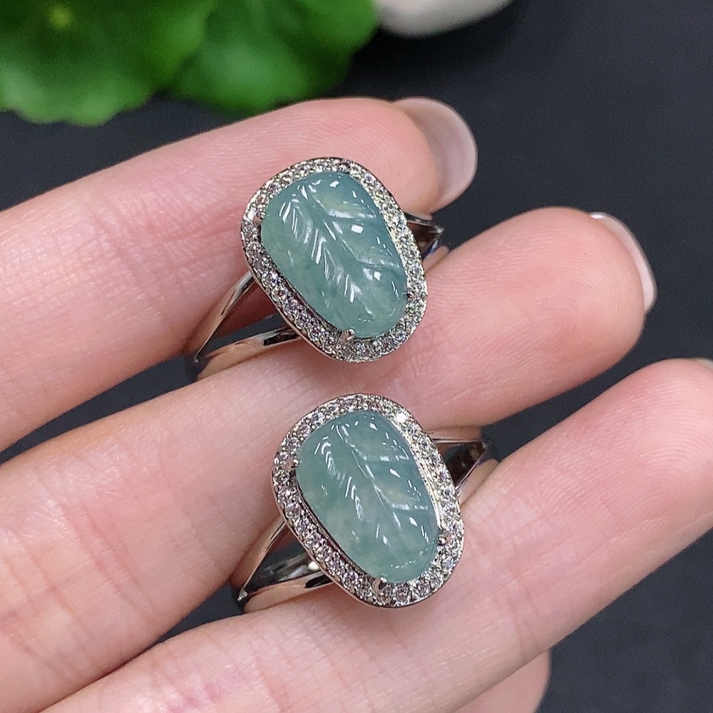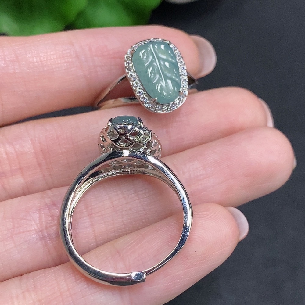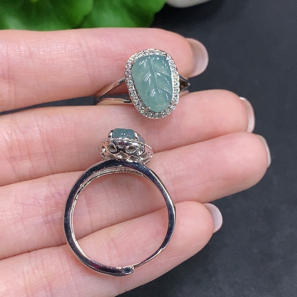 Jadeite Inlaid Ring Sell as a Lot Non-Gold Inlay Adjustable Size