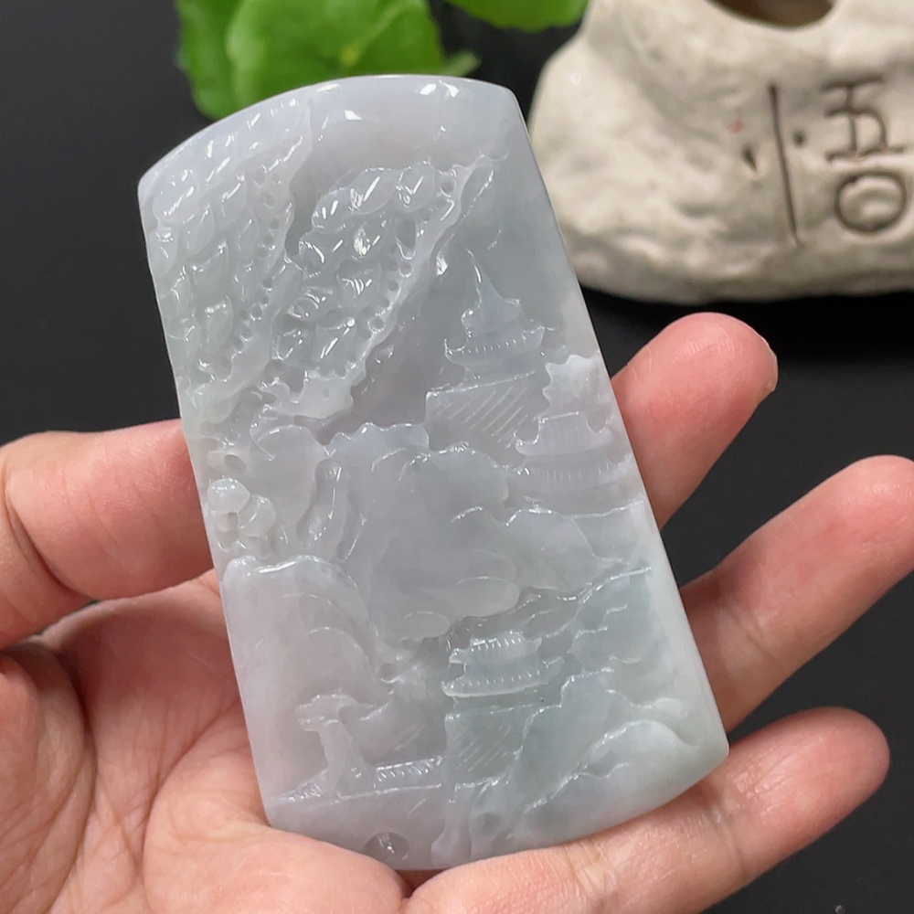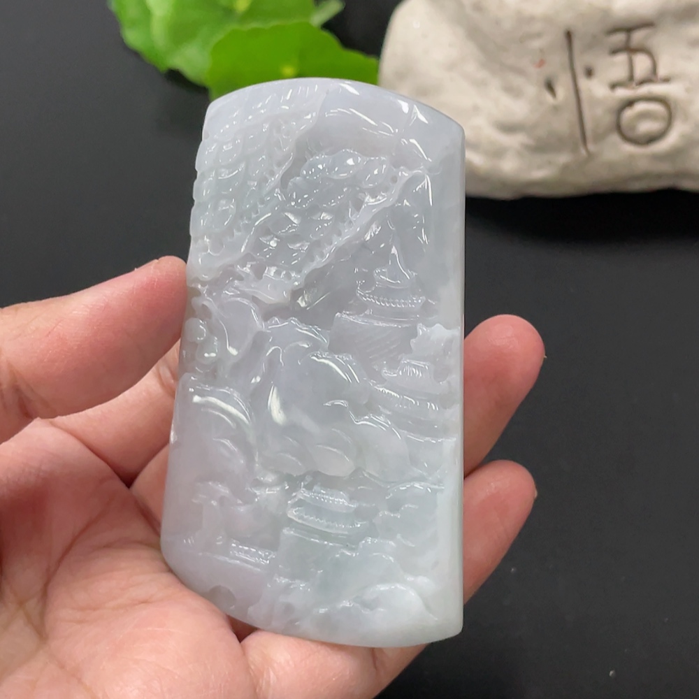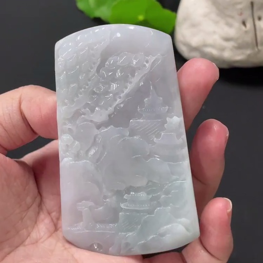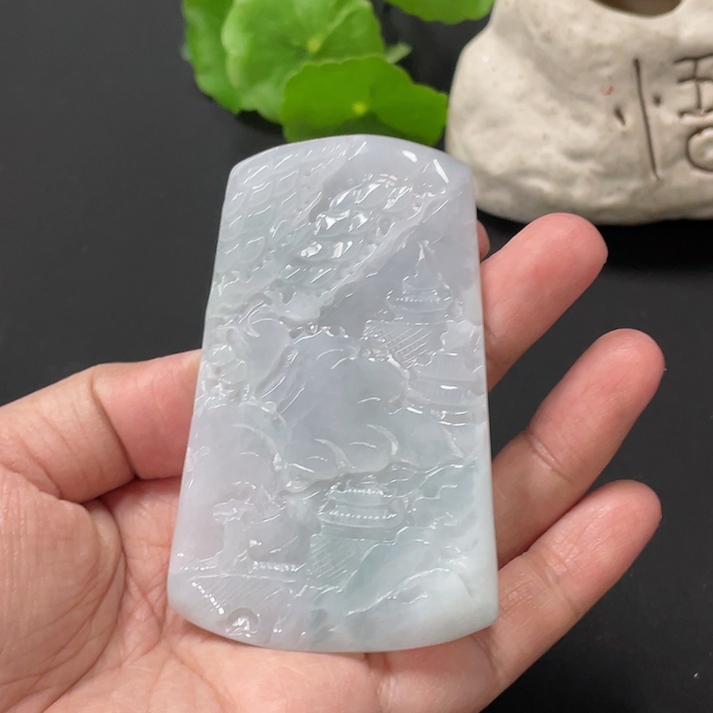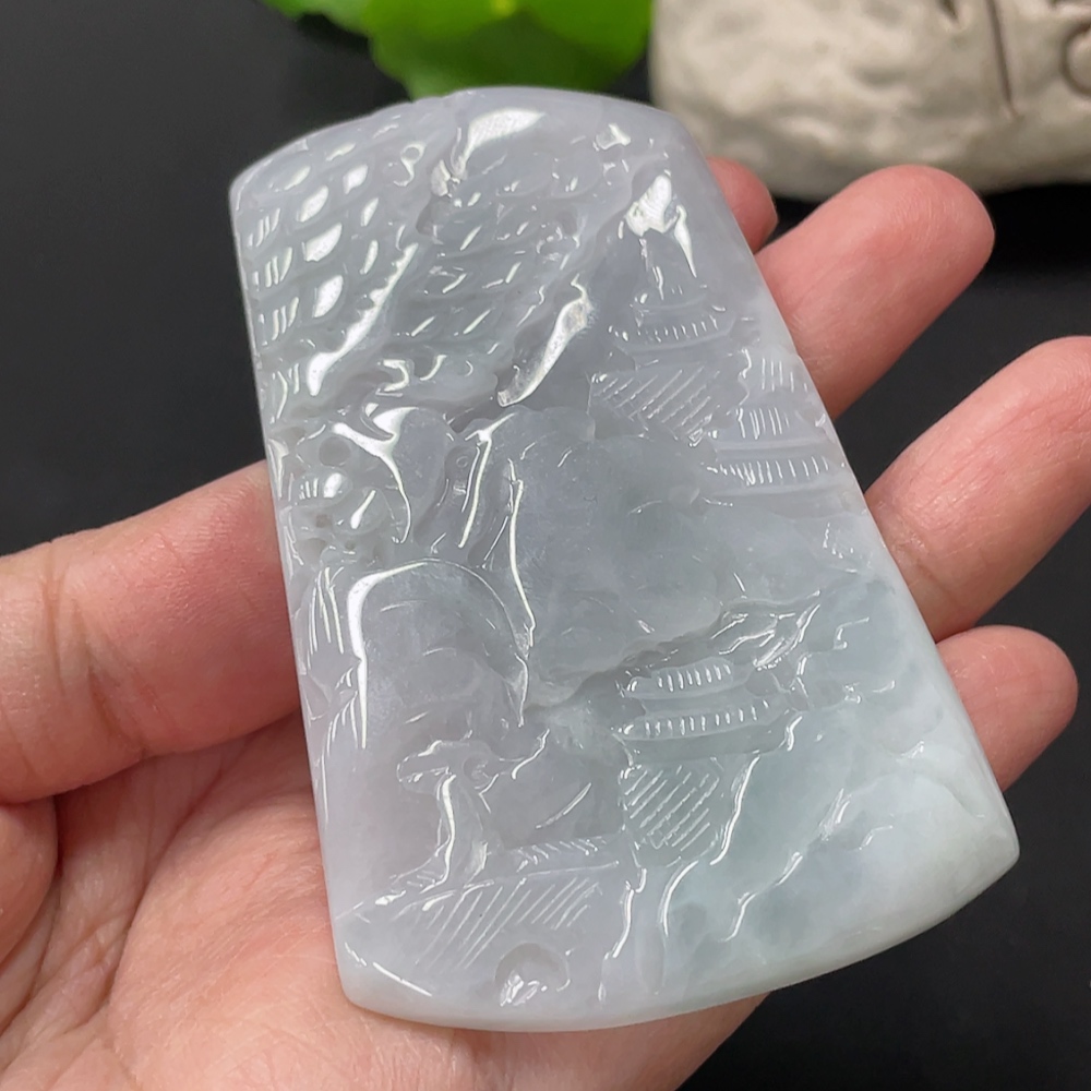 Jadeite Landscape Pendant, Total Weight Approximately 52.7g