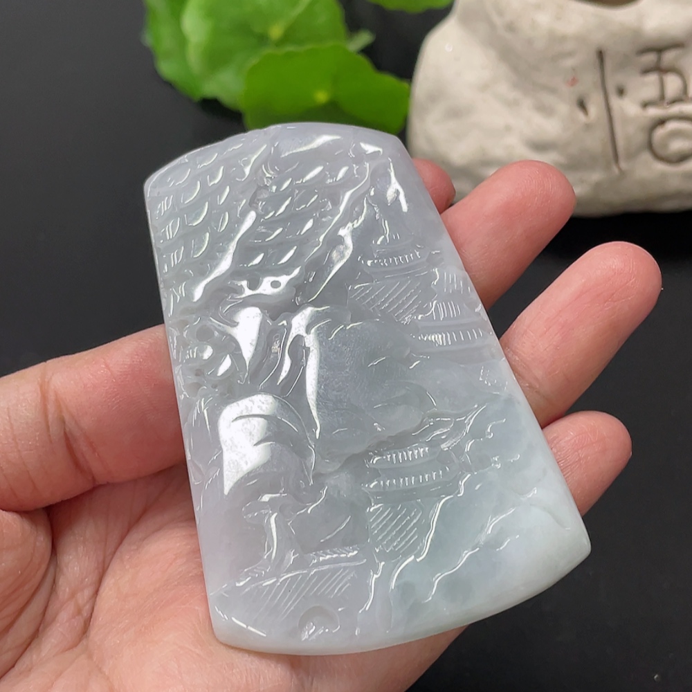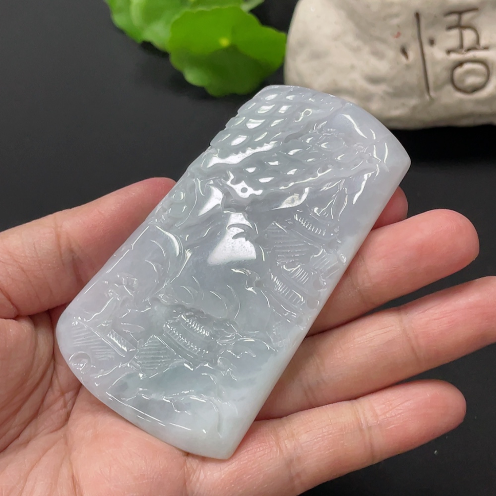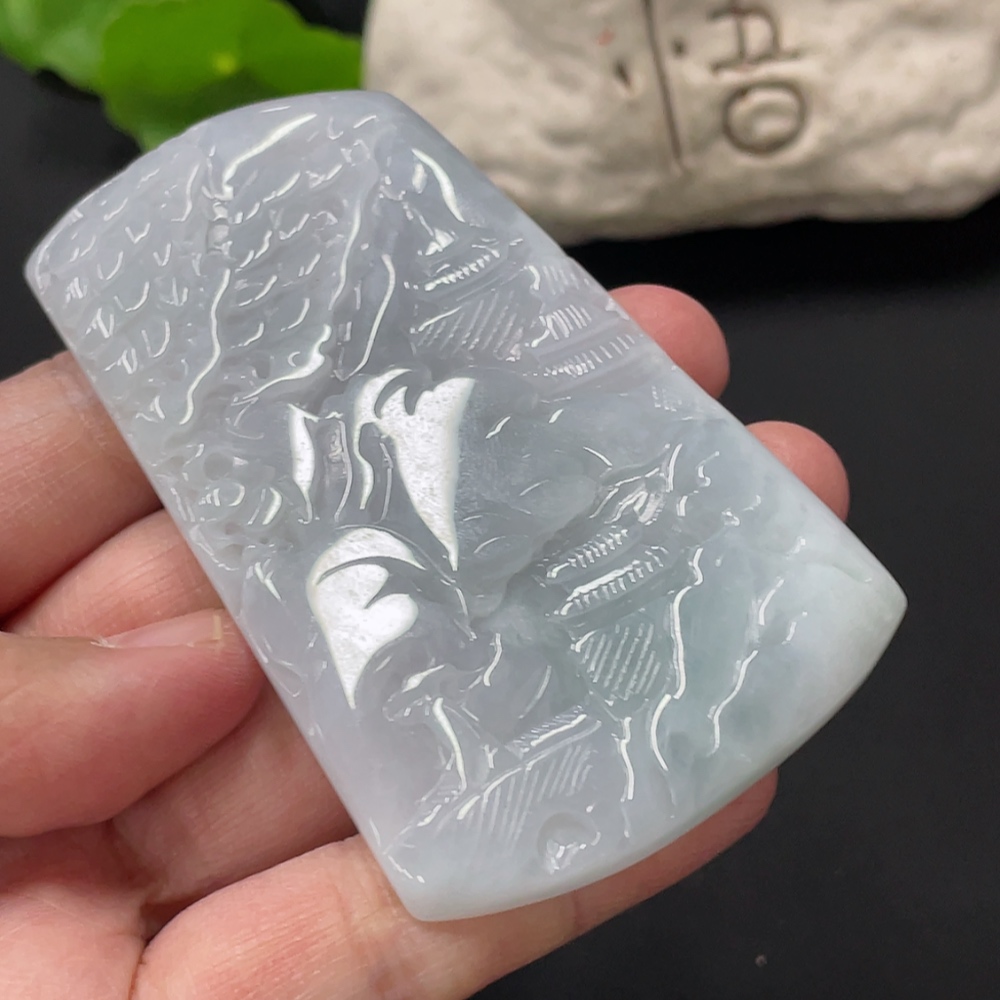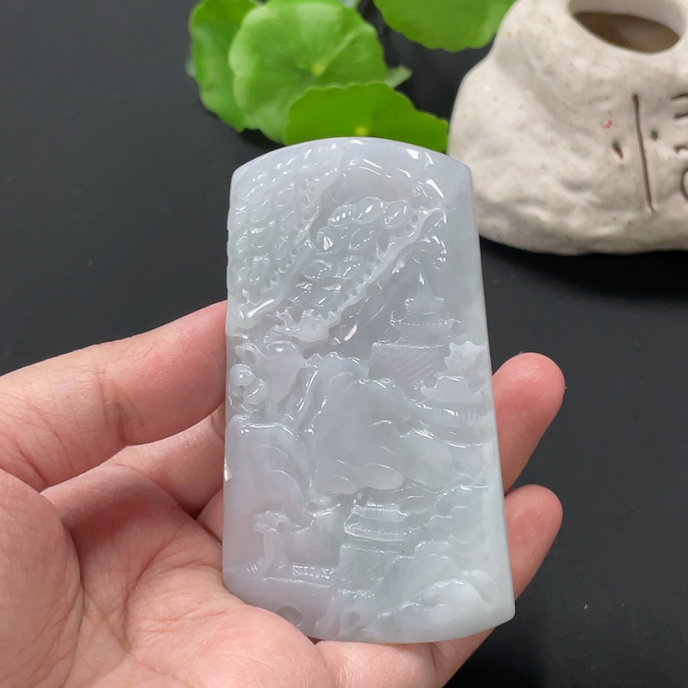 Jadeite Landscape Pendant, Total Weight Approximately 52.7g