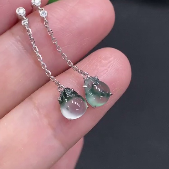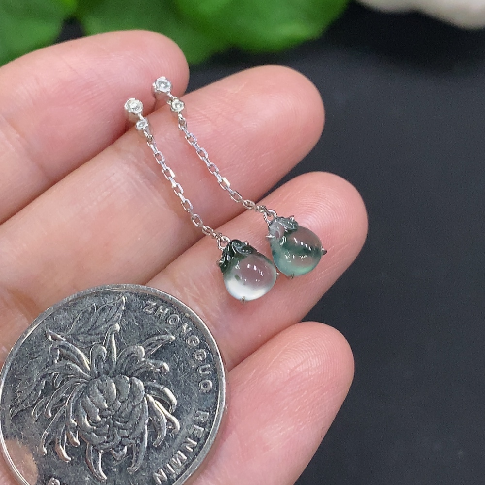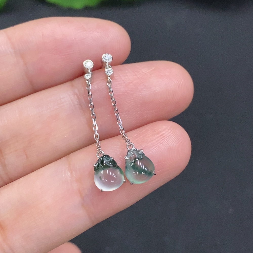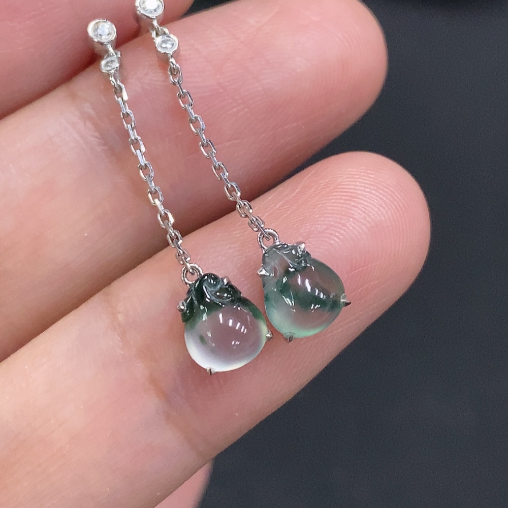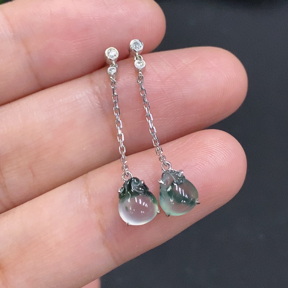 Jadeite ear studs 18K gold Total weight about 1.2g (with diamond accents)