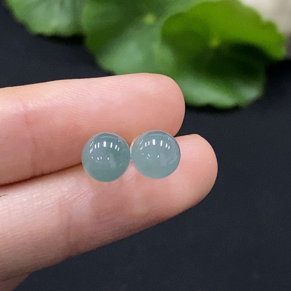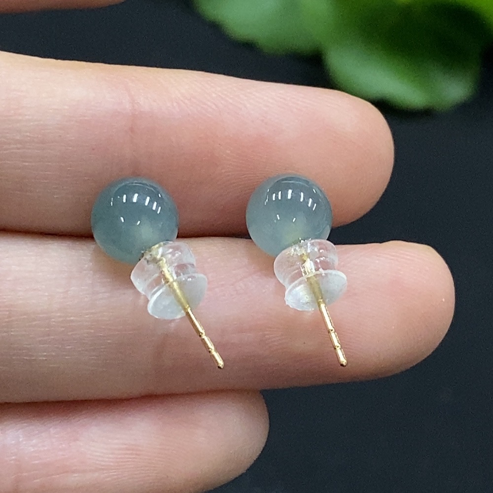 Jadeite Bead Inlaid Earrings 18K Gold Total Weight Approx. 1.35g with Ear Studs