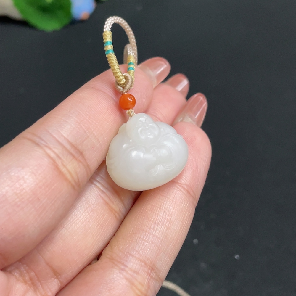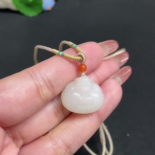 Hetian Jade Pendant Buddha Total Weight (with rope) 8.4g
