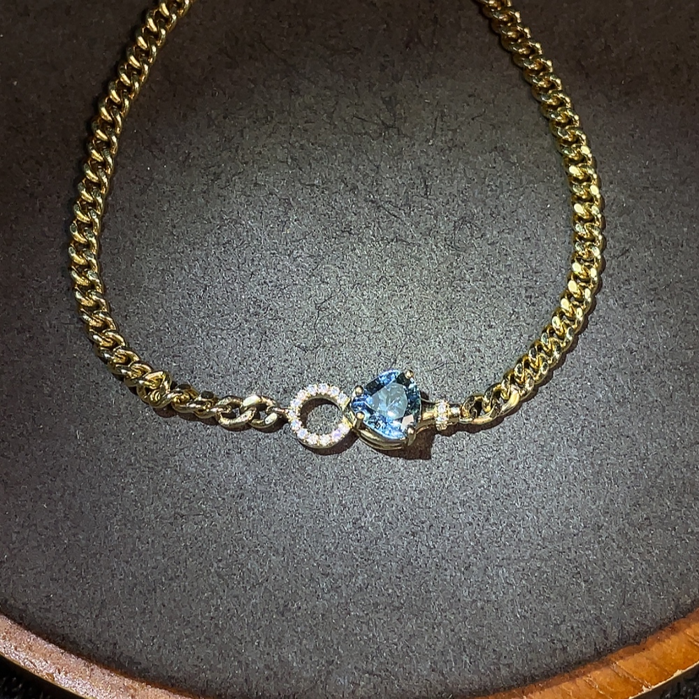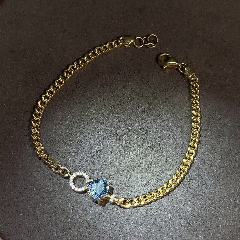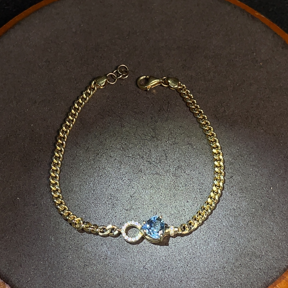Aquamarine Bracelet 37% Gold Content Non-Diamond Total Weight Approx. 3.38g