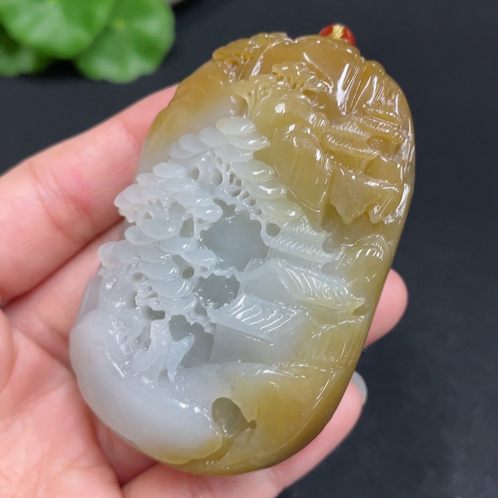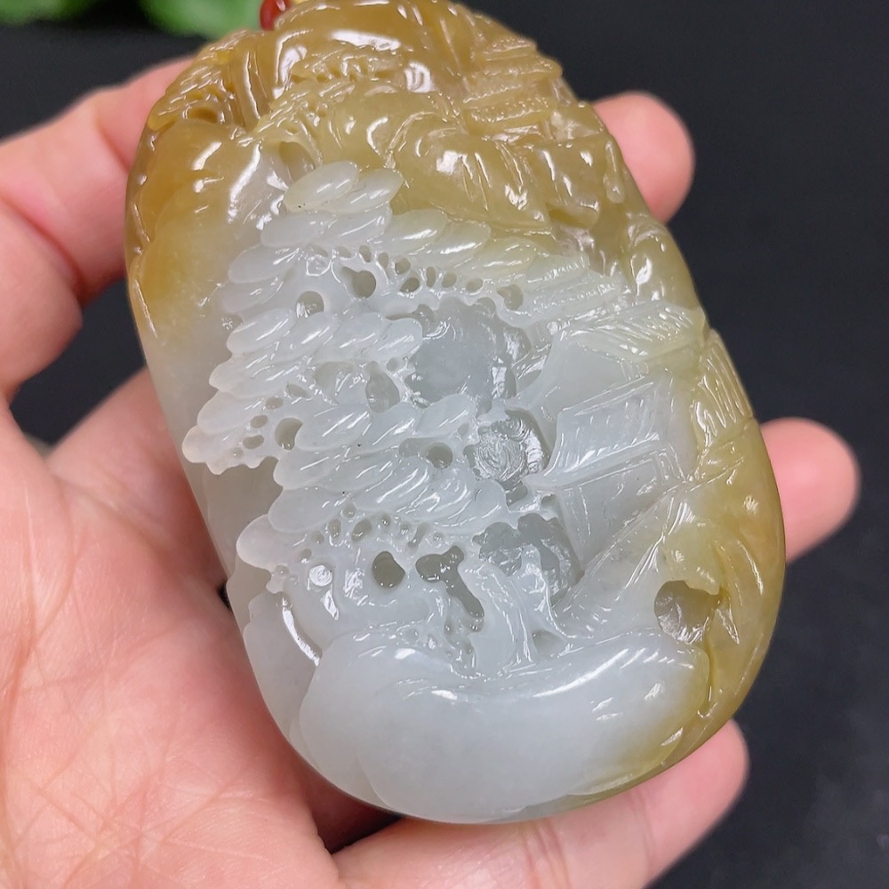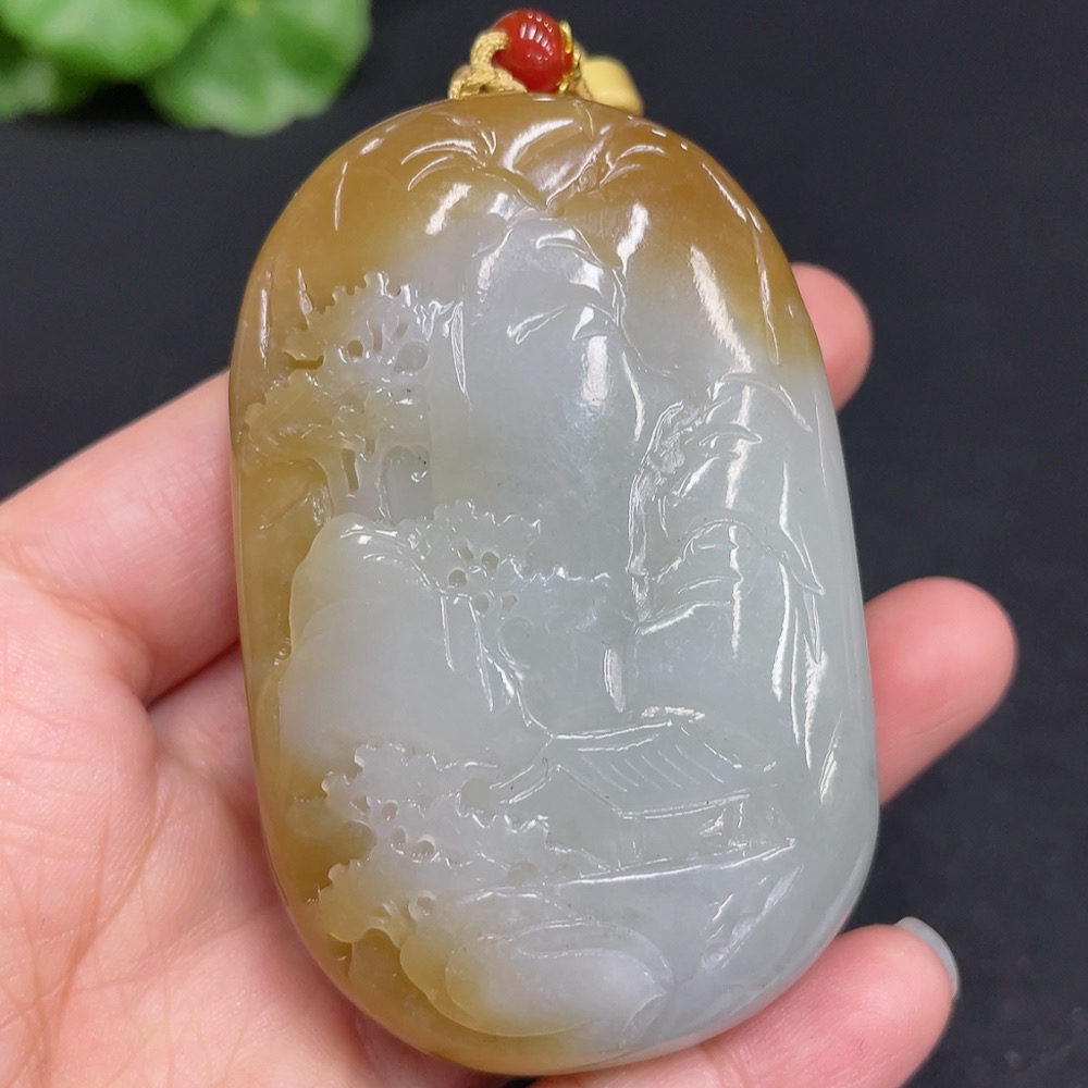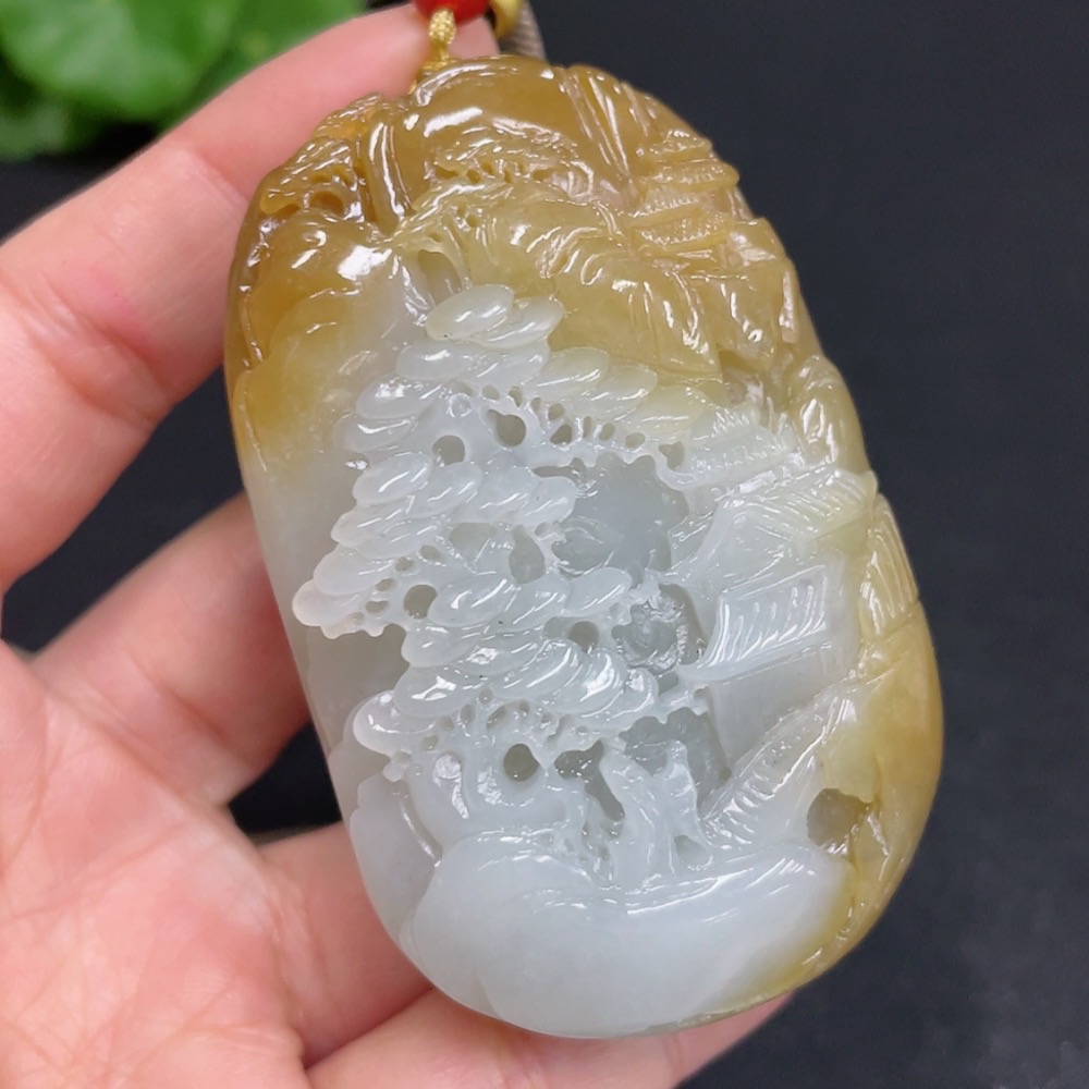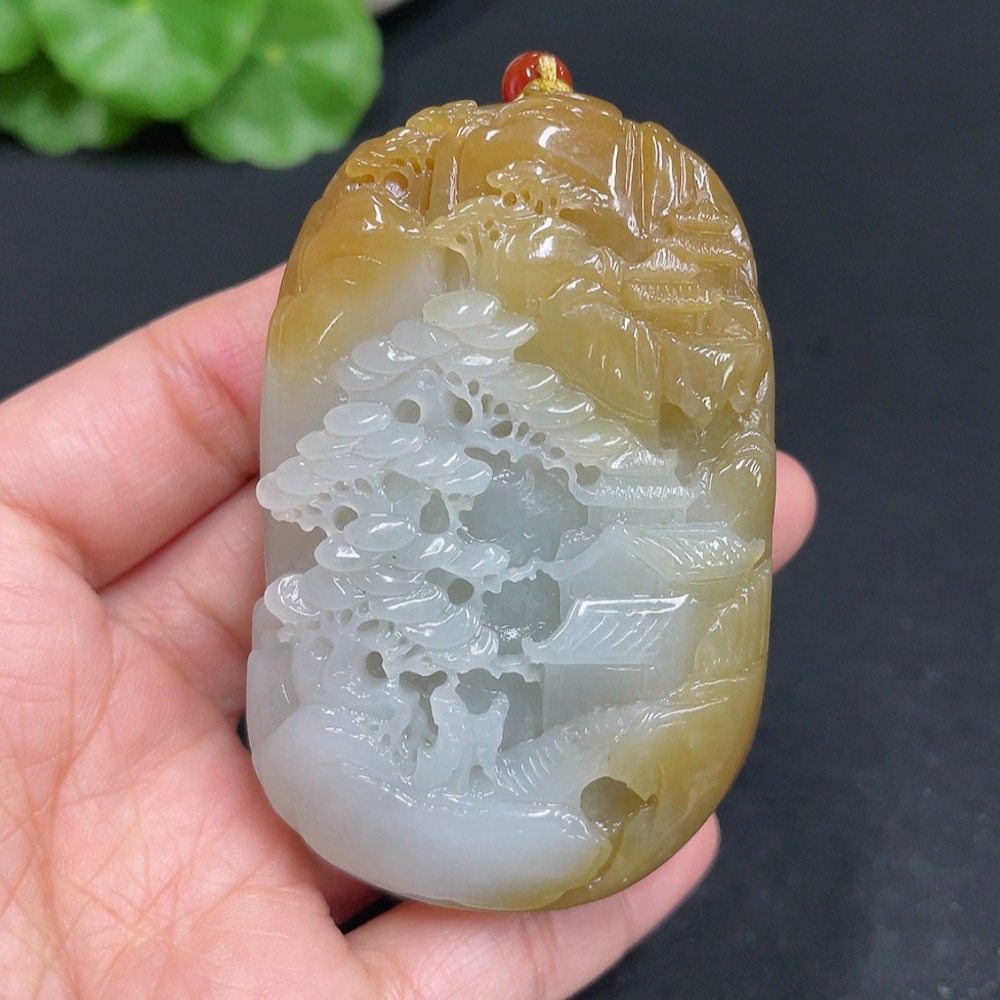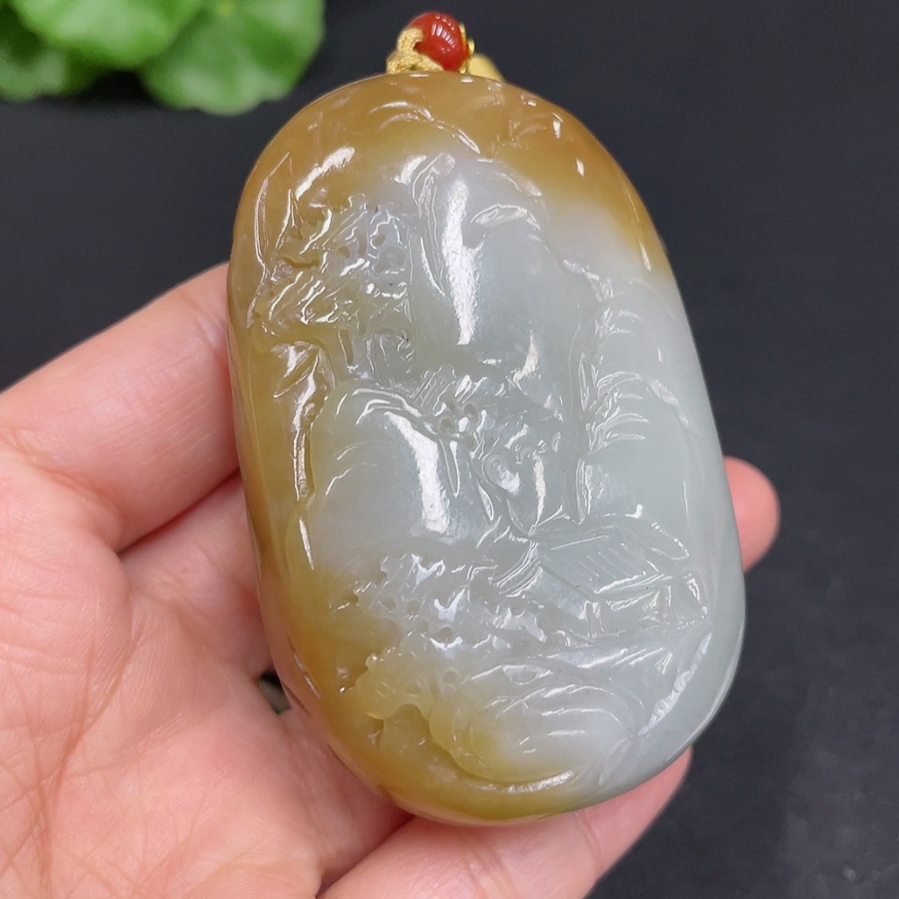 Hetian Jade Pendant Landscape Total Weight (including rope) 106.8g