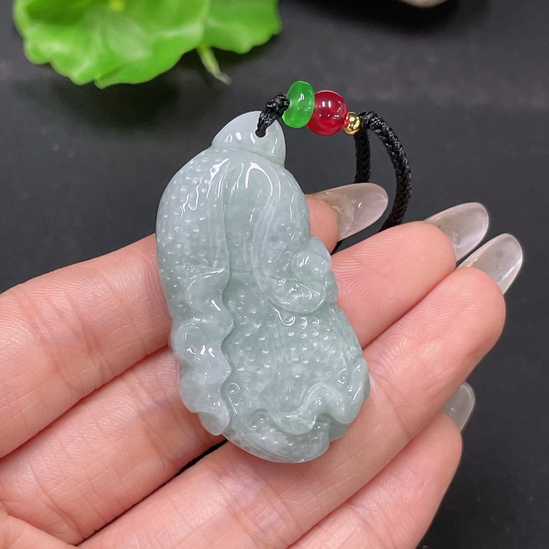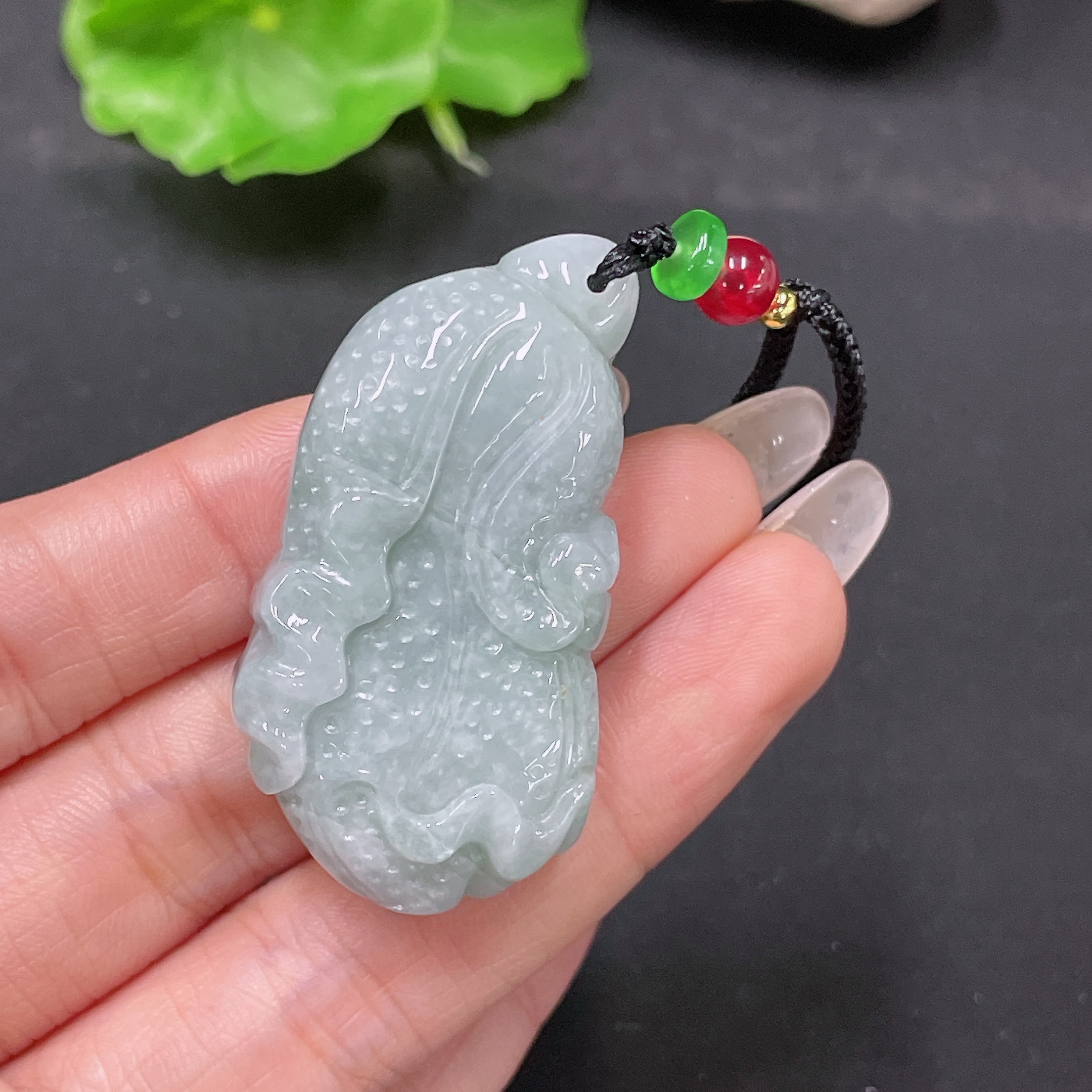 Jadeite Pendant Cabbage with Non-A Grade Beads Including Rope Total Weight Approx. 32.23g