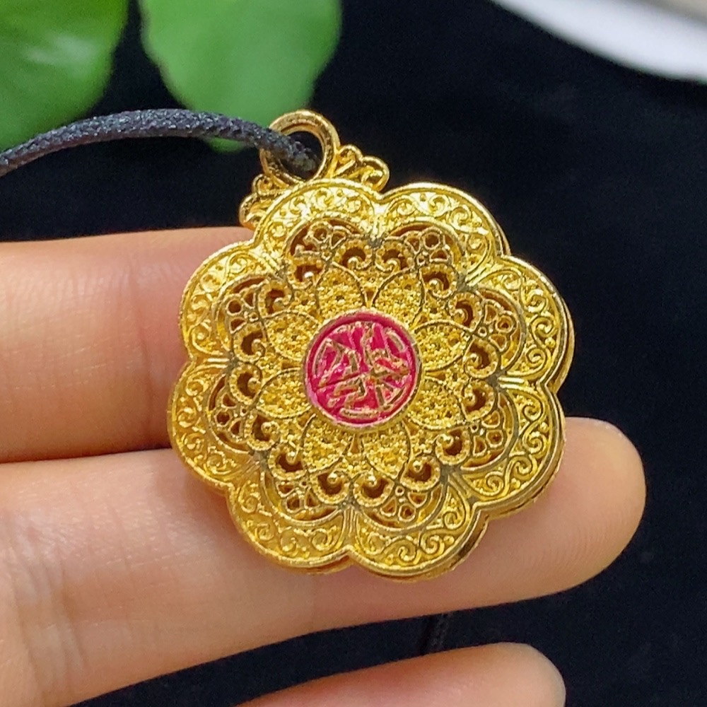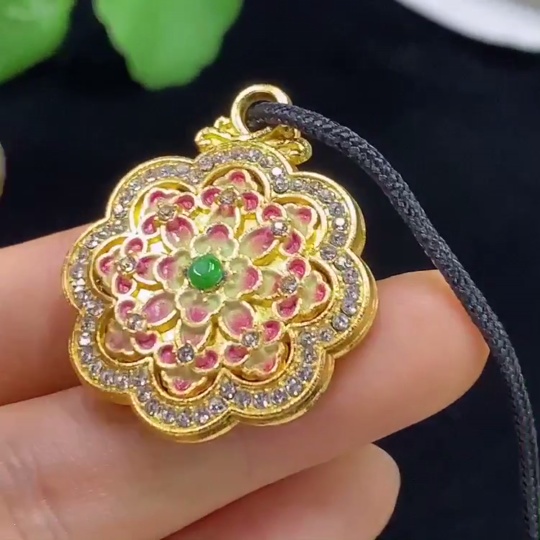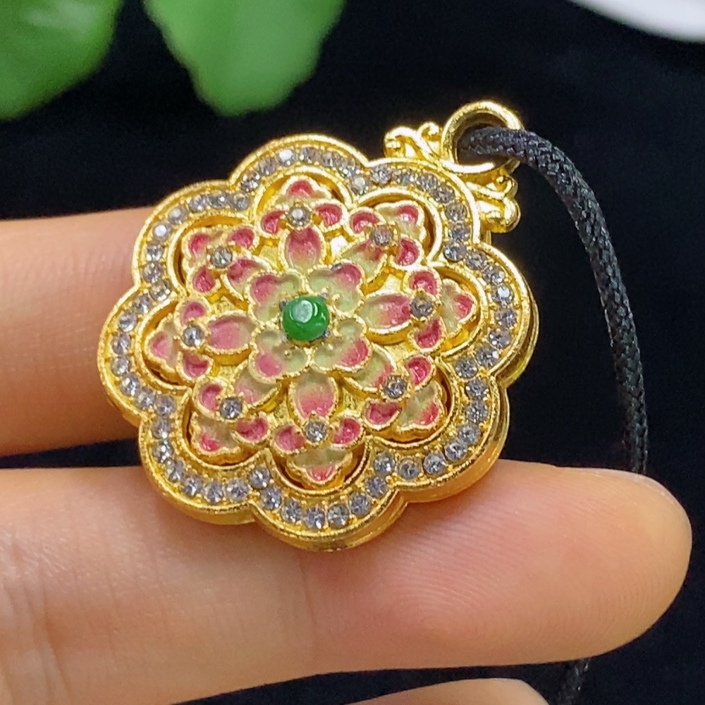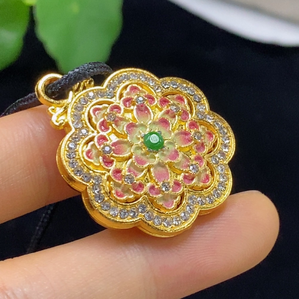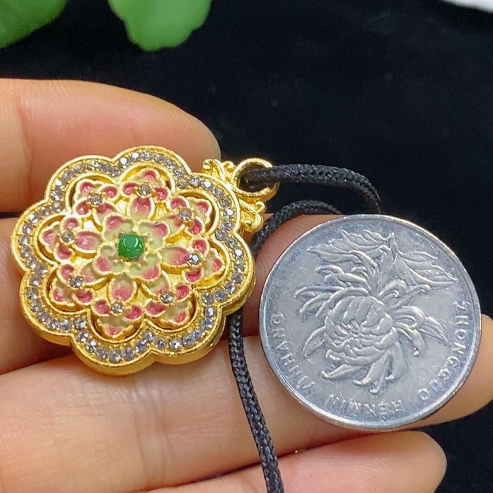 Jadeite Cabochon Inlaid Pendant Non-Gold Total Weight Approx. 8g (Including Cord Weight)