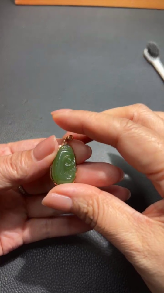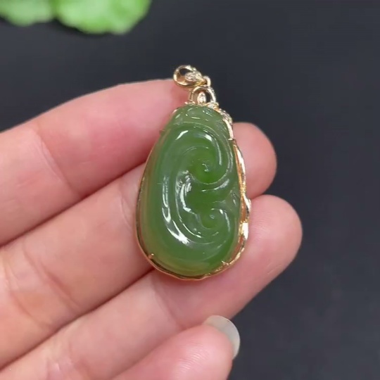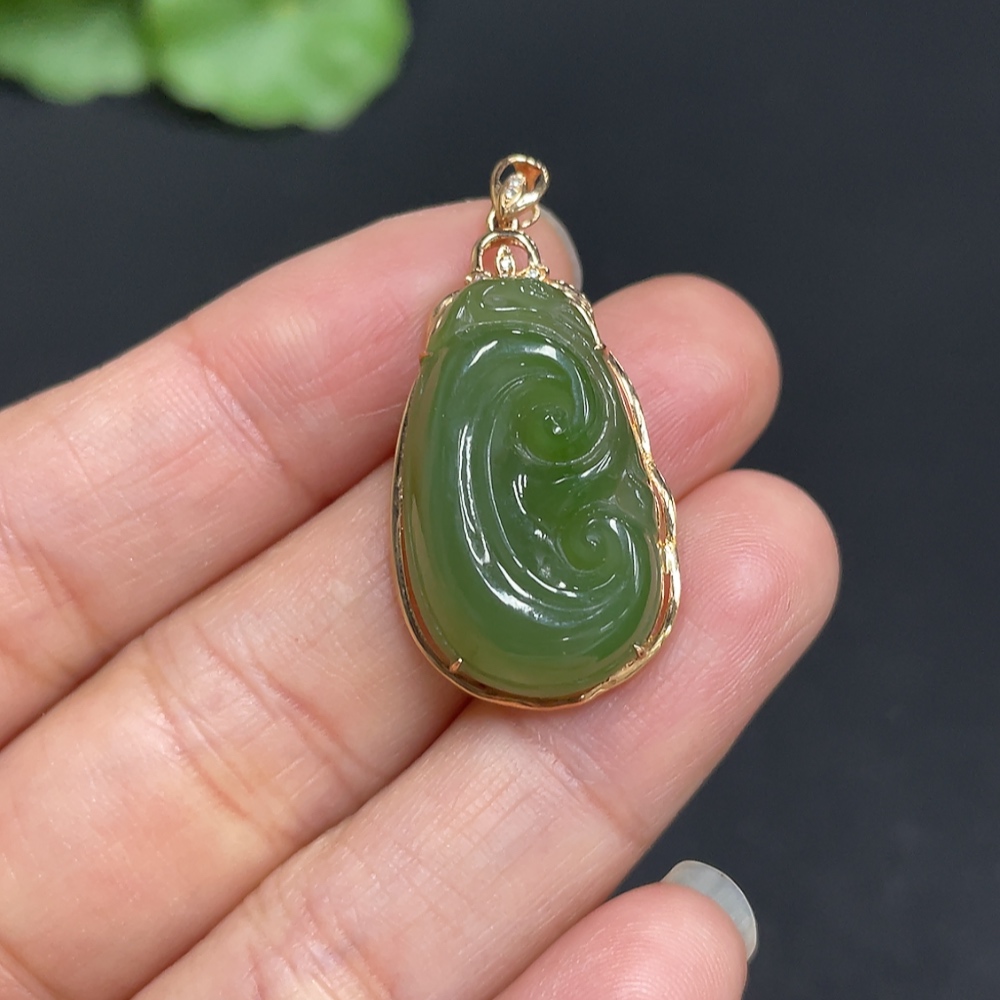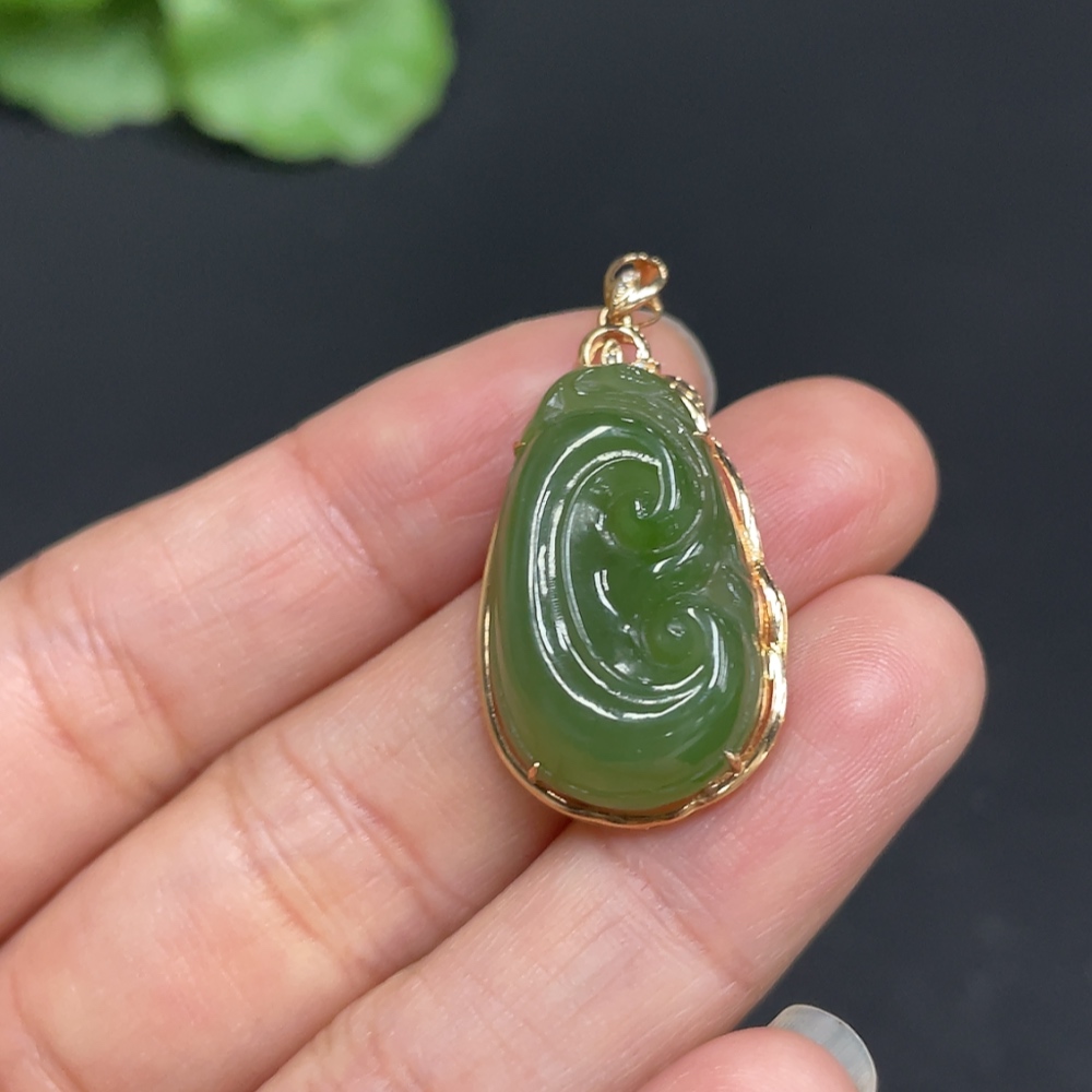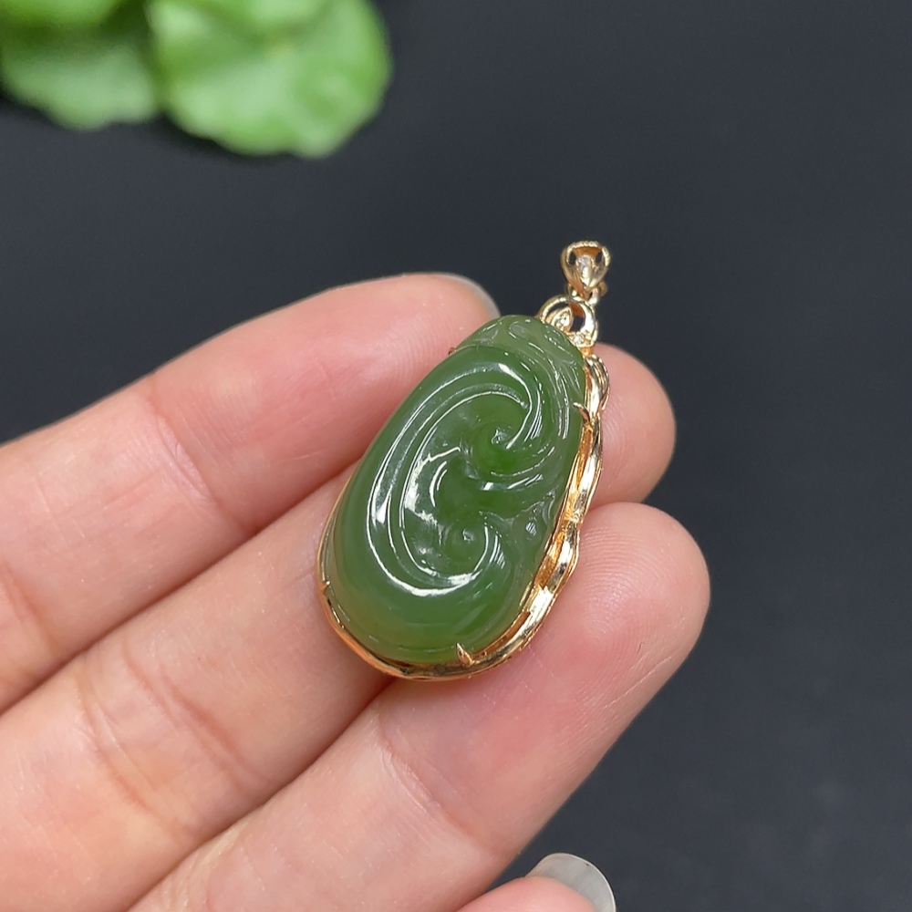 Hetian Jade Jasper Inlaid with Ruyi Design 18K Gold, Total Weight Approx. 3.5g, Accented with Diamonds