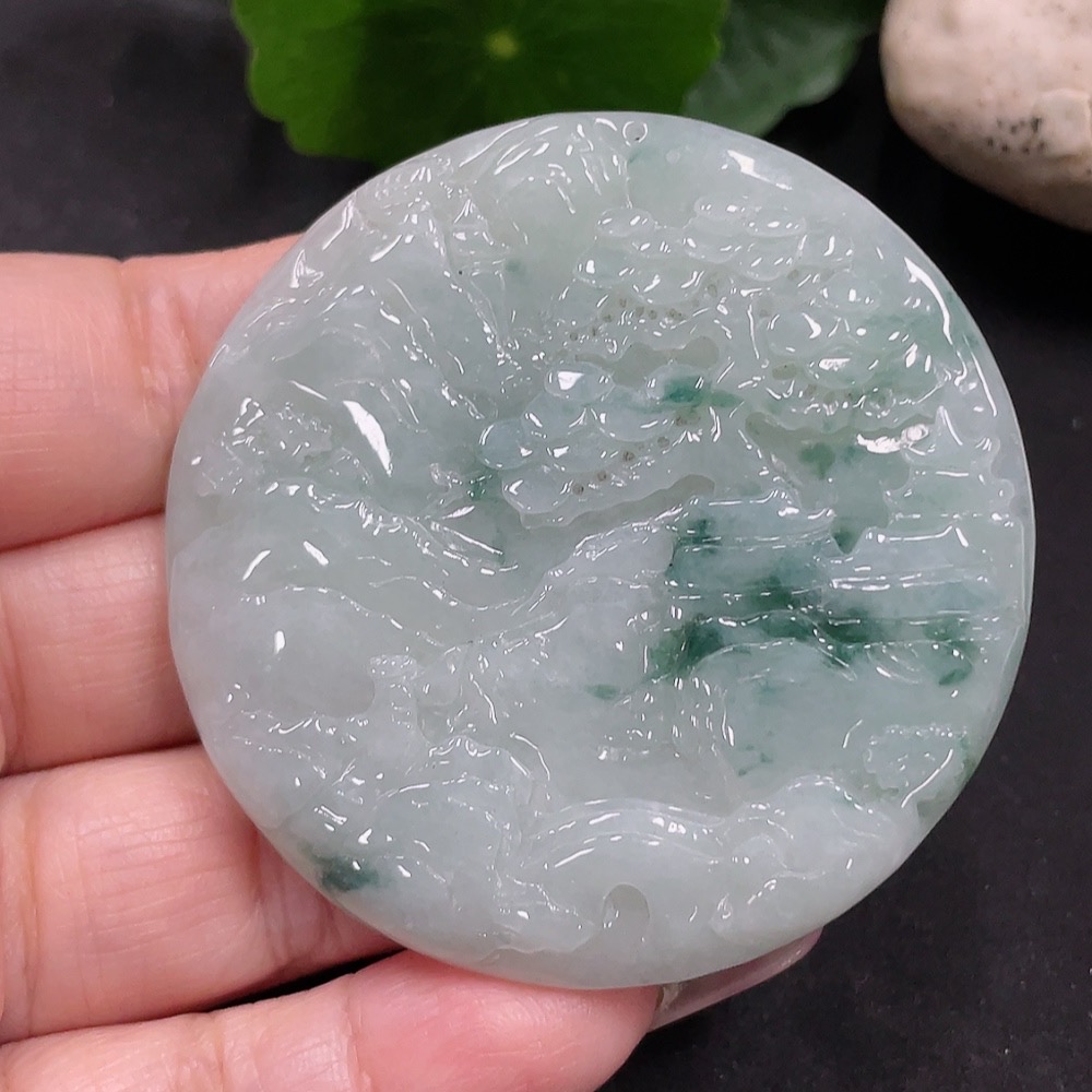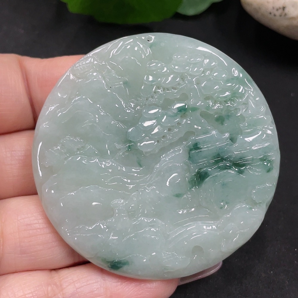 Jadeite Landscape Pendant Total Weight Approx. 33.77g