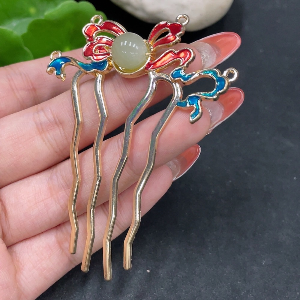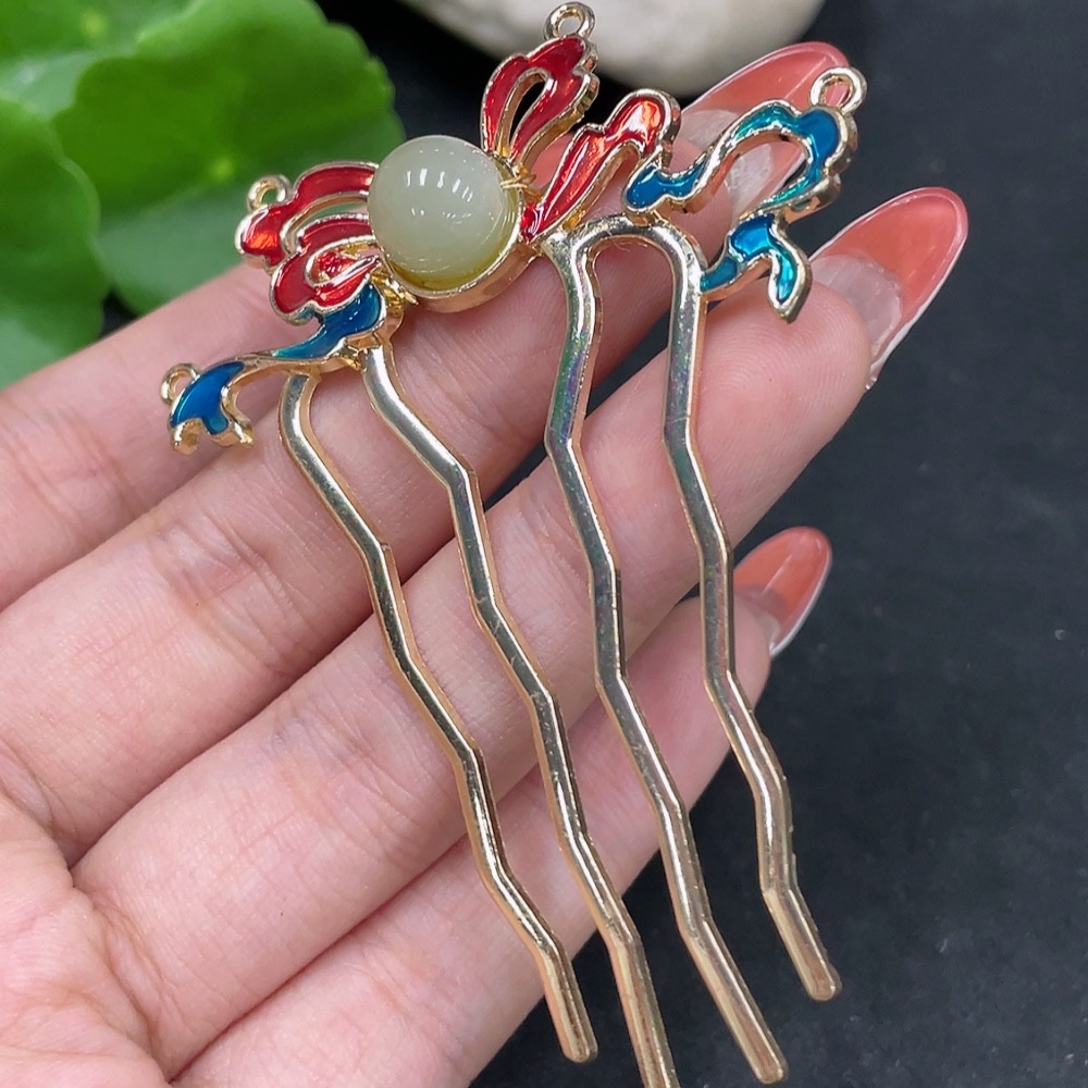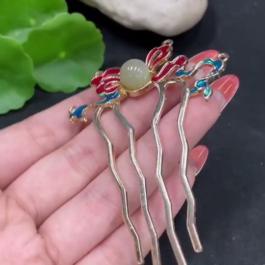 Hetian Jade Hairpin Non-Gold Total Weight Approx. 8.7g