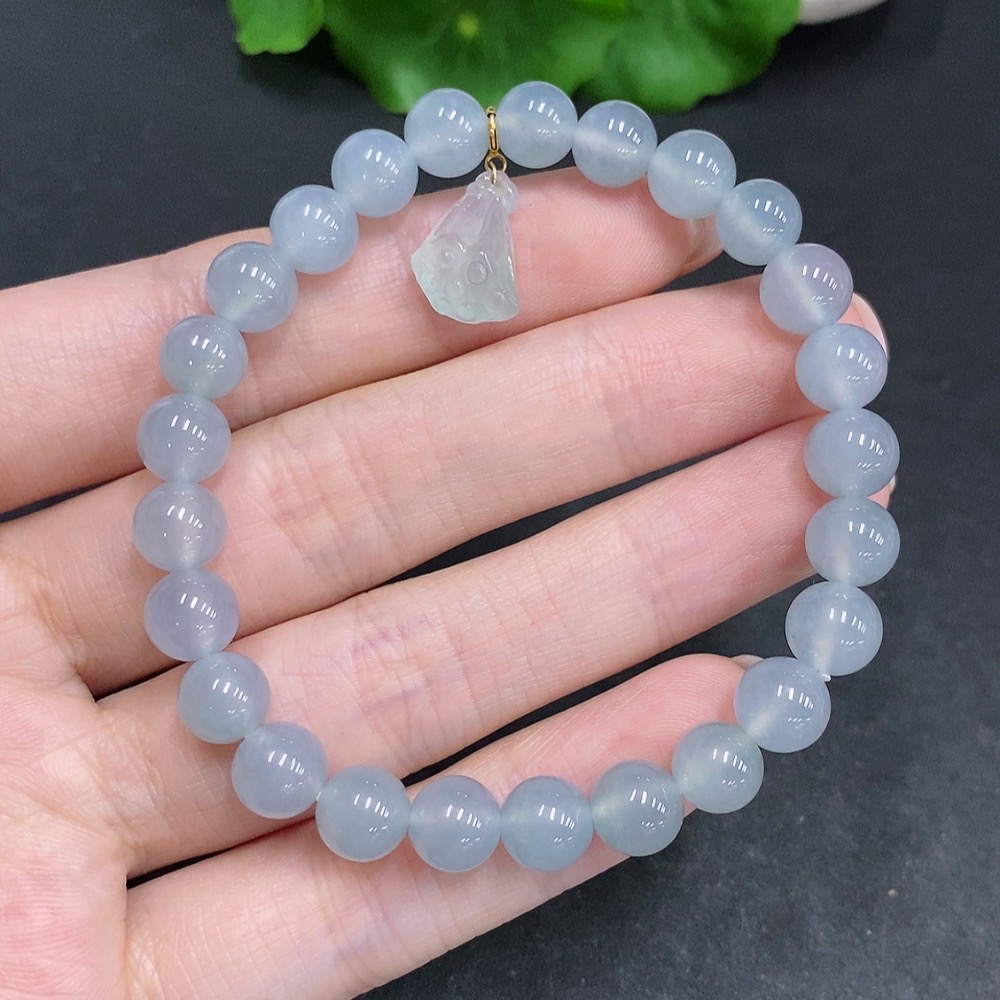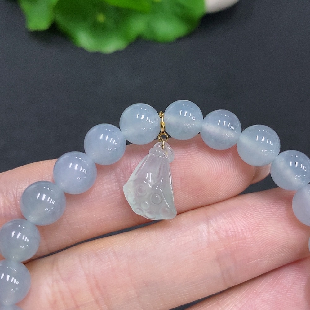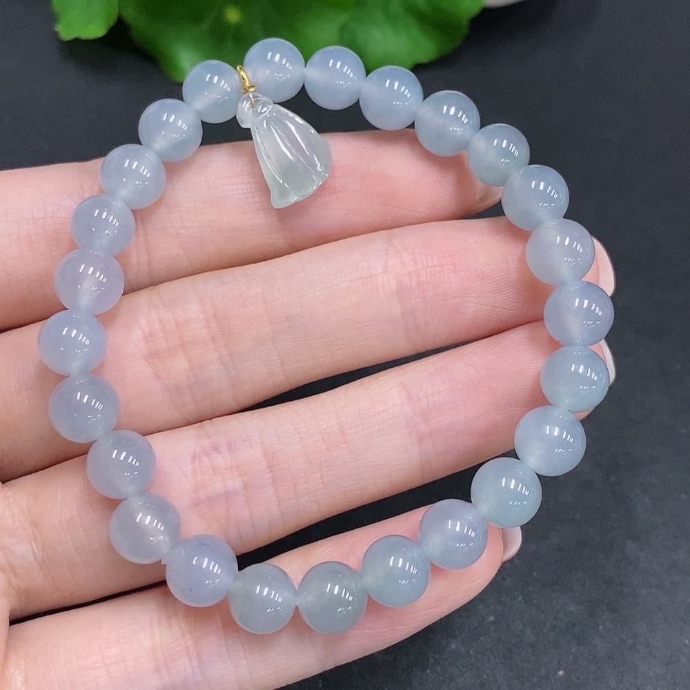 Jadeite Bracelet with 18k Gold Clasp, Total Weight Approx. 18.7g, Bead Size 7.4mm