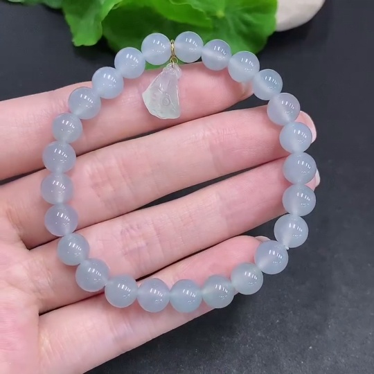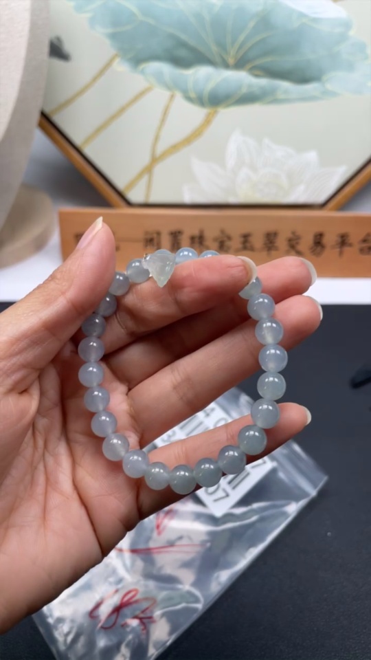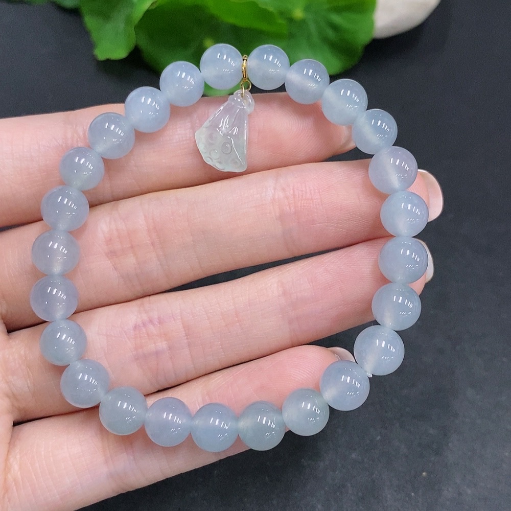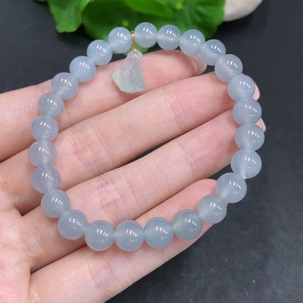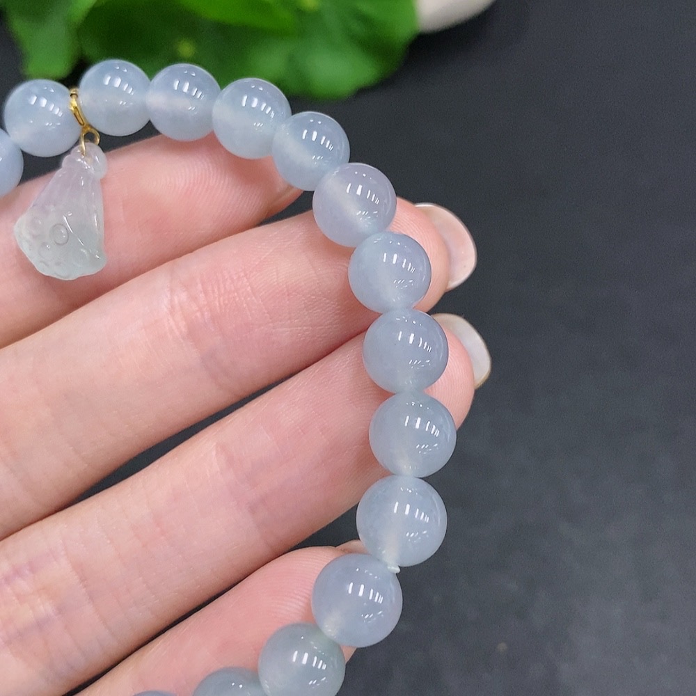 Jadeite Bracelet with 18k Gold Clasp, Total Weight Approx. 18.7g, Bead Size 7.4mm