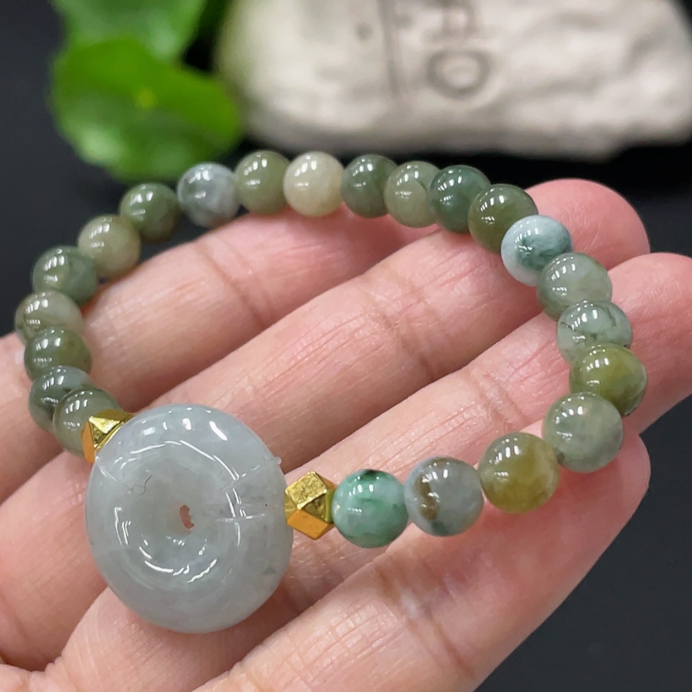 Jadeite Bracelet 6.1mm Approx. Total Weight 12.69g Non-Gold Beads Containing Other Mineral Components