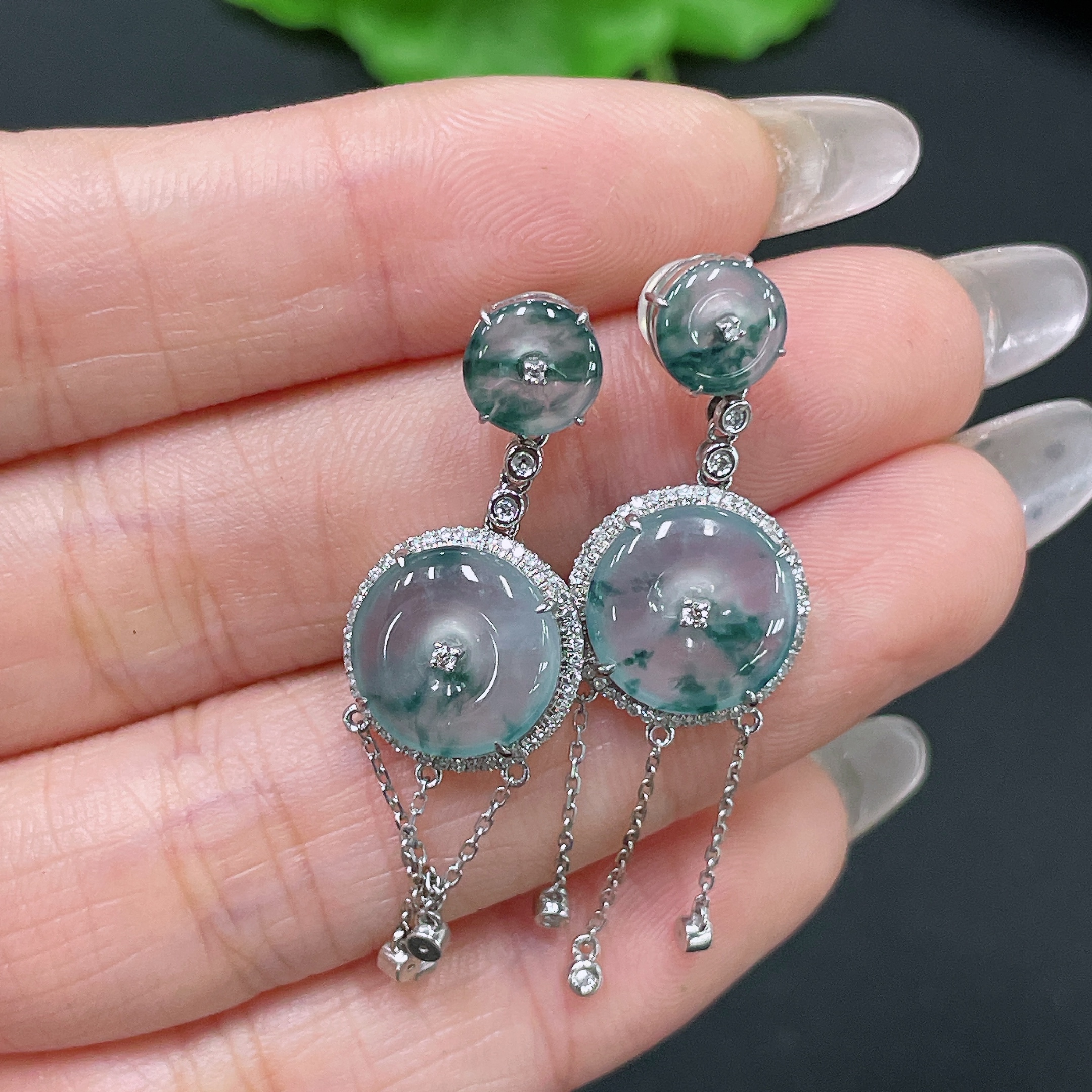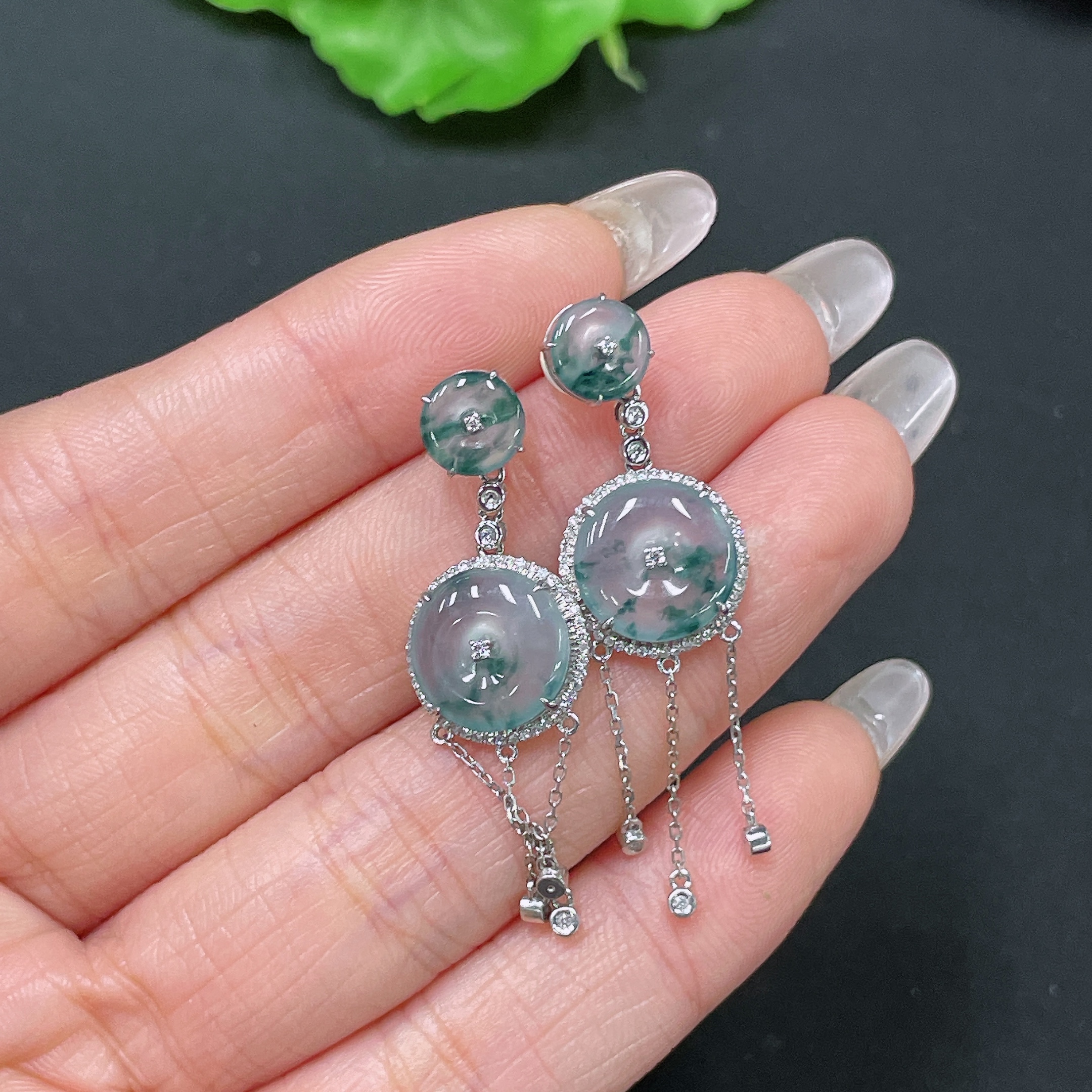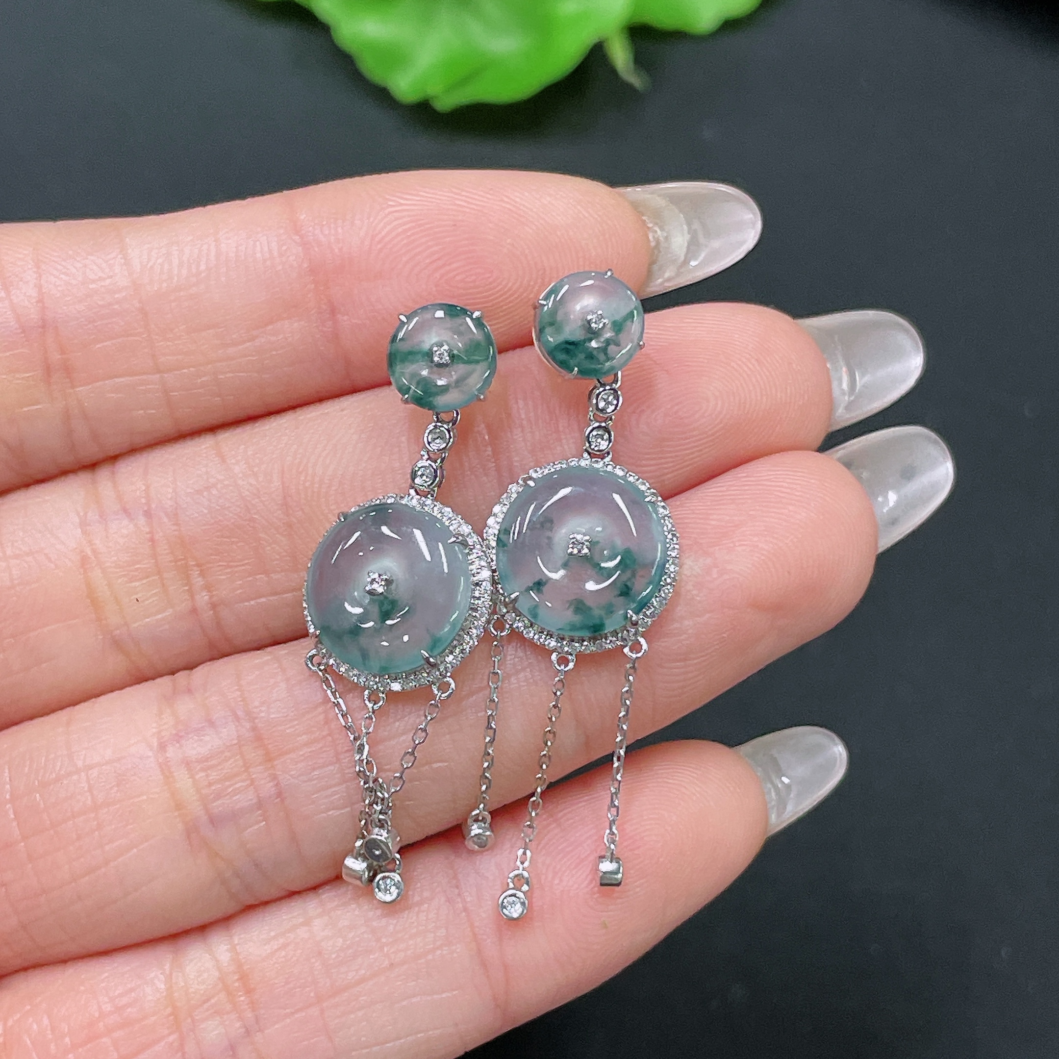 Jadeite Safety Buckle Inlaid Earrings, 18K Gold with Diamond Accents, Including Ear Backs, Total Weight Approx. 5.14g