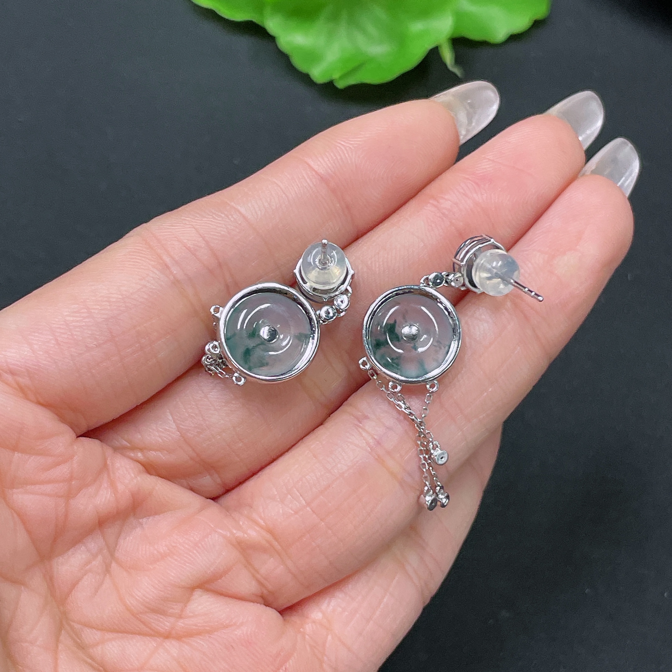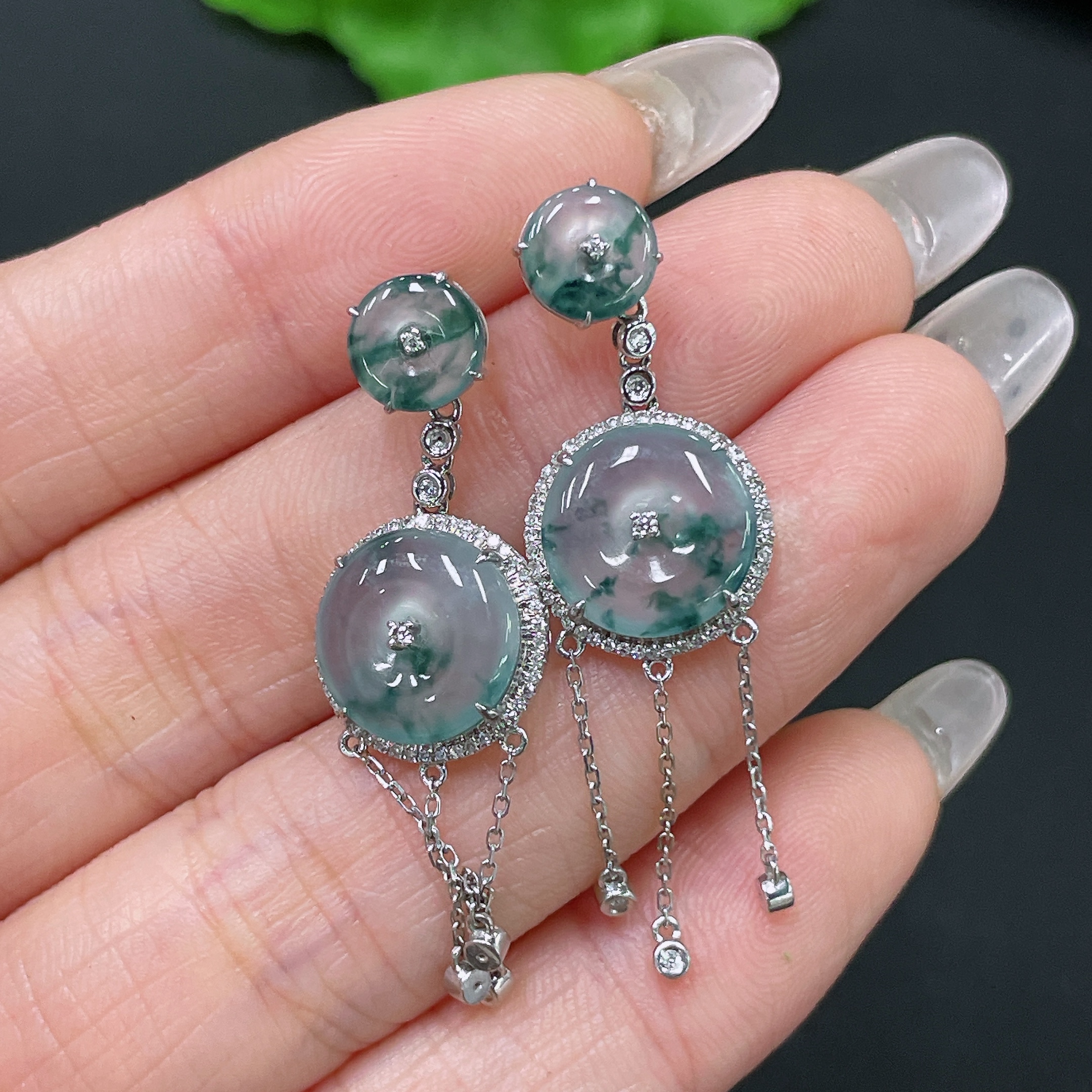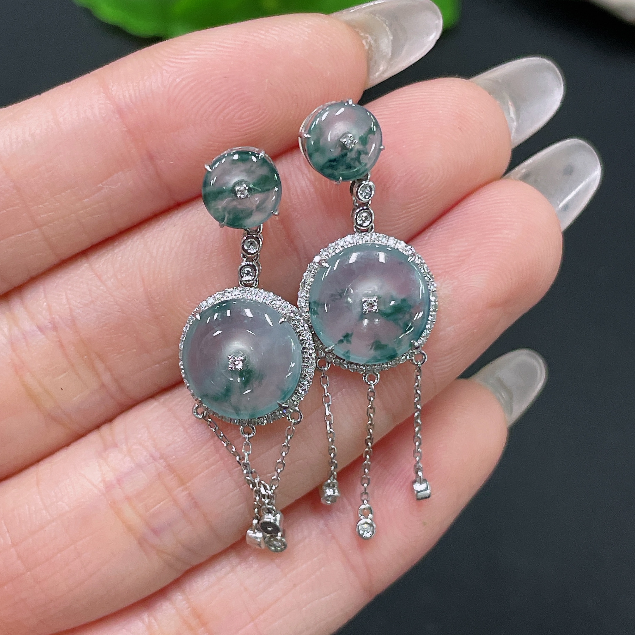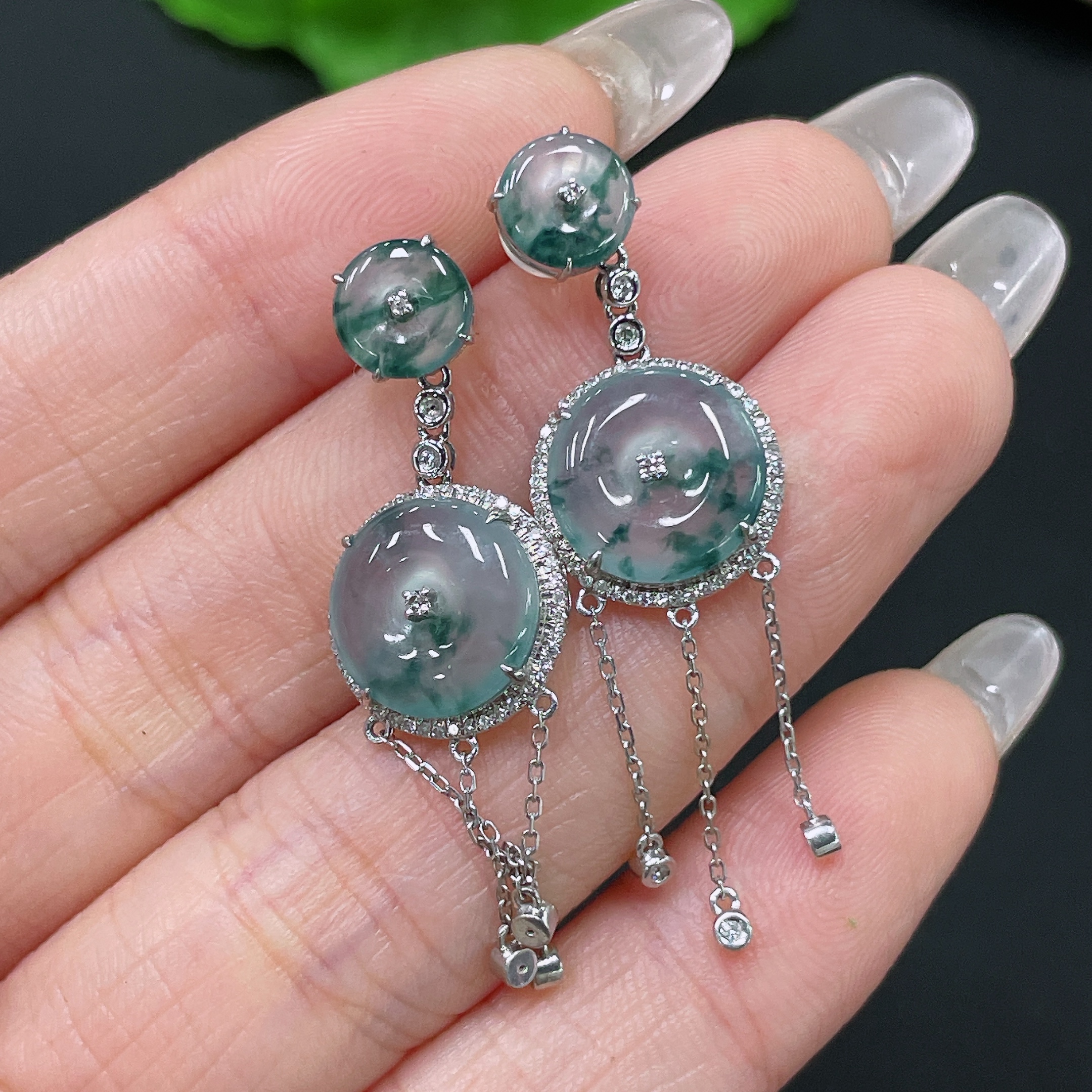 Jadeite Safety Buckle Inlaid Earrings, 18K Gold with Diamond Accents, Including Ear Backs, Total Weight Approx. 5.14g