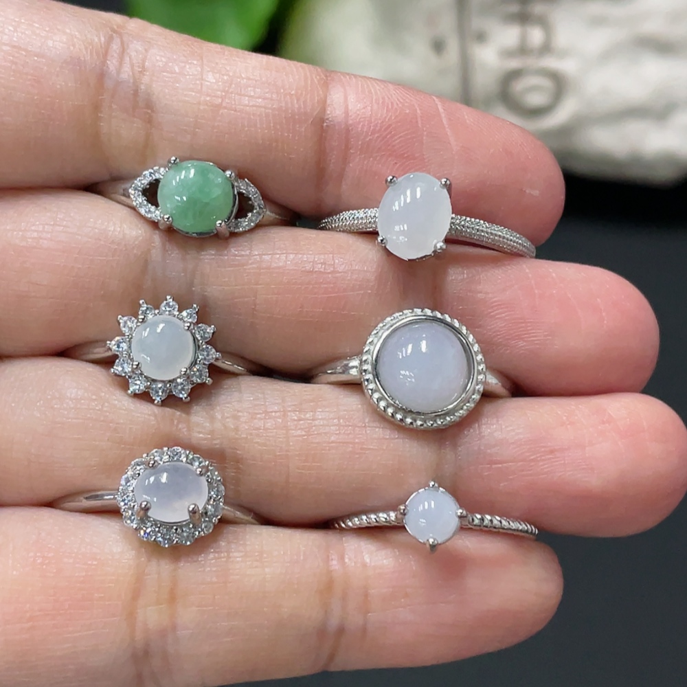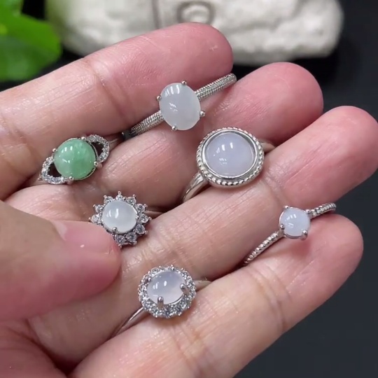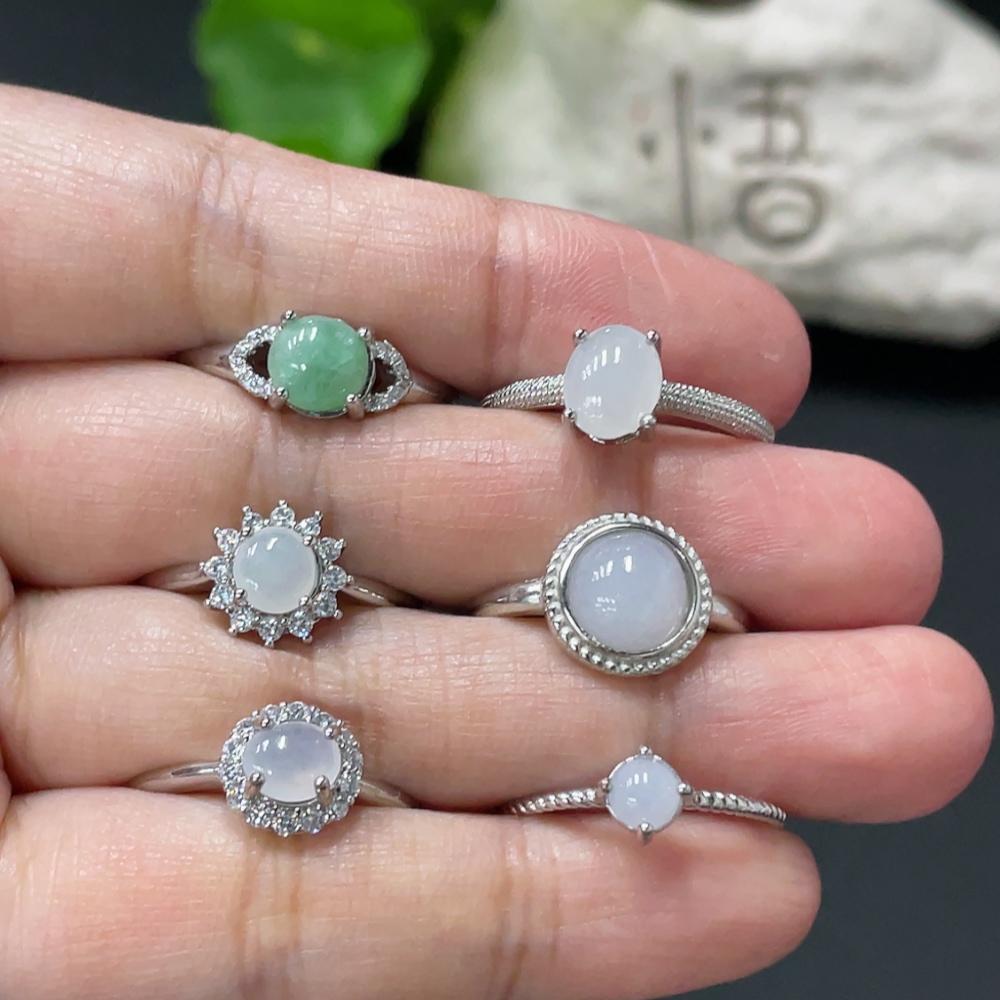 Jadeite Cabochon Inlaid Ring Non-Gold Setting Adjustable Size Total Weight Approx. 9.7g Sell as a Lot