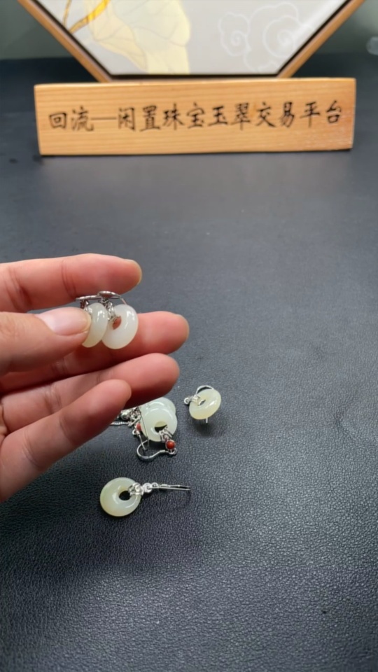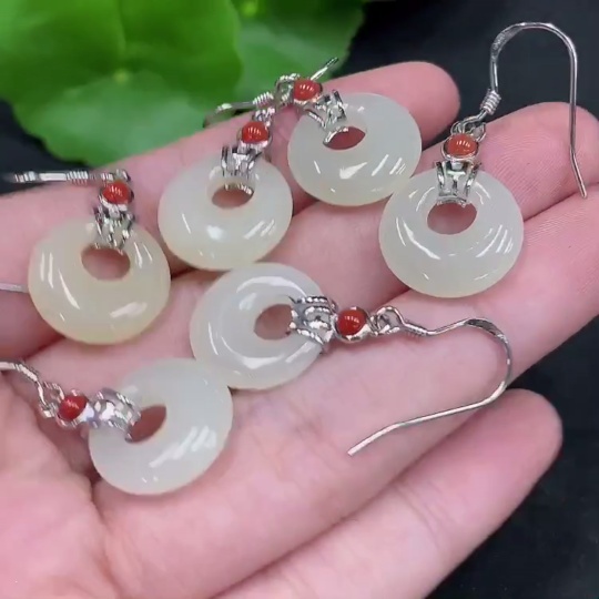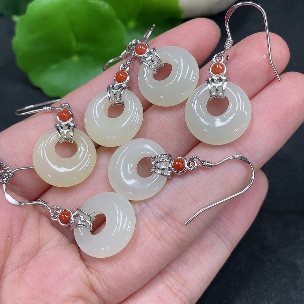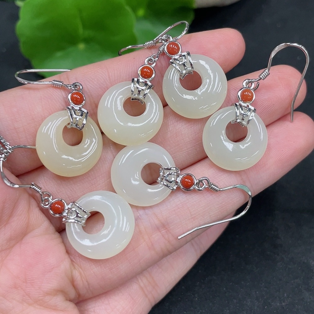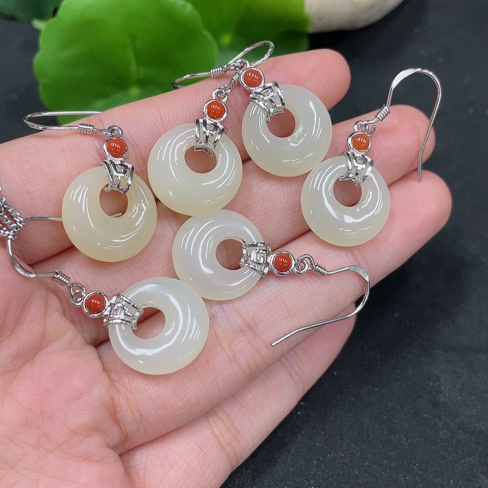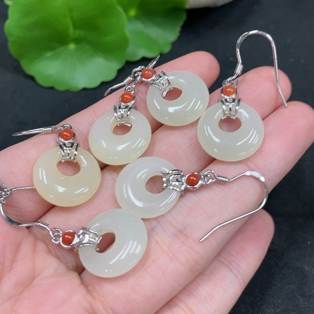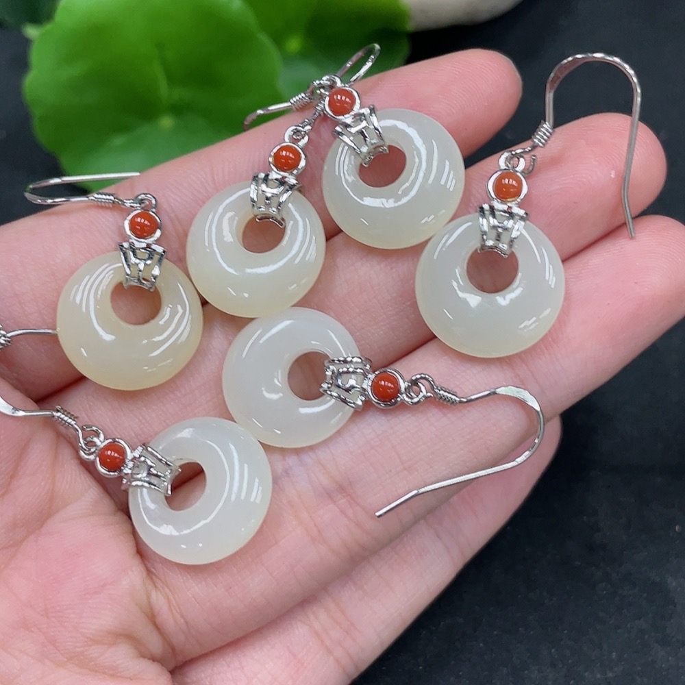 Hetian Jade Inlaid Earrings Non-Gold Total Weight Approx. 12.5g
