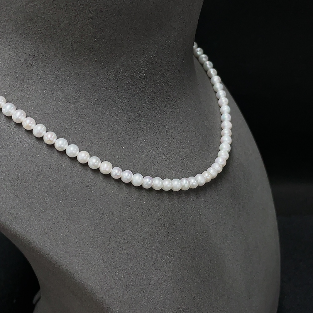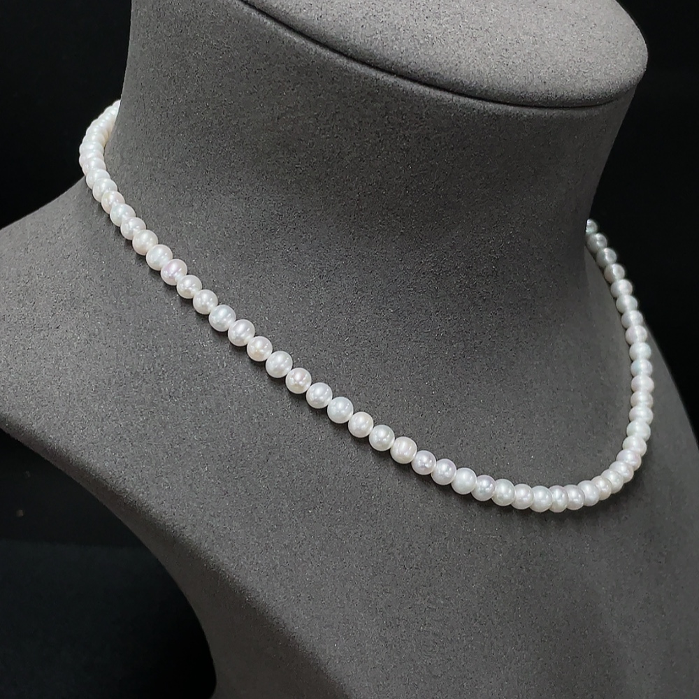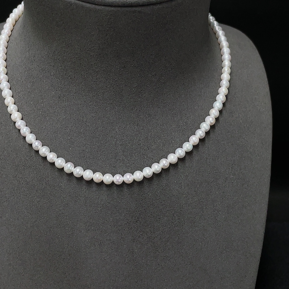 Trezaar - Pearl bead necklace, non-gold, total weight approx. 13.71g, bead size about 5mm