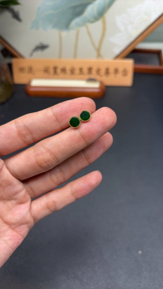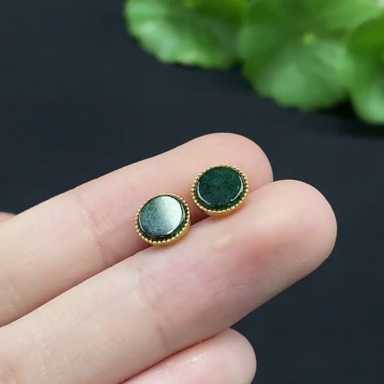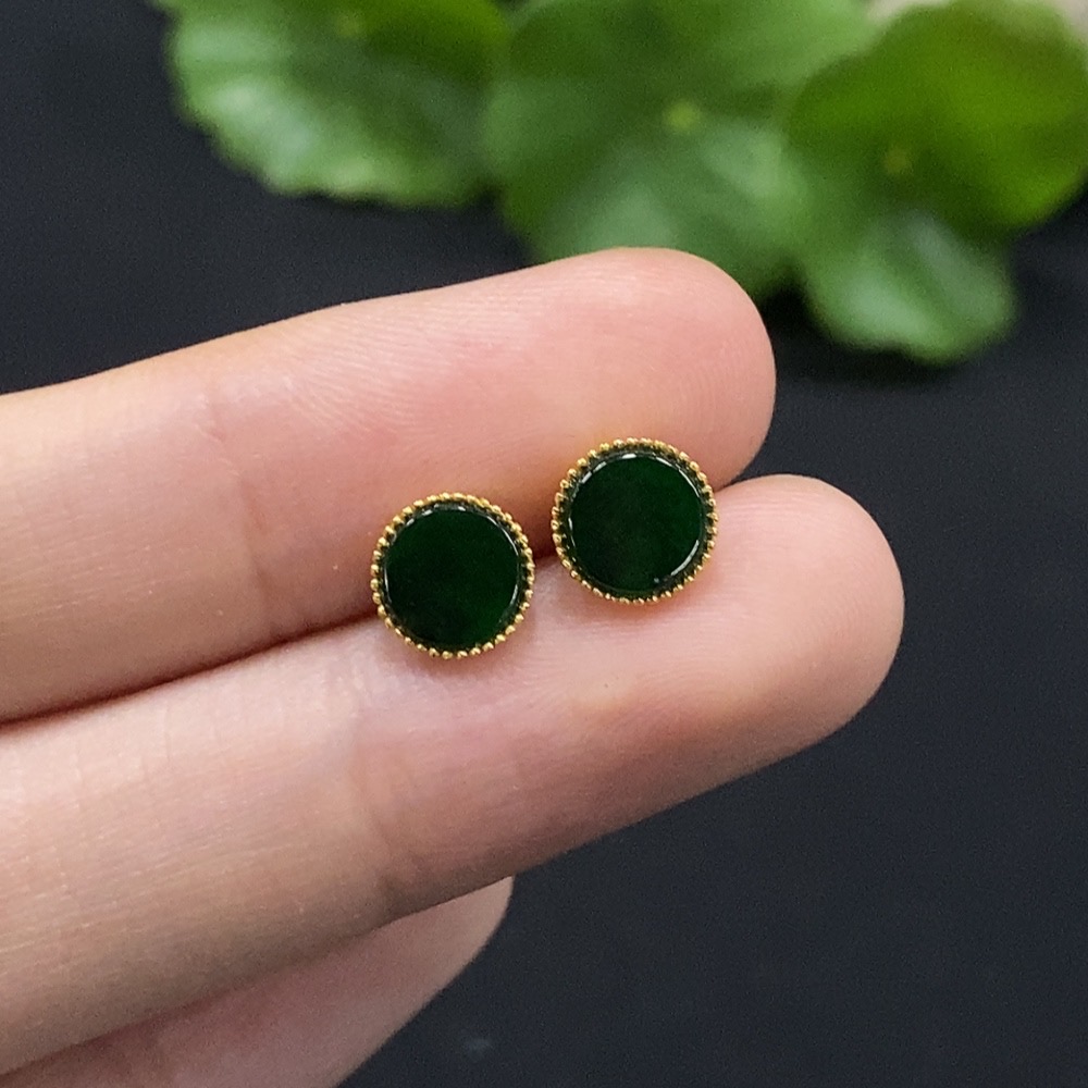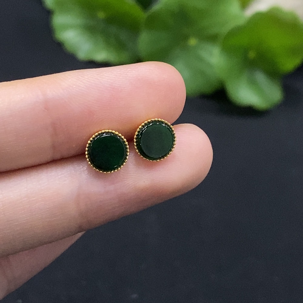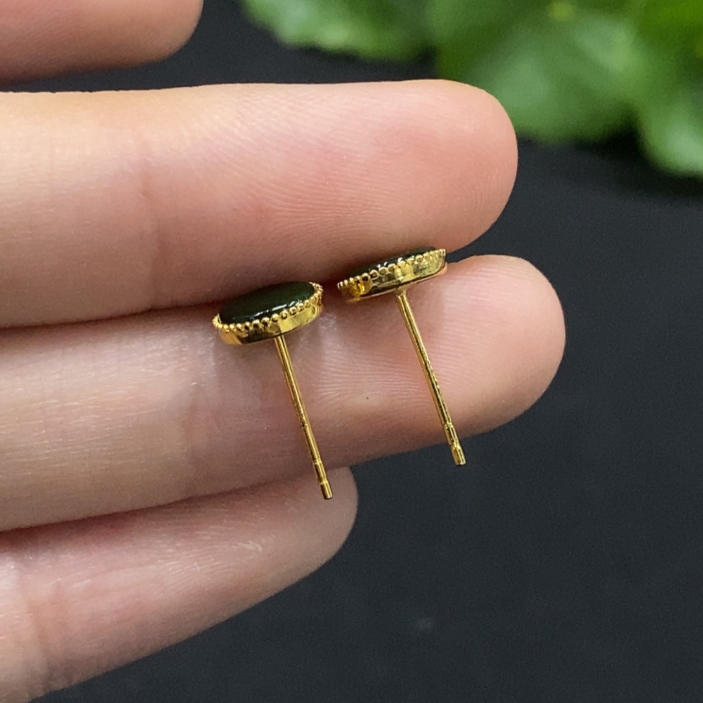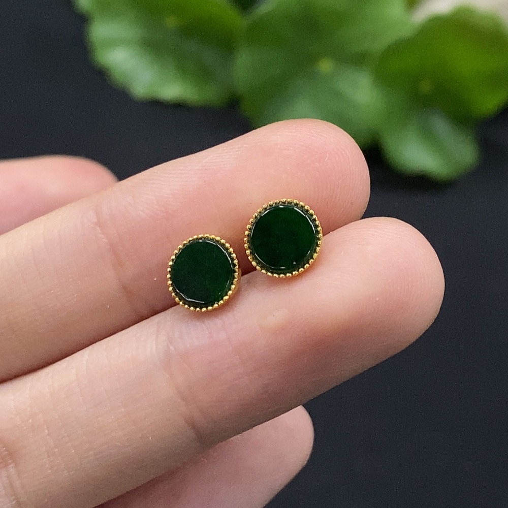 Trezaar - Jadeite Inlaid Earrings 18K Gold Total Weight Approx. 0.81g